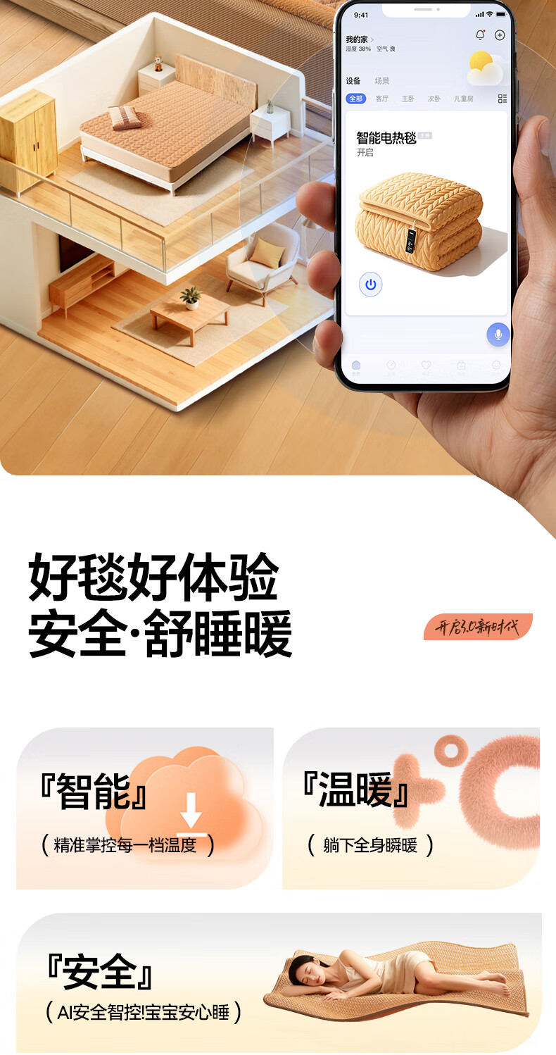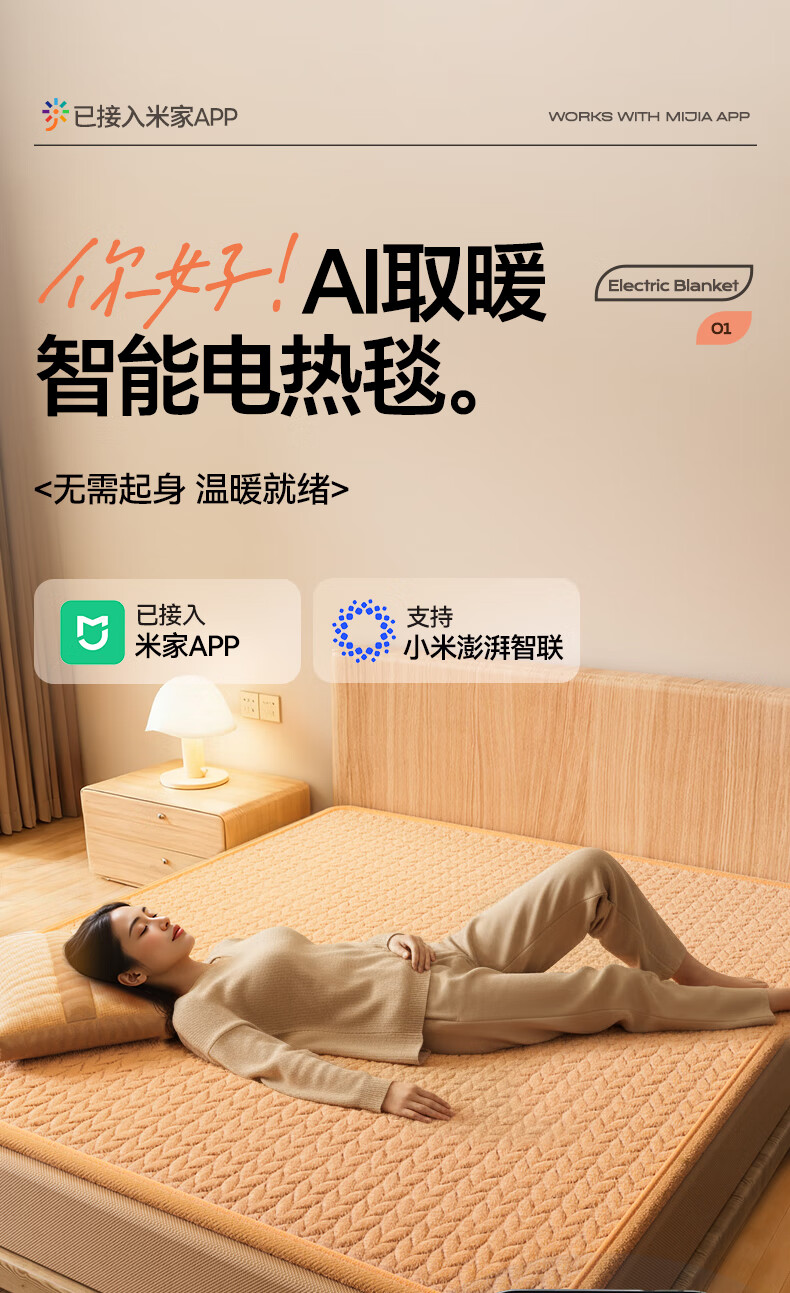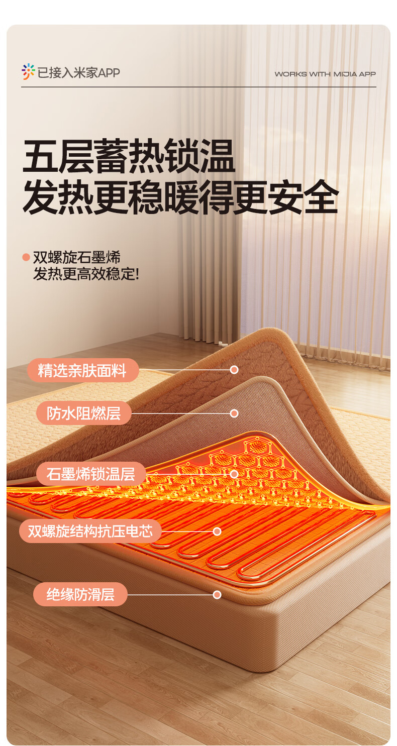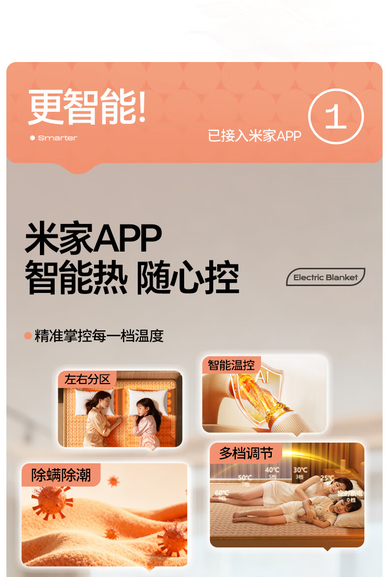 梦多福已接入米家丨智能电热毯单双人双控调温1.8*2米电褥子安全可水洗 米家智能电热毯-1.8*2.0m双人双控丨杀菌除螨丨可水洗 已接入米家APP丨手机遥控丨9档调温丨12H定时