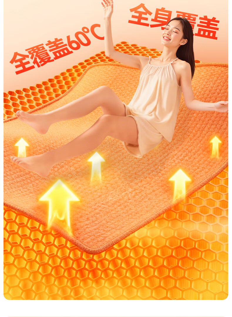 彩虹新款电热毯客厅智能盖腿暖身毯家用取暖五档调温电褥子上盖毯可洗 五档调温可披可盖1.6*1.3m可水洗
