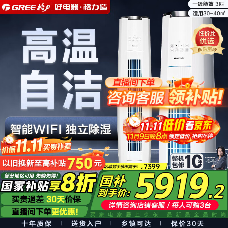 格力(GREE)空调3匹柜机云锦三代/二代柜机变频冷暖节能 智能WiFi 自清洁 客厅柜机空调立式空调 国家补贴20% 3匹 一级能效 【三代】