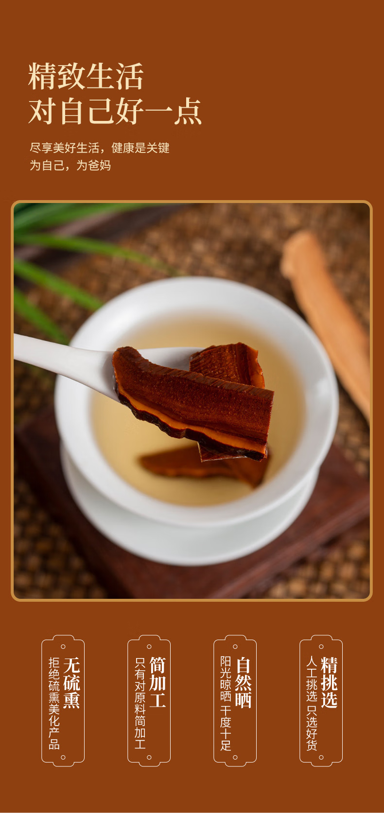长白山赤灵芝片 整朵灵芝切片林芝片泡酒煲汤泡水 赤灵芝片 50g
