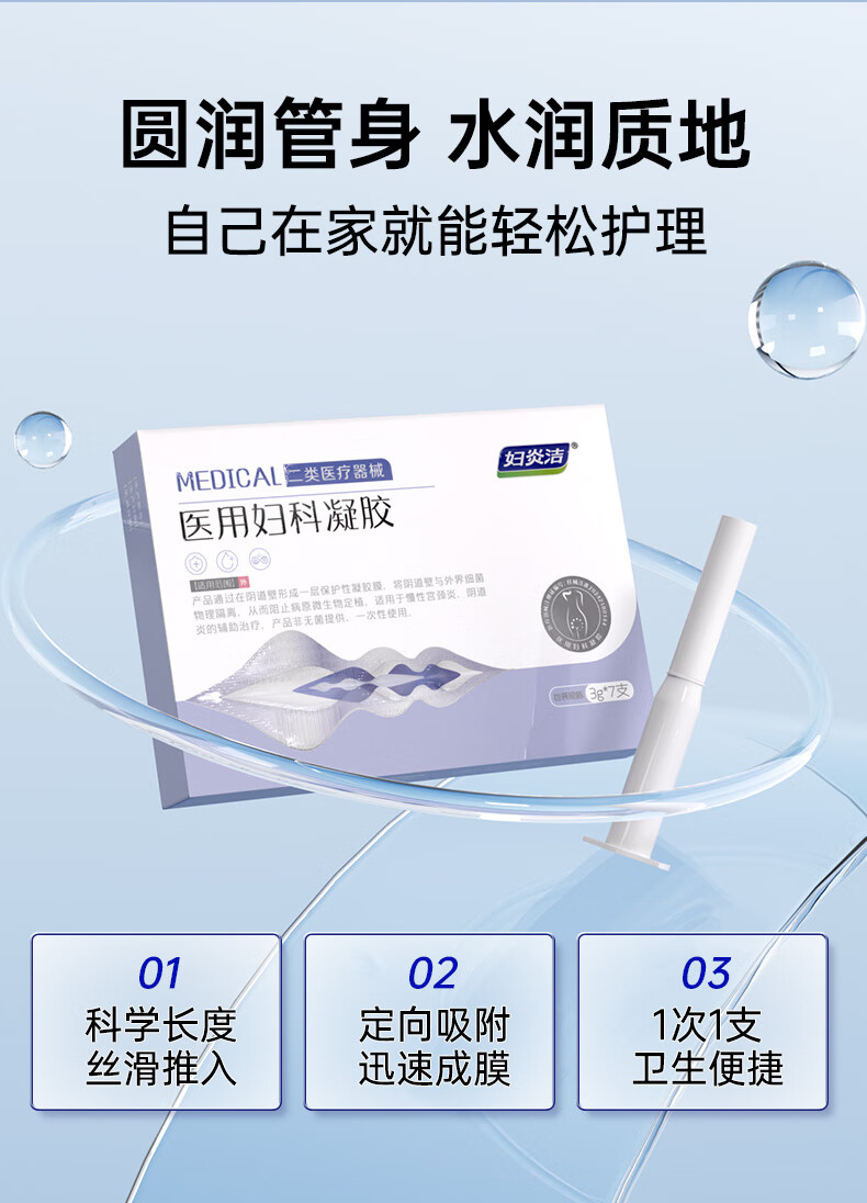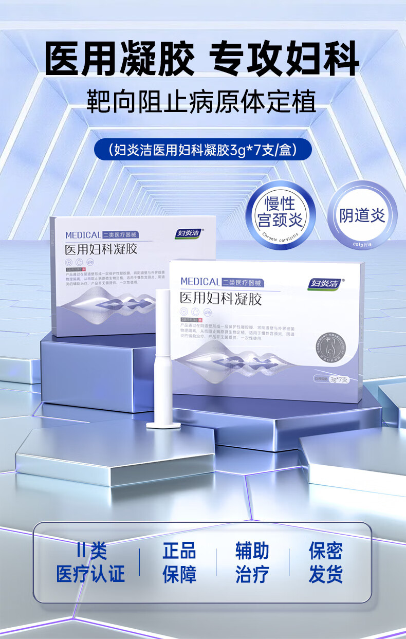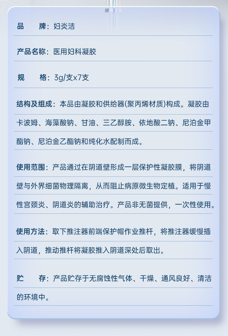 妇炎洁 医用妇科凝胶3g*7支宫颈炎阴道炎白带异常红肿瘙痒异味糜烂灼痛 1盒7支【体验装】