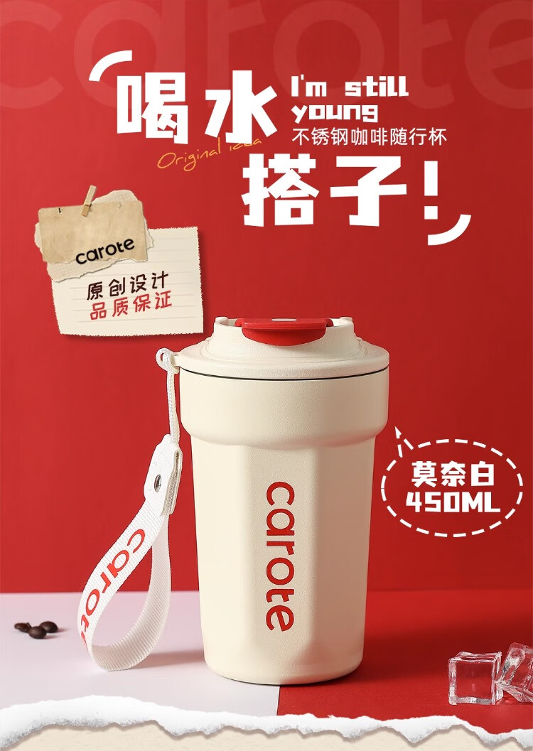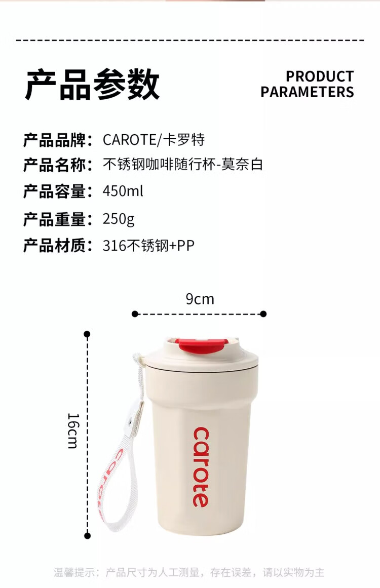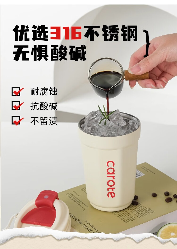 卡罗特保温杯咖啡杯316不锈钢保冷随行杯子便携水杯男女儿童学生日礼物