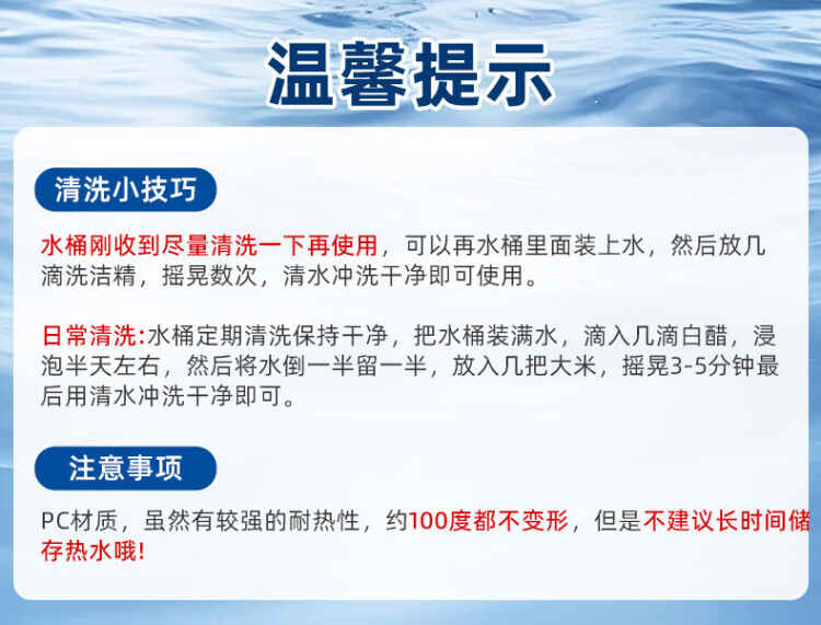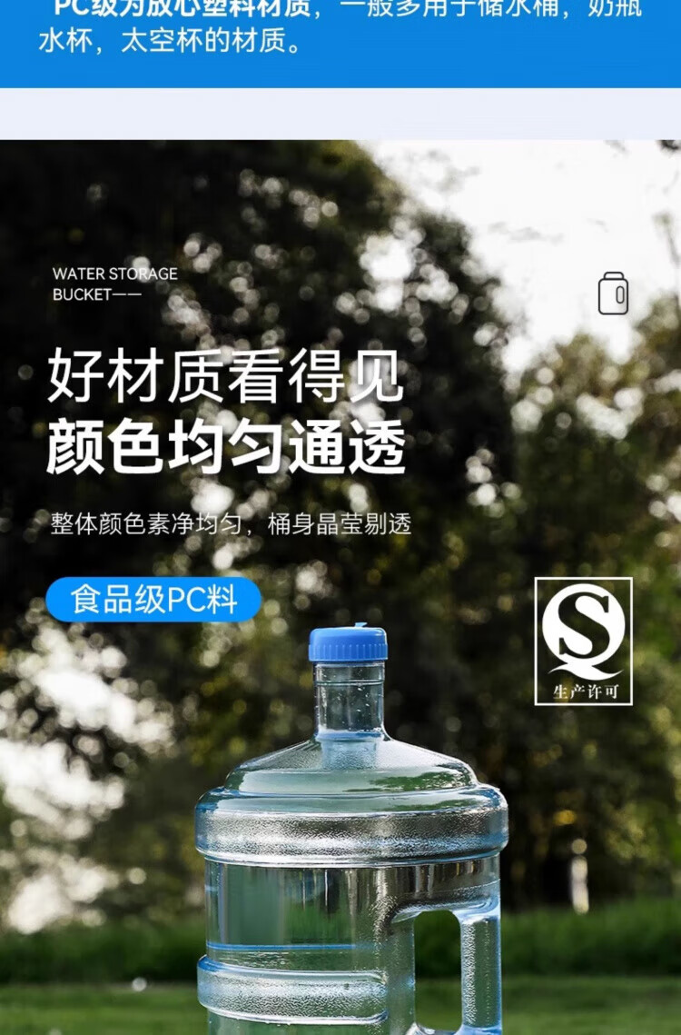德国家用储水桶纯净水桶矿泉水饮水机7.5L水桶桶装水空桶食品级PC 高级PC加厚全新料5升