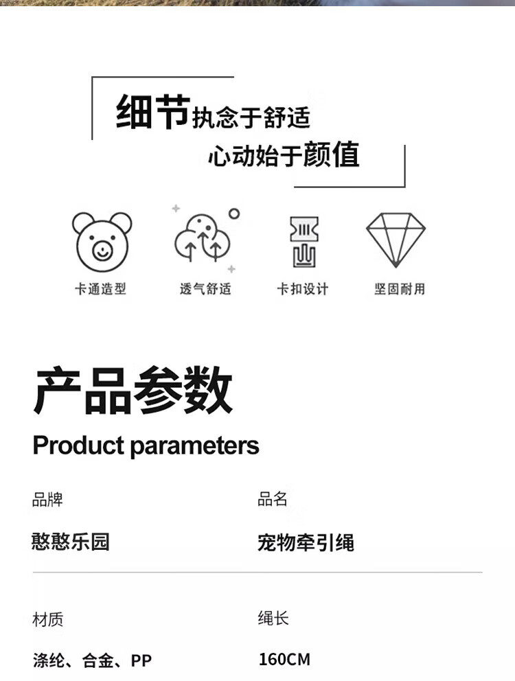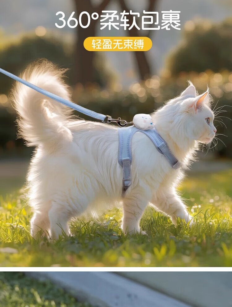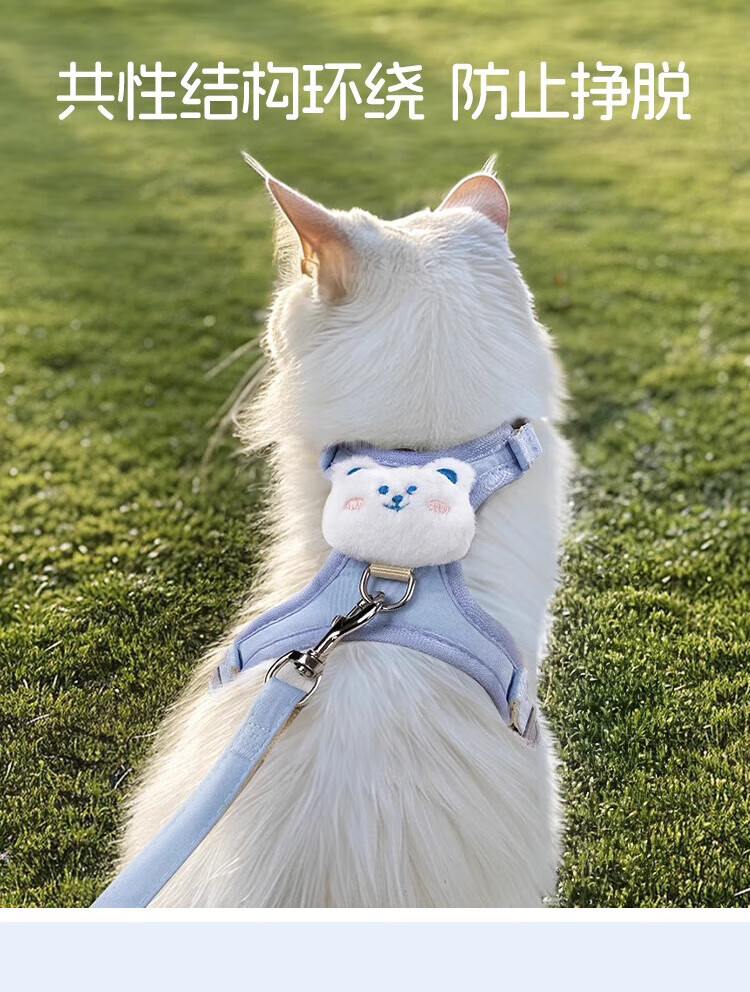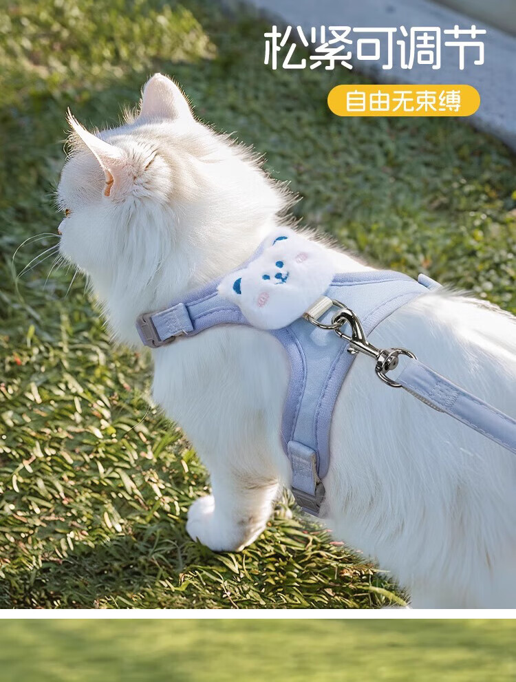憨憨乐园猫咪牵引绳可调节遛猫绳子可爱幼猫外出专用胸背小型犬宠物用品m