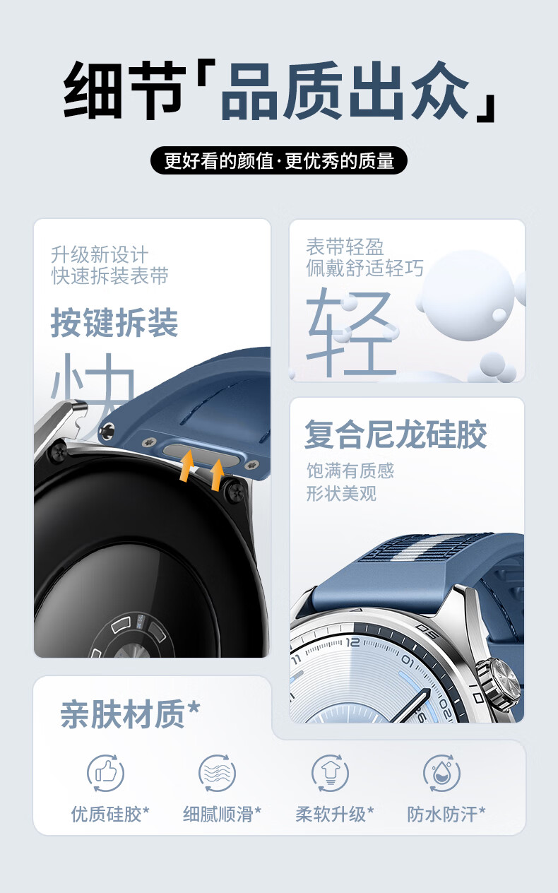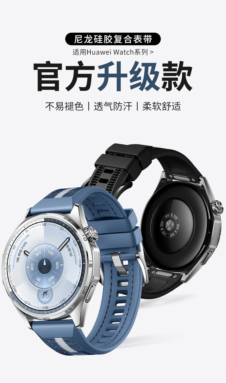 威千图适用华为手表GT6尼龙硅胶复合表带原系列GT6尼龙硅胶复合表带 22mm 原野绿(按压款)