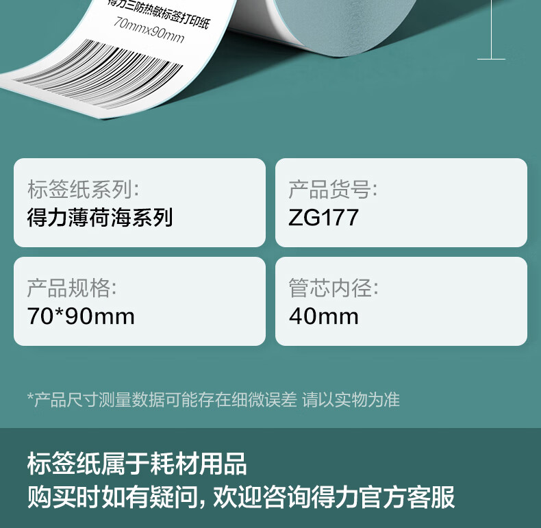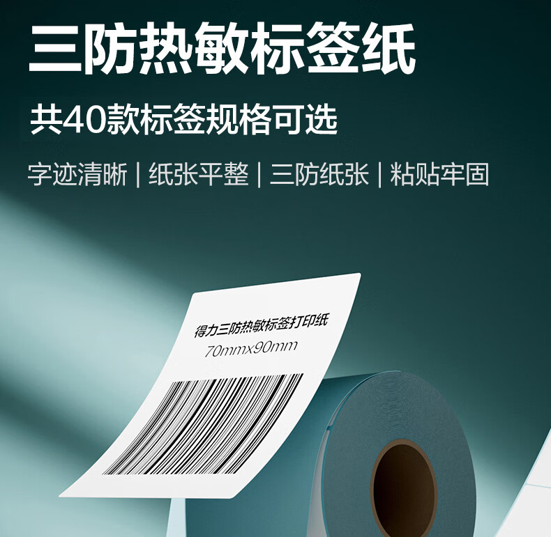 得力(deli)70*90mm 400张*18卷 薄荷海三防热敏标签纸 快递面单不干胶打印纸 ZG177【适配3寸标签机720C等】