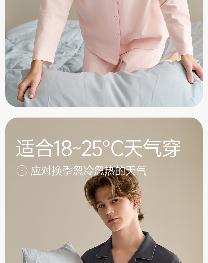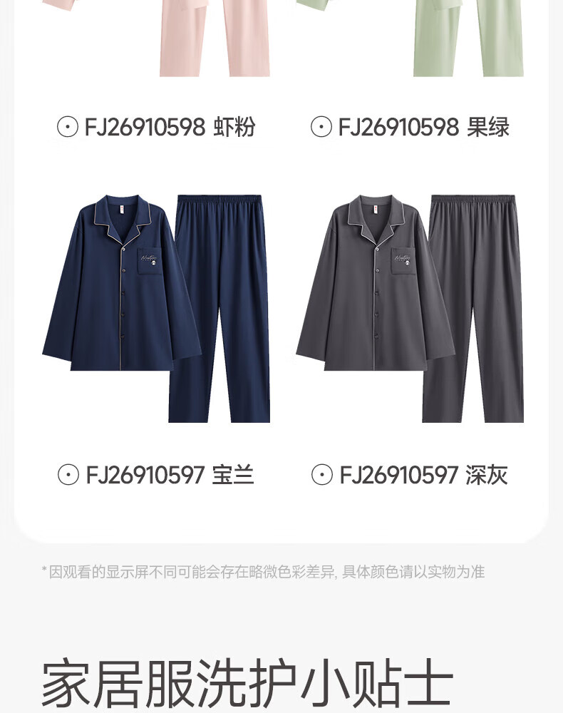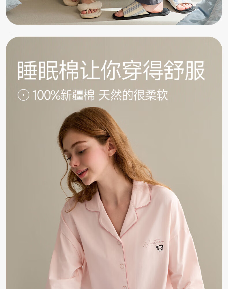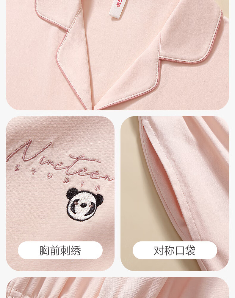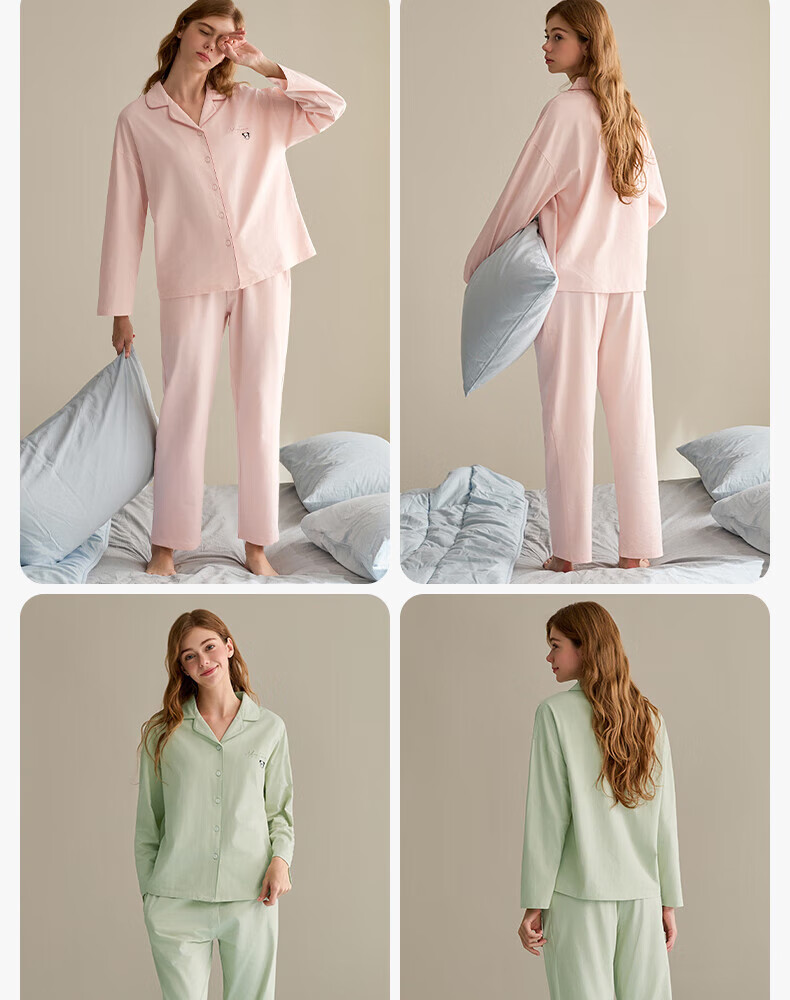 芬腾情侣睡衣女士春秋季新款长袖纯棉休闲大码开衫男款家居服套装 虾粉(女) L 建议:女110-124斤,男126-146斤