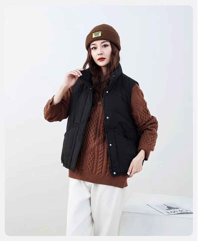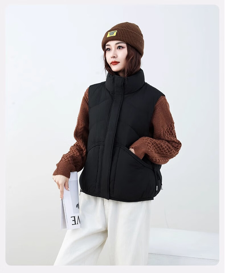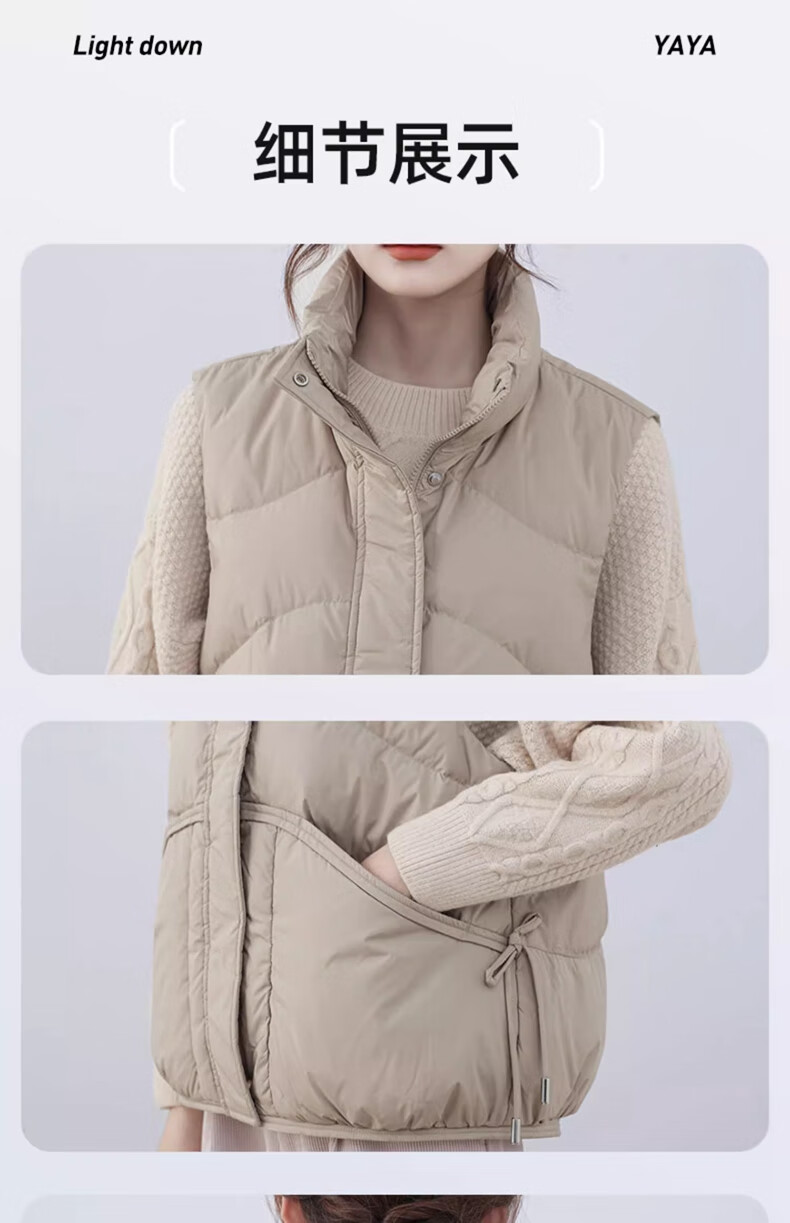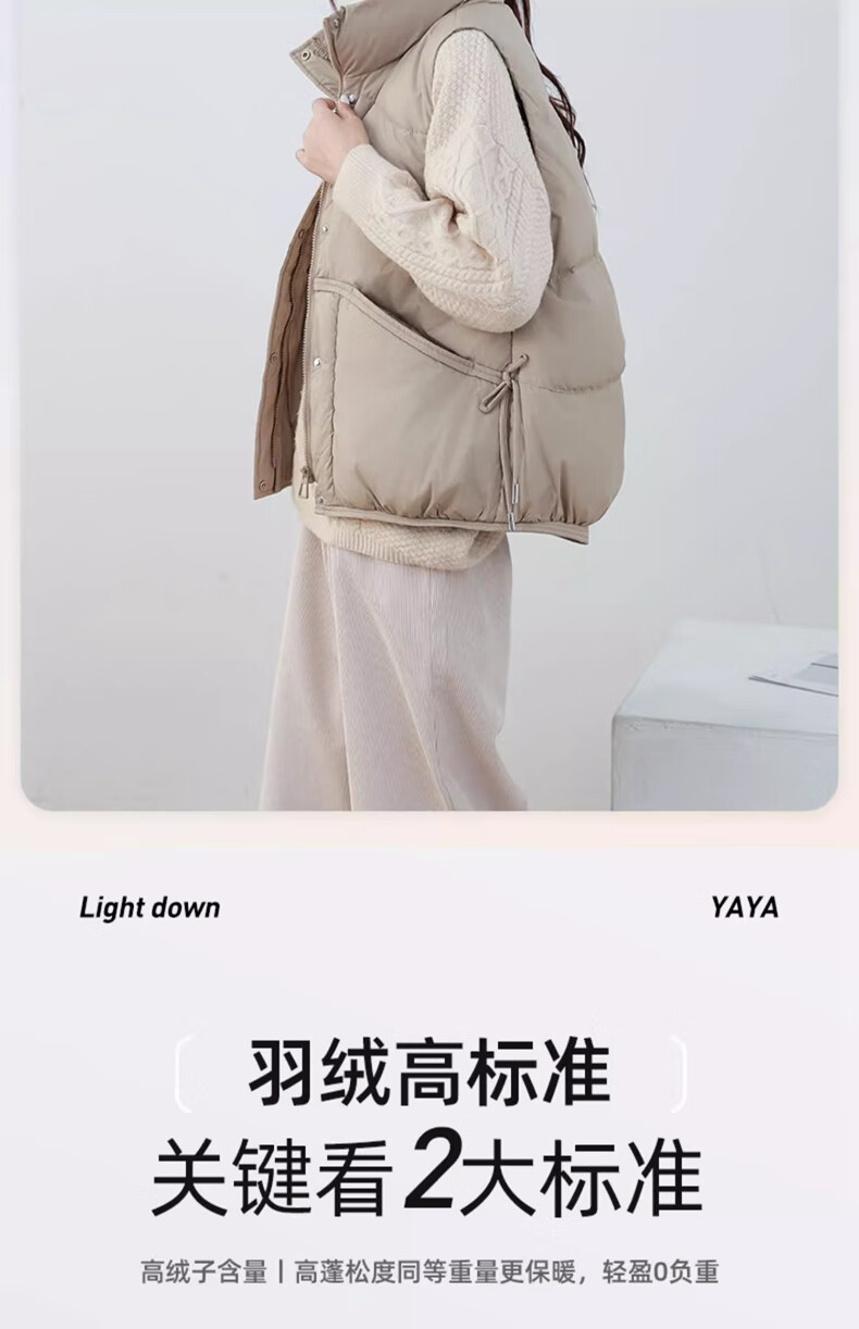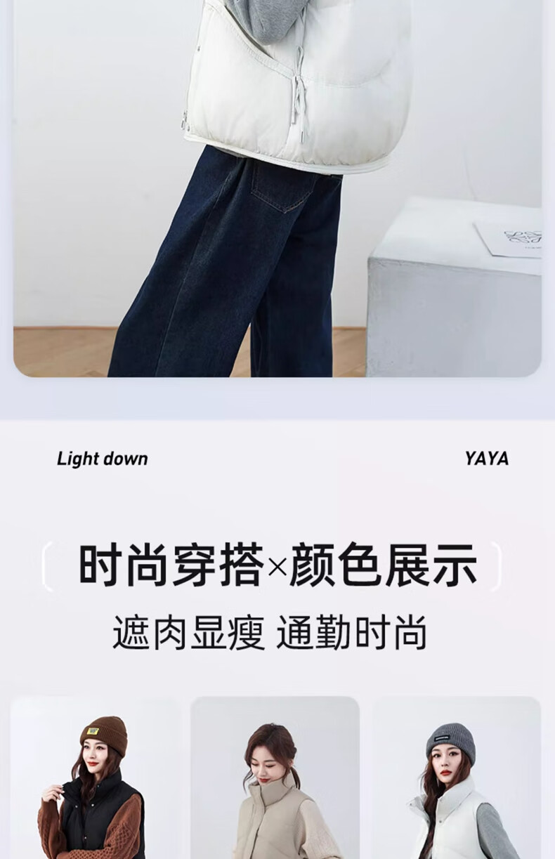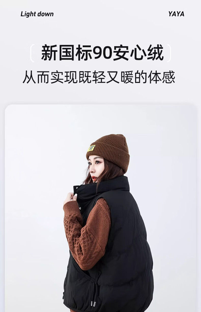 鸭鸭(YAYA)羽绒马甲女外穿2025年秋冬季新款短款时尚马夹背心保暖羽绒服外套 基础黑 L