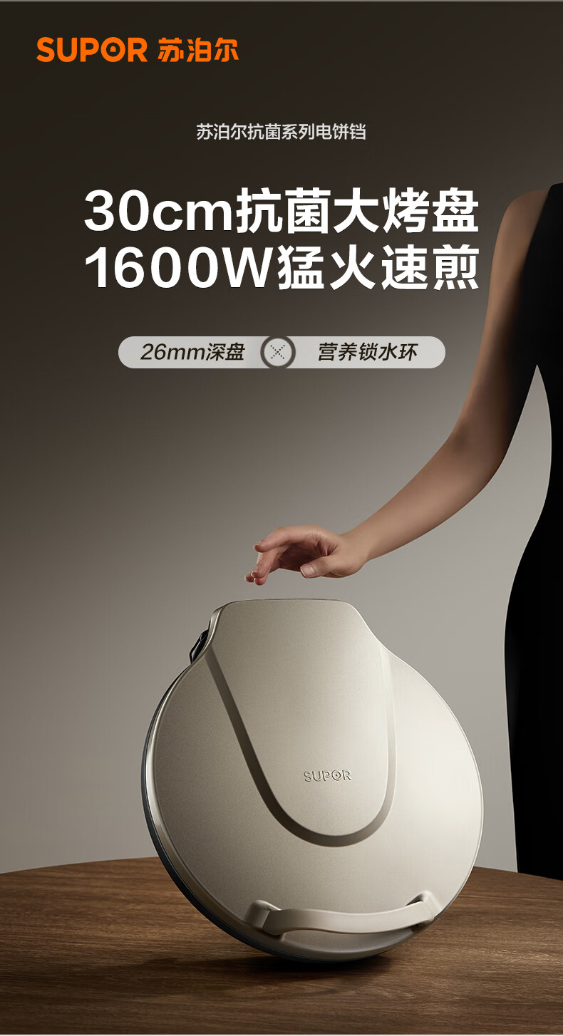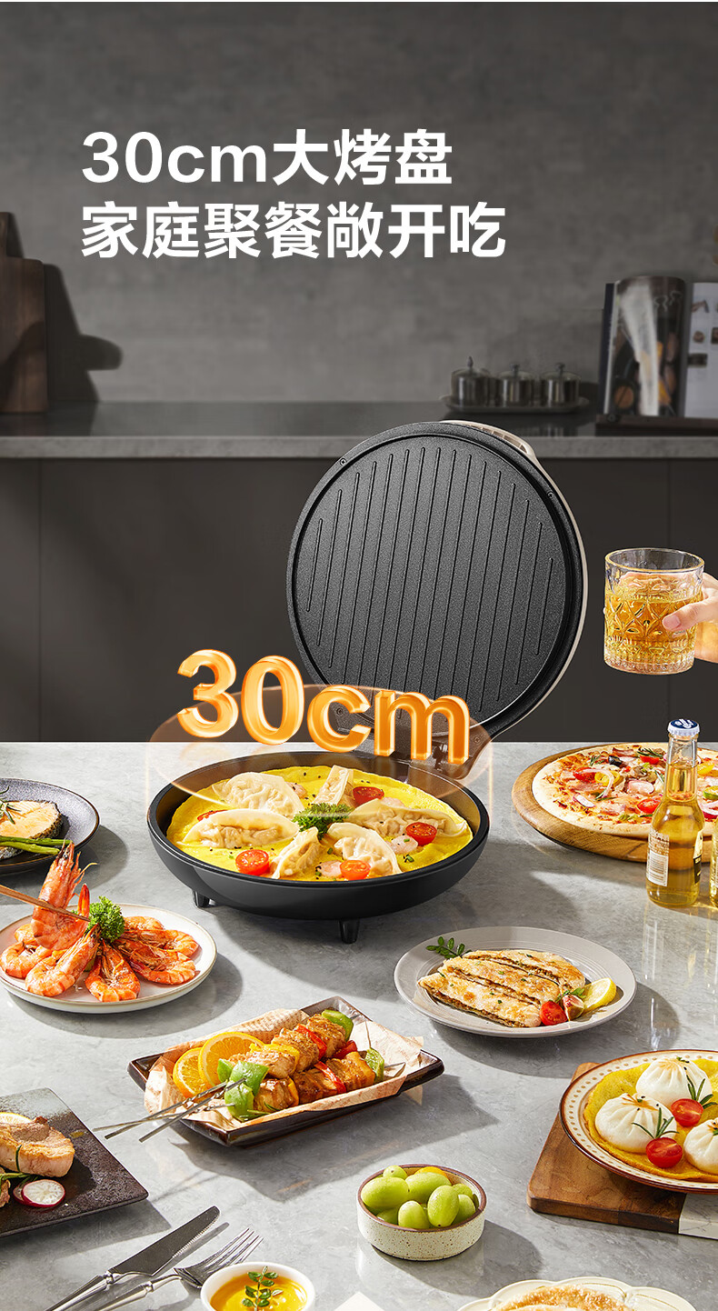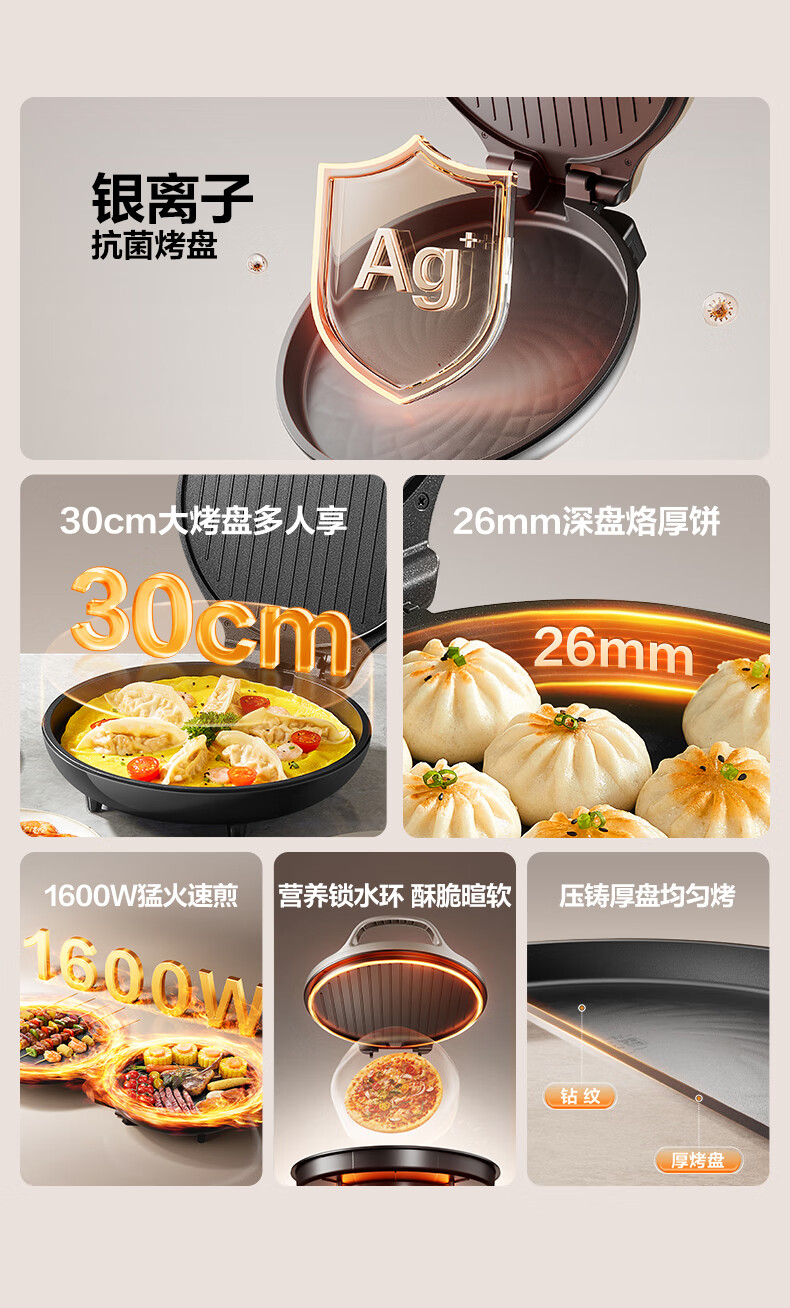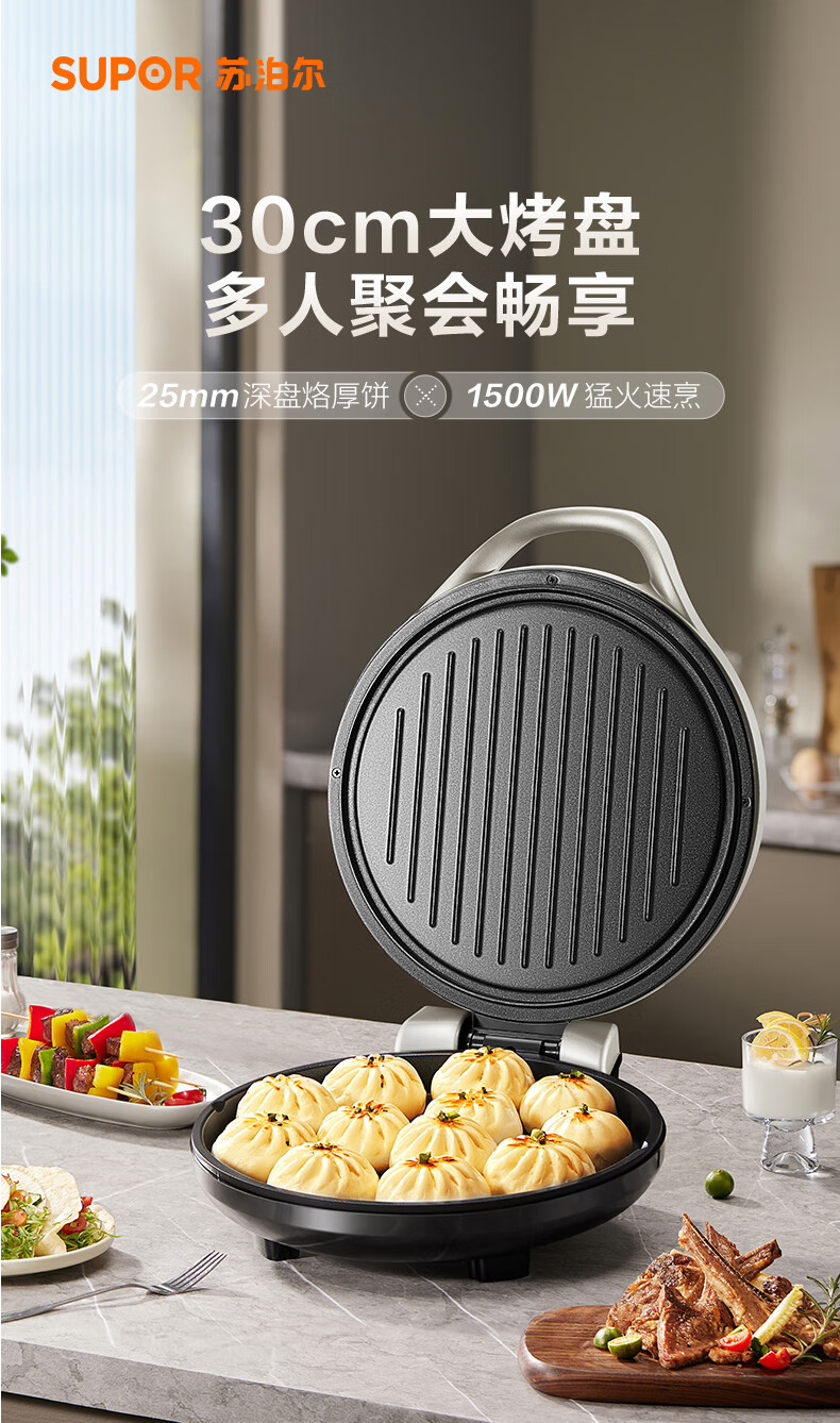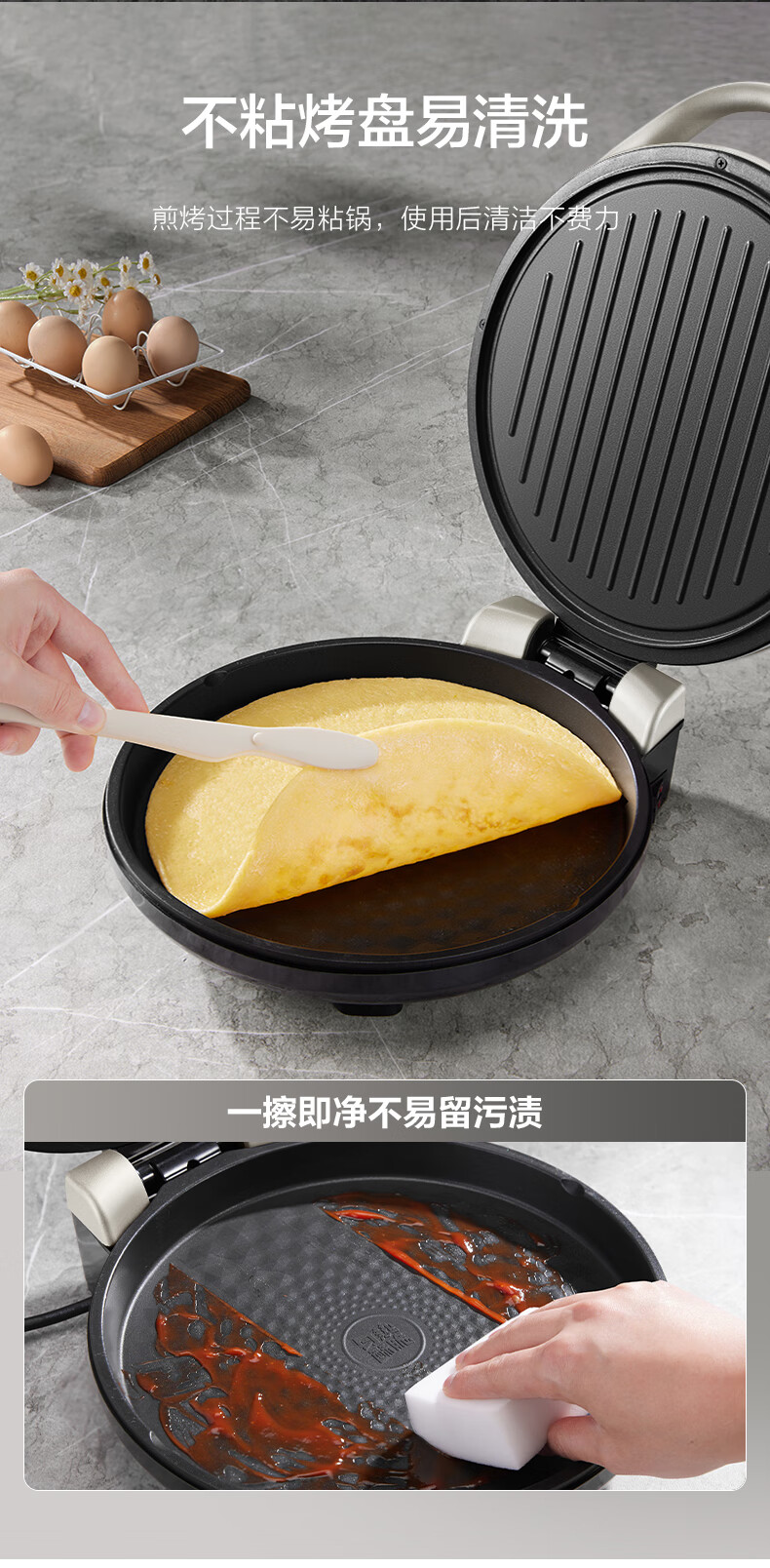 苏泊尔(SUPOR)电饼铛家用 电饼档双面加热煎饼锅 煎烤烙饼锅 早餐机抗菌烤盘 26mm加深 新老款随机发货 JJ30A645