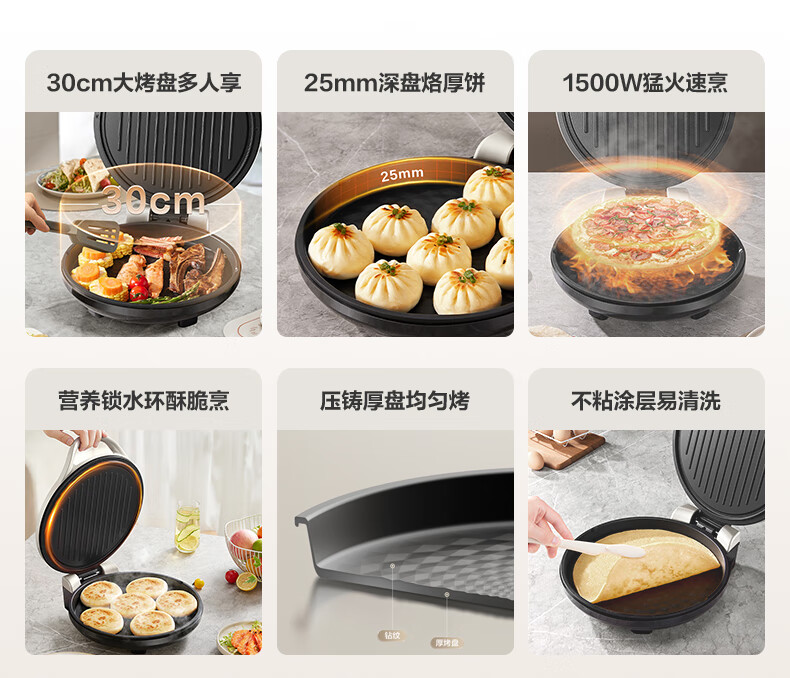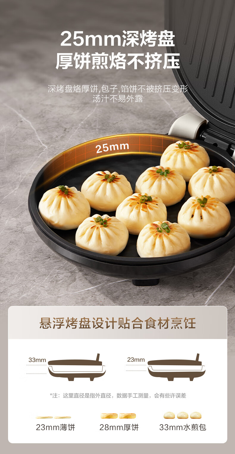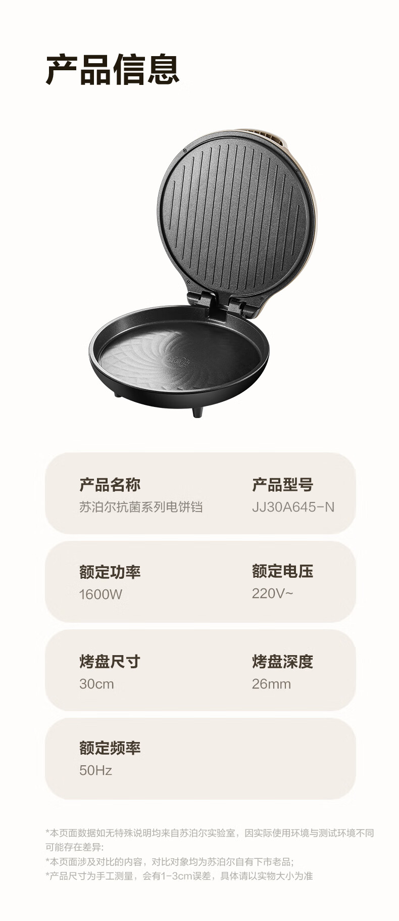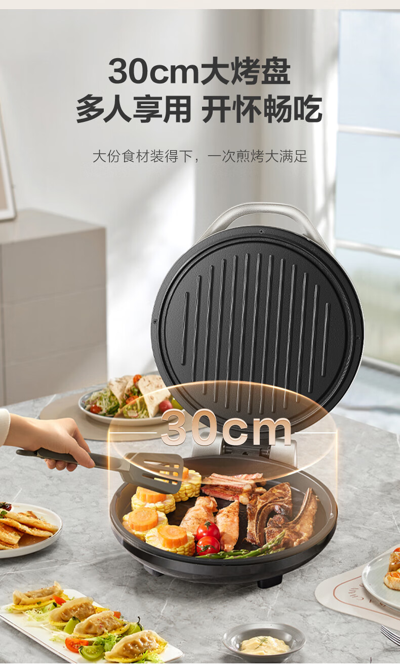 苏泊尔(SUPOR)电饼铛家用 电饼档双面加热煎饼锅 煎烤烙饼锅 早餐机抗菌烤盘 26mm加深 新老款随机发货 JJ30A645