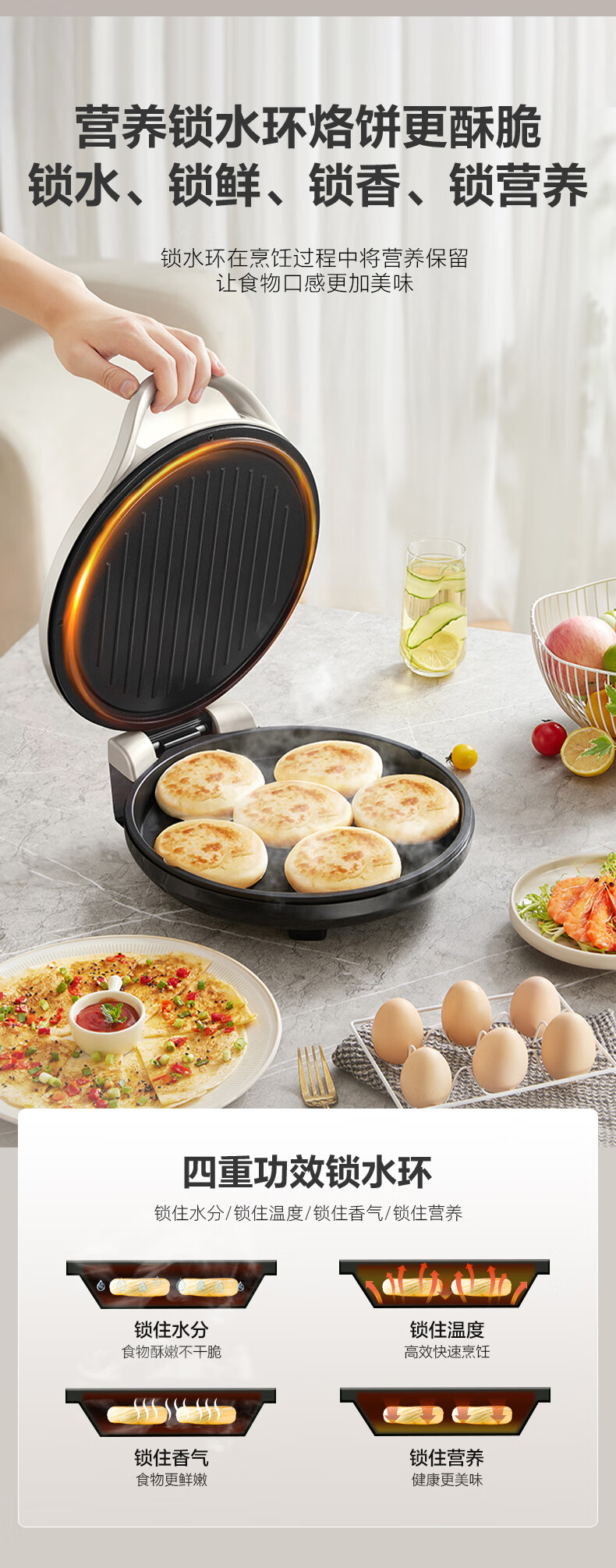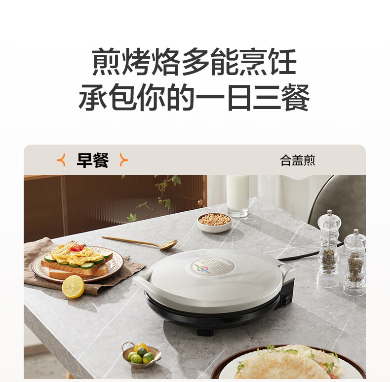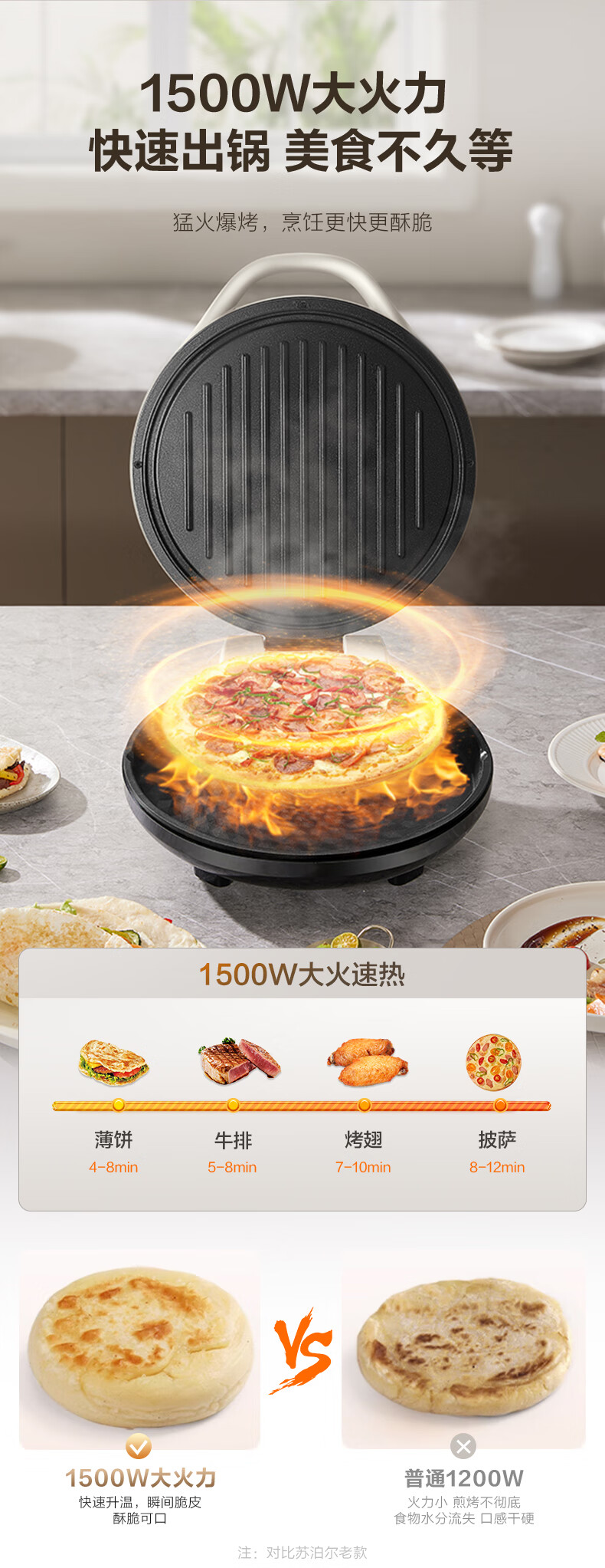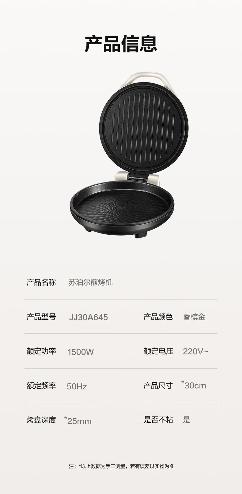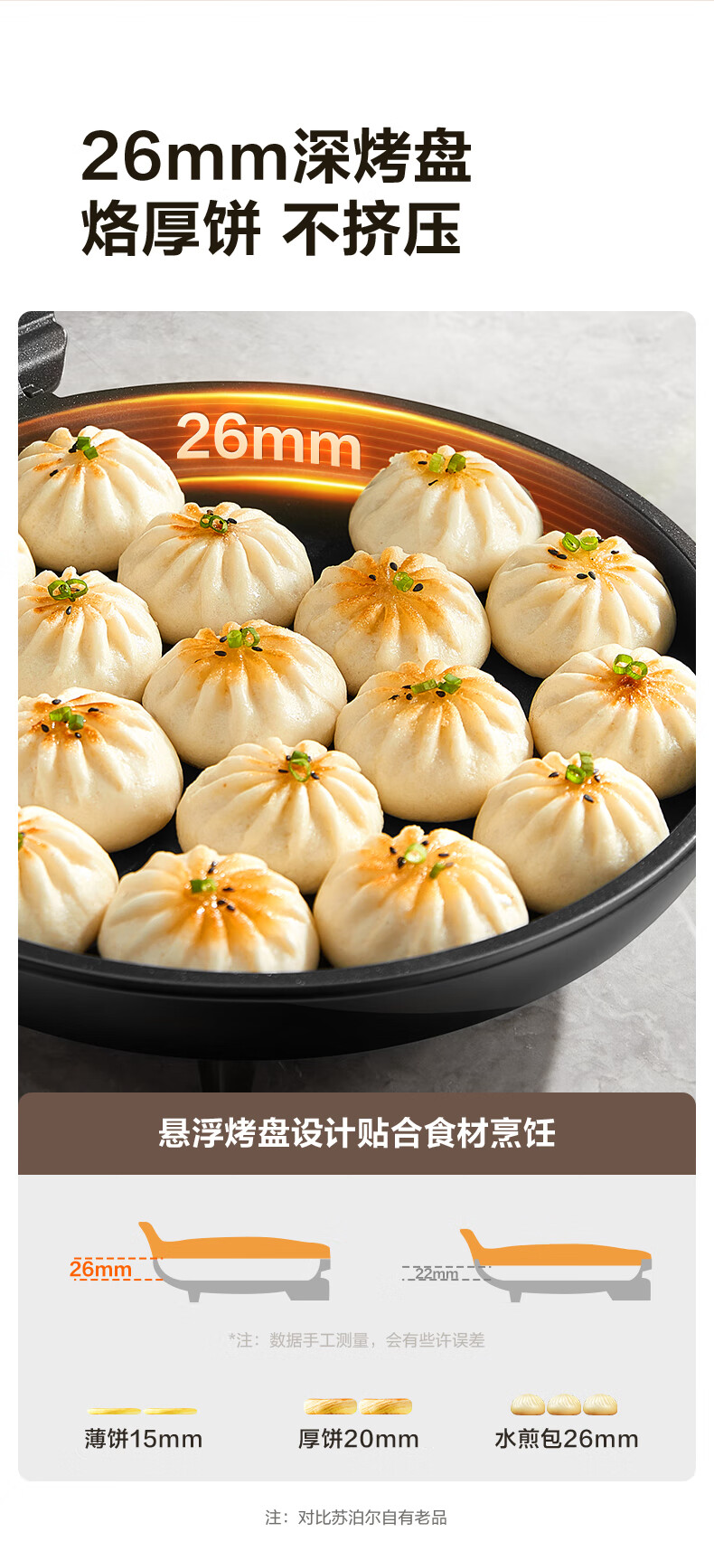 苏泊尔(SUPOR)电饼铛家用 电饼档双面加热煎饼锅 煎烤烙饼锅 早餐机抗菌烤盘 26mm加深 新老款随机发货 JJ30A645