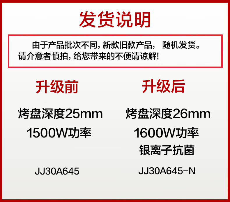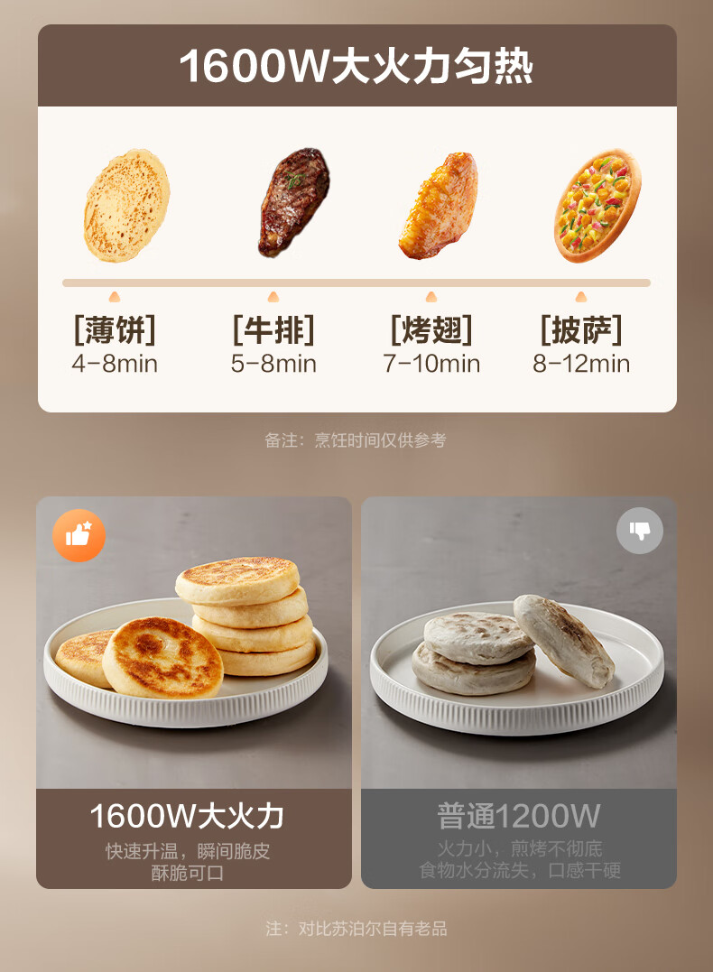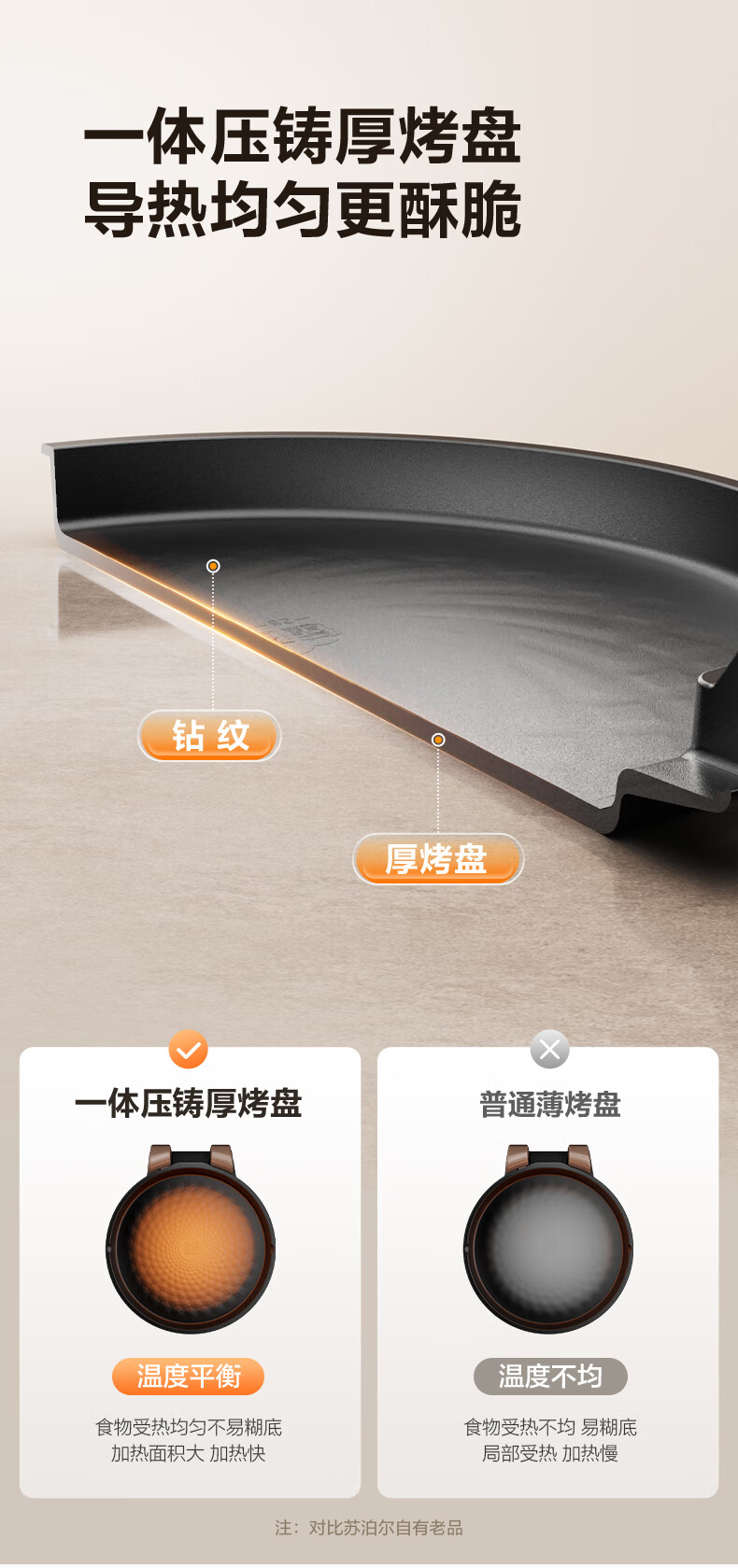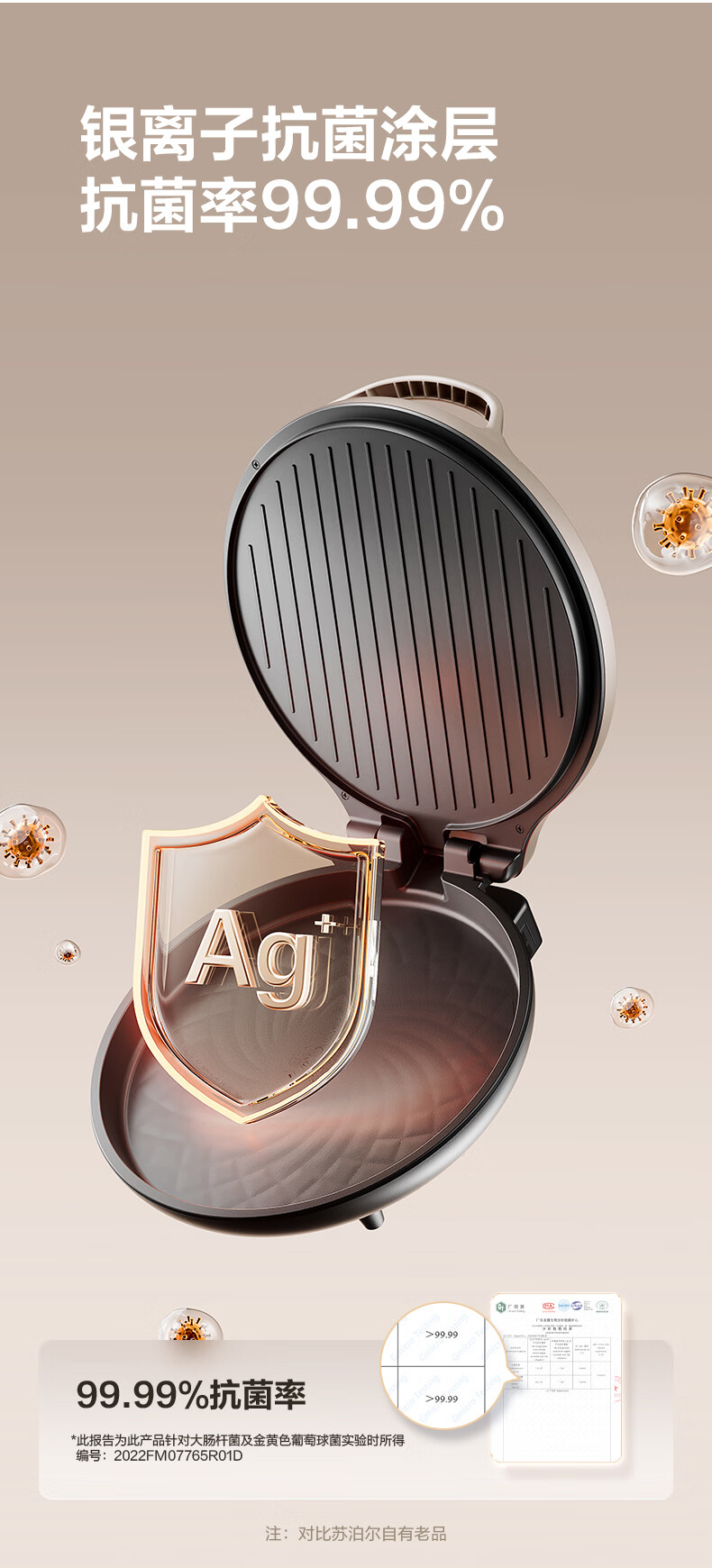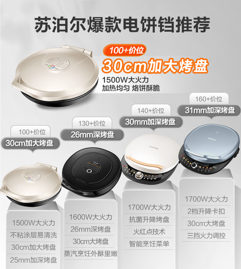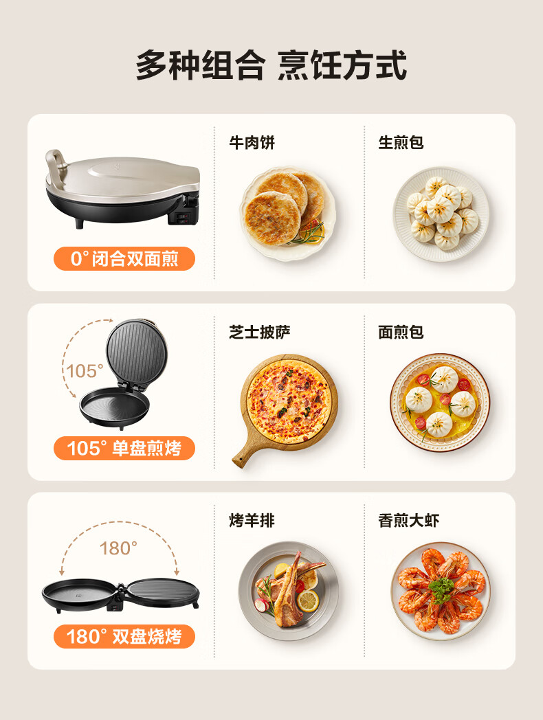 苏泊尔(SUPOR)电饼铛家用 电饼档双面加热煎饼锅 煎烤烙饼锅 早餐机抗菌烤盘 26mm加深 新老款随机发货 JJ30A645