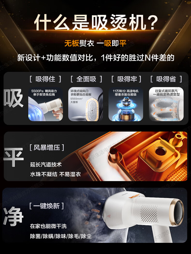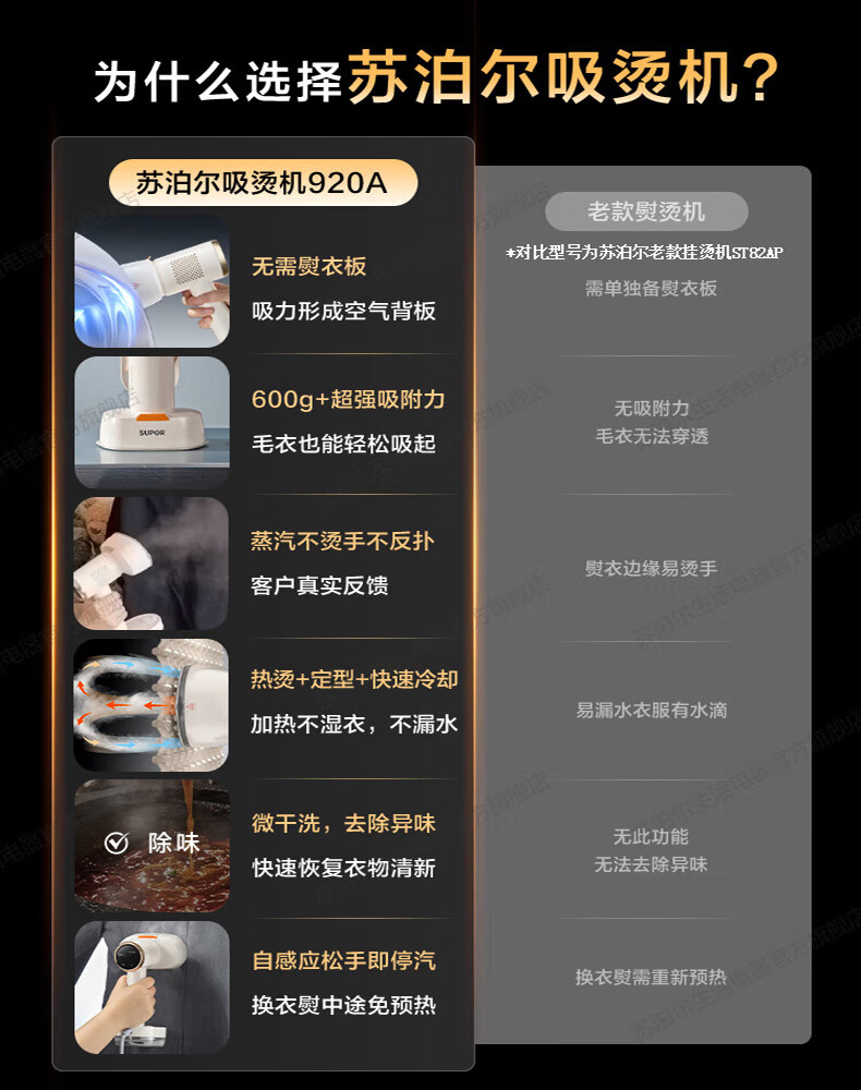 苏泊尔(SUPOR)【新一代吸烫机】吸附式手持挂烫机2025年新款家用熨烫机微增压大蒸汽电熨斗大功率除菌熨烫礼物 【首创苏泊尔】无板熨EGH-S920A