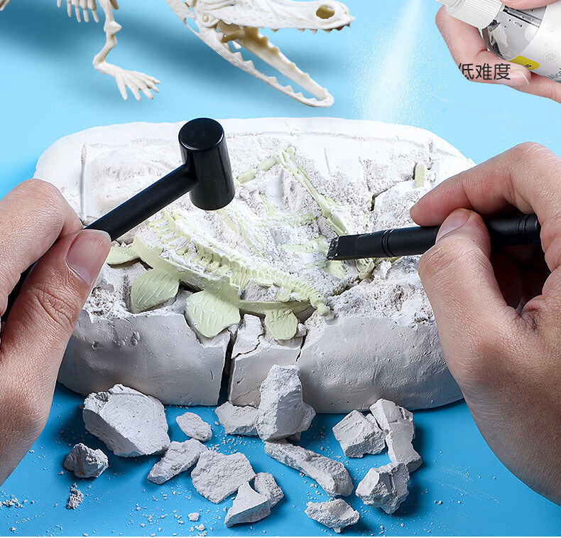 恐龙挖掘考古玩具 仿真造型 儿童男女孩互动玩具 三角龙(彩盒包装带工具)
