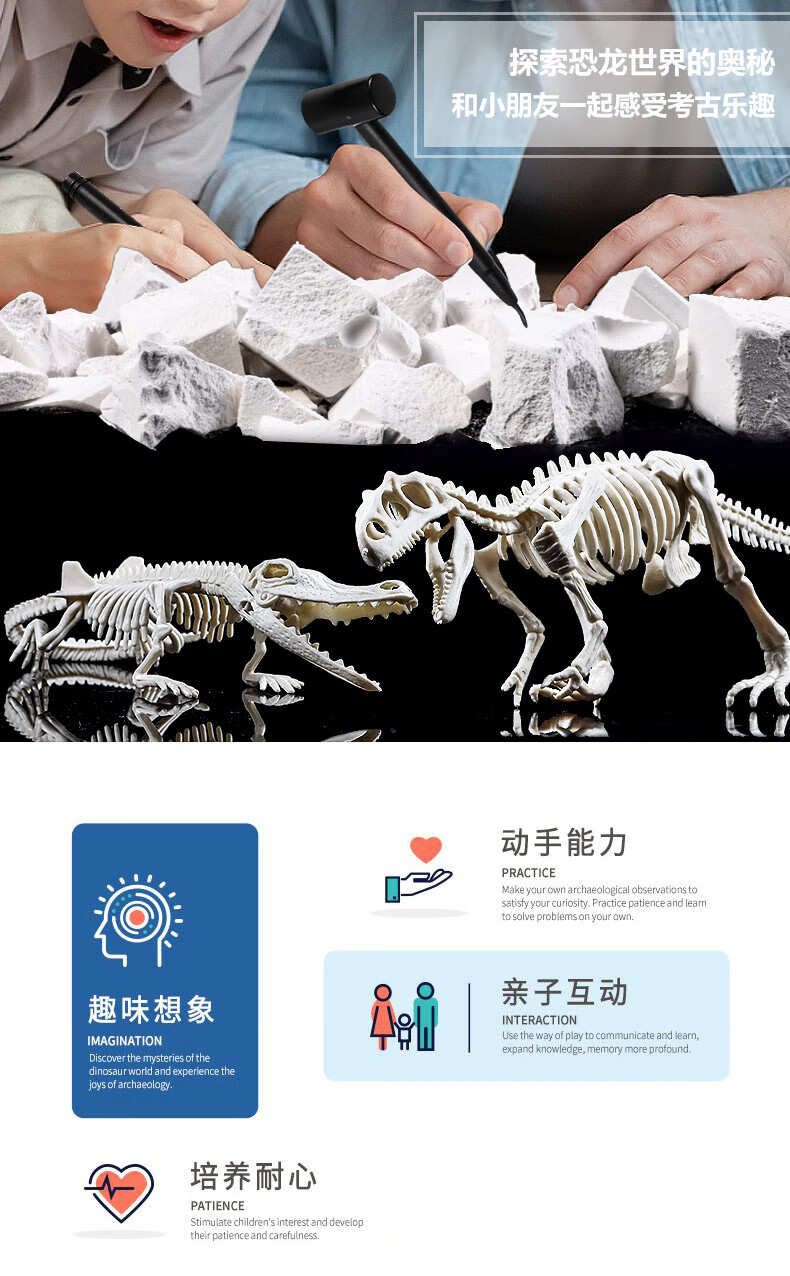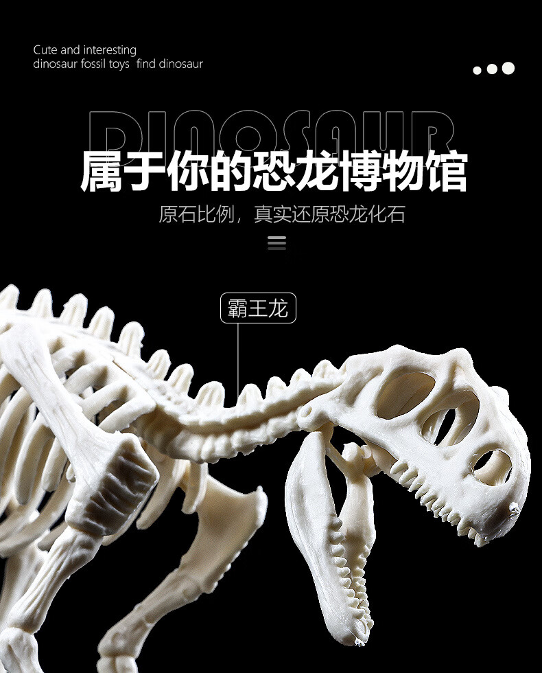 恐龙挖掘考古玩具 仿真造型 儿童男女孩互动玩具 霸王龙(彩盒包装带工具)