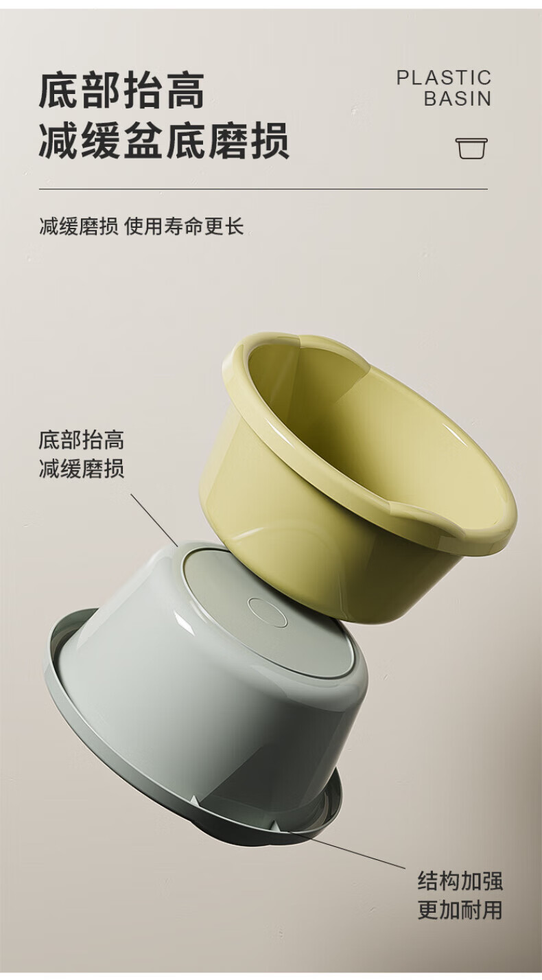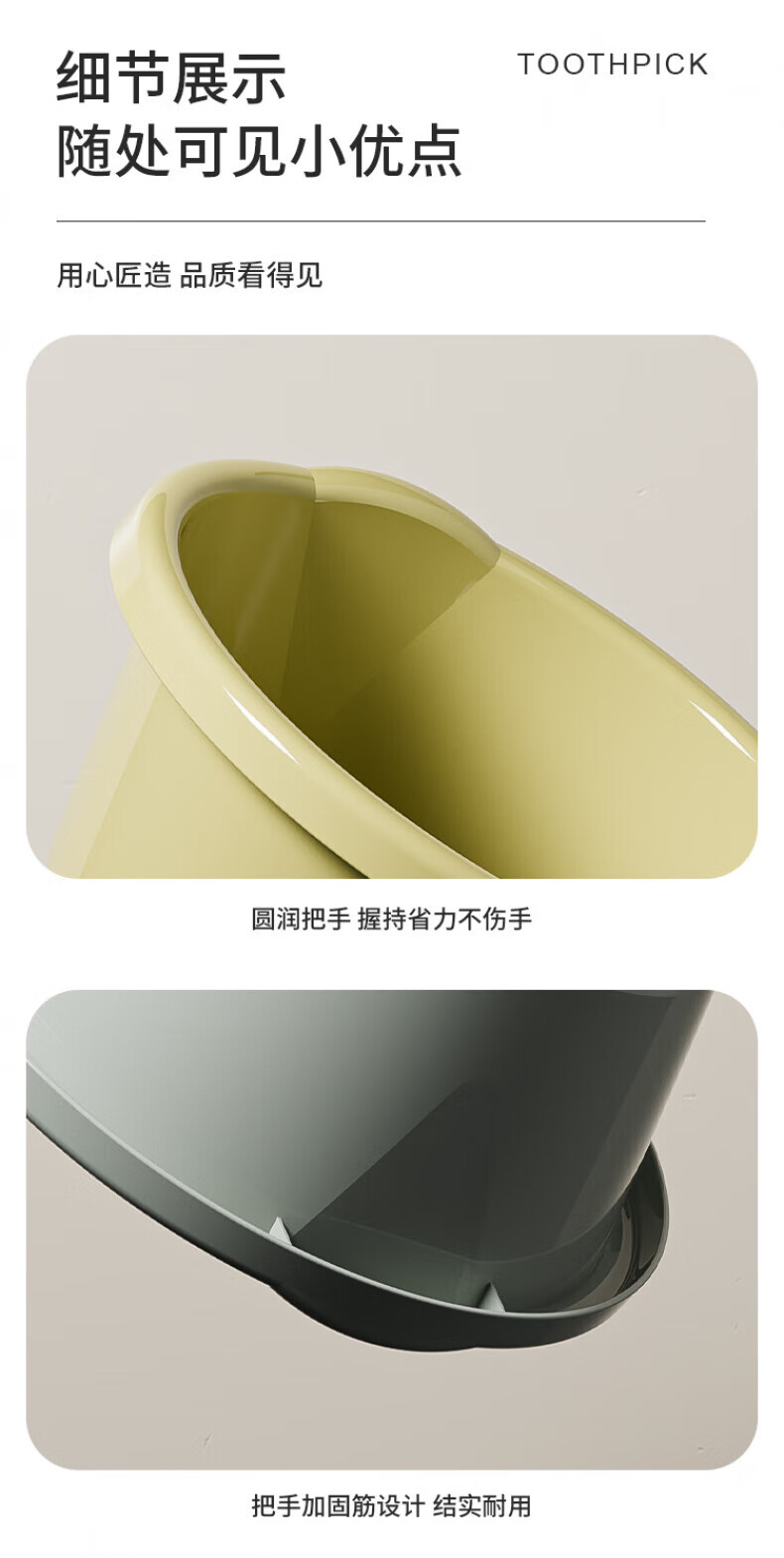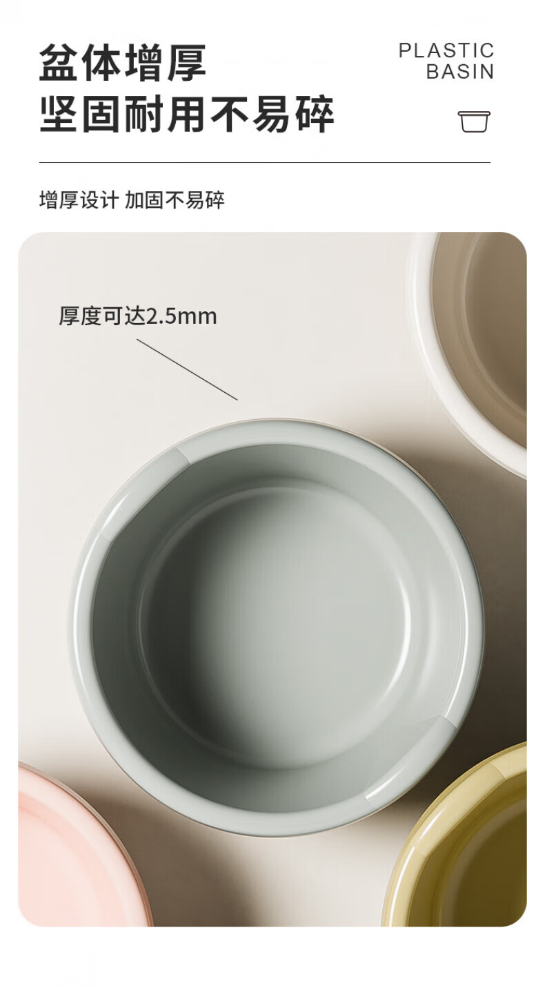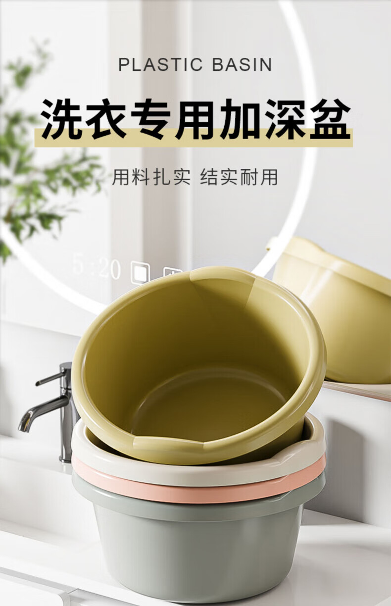 DEATKN德国洗衣盆加深加厚洗脸盆大号家用耐摔塑料学生宿舍用洗脚水盆 抹茶绿中号【特厚耐摔】 36cm