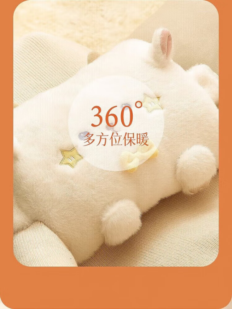 户璃德国热水袋充电防爆自动断电暖水袋可拆卸洗女生热敷肚子被窝奶茶 甜甜小兔【毛绒玩具套可拆洗】