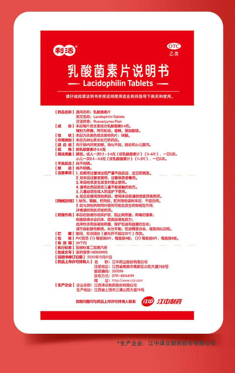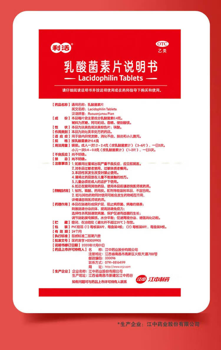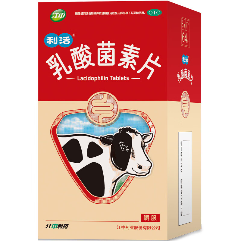 江中利活 乳酸菌素片64片益生菌(成人儿童通用)益生元调理肠胃 肠胃消化 便秘 拉肚子药 腹泻 止泻药