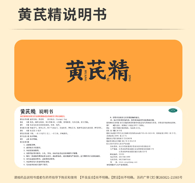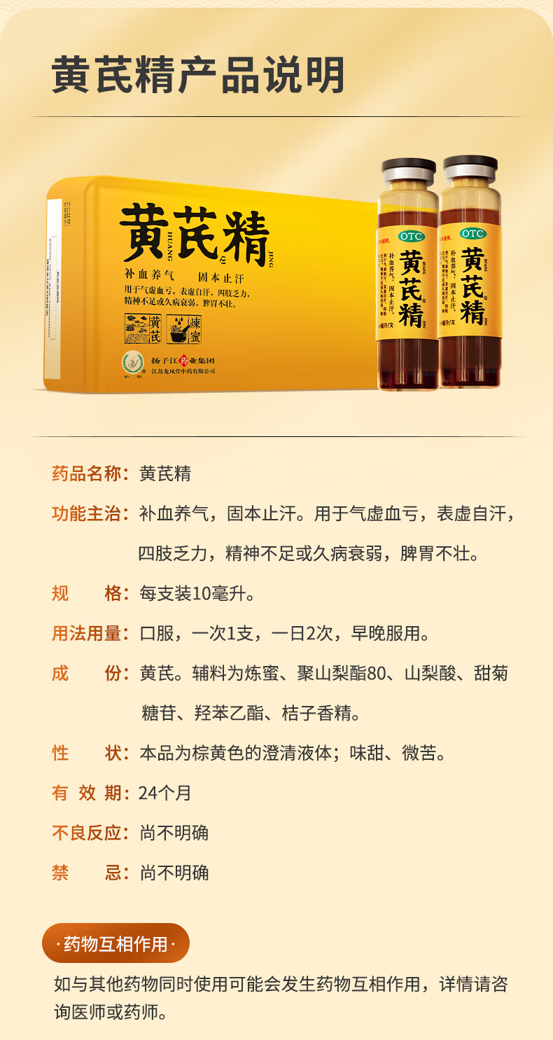 扬子江 有机黄芪精 补血补气 10ml*24支礼盒装 四肢乏力 精神不足