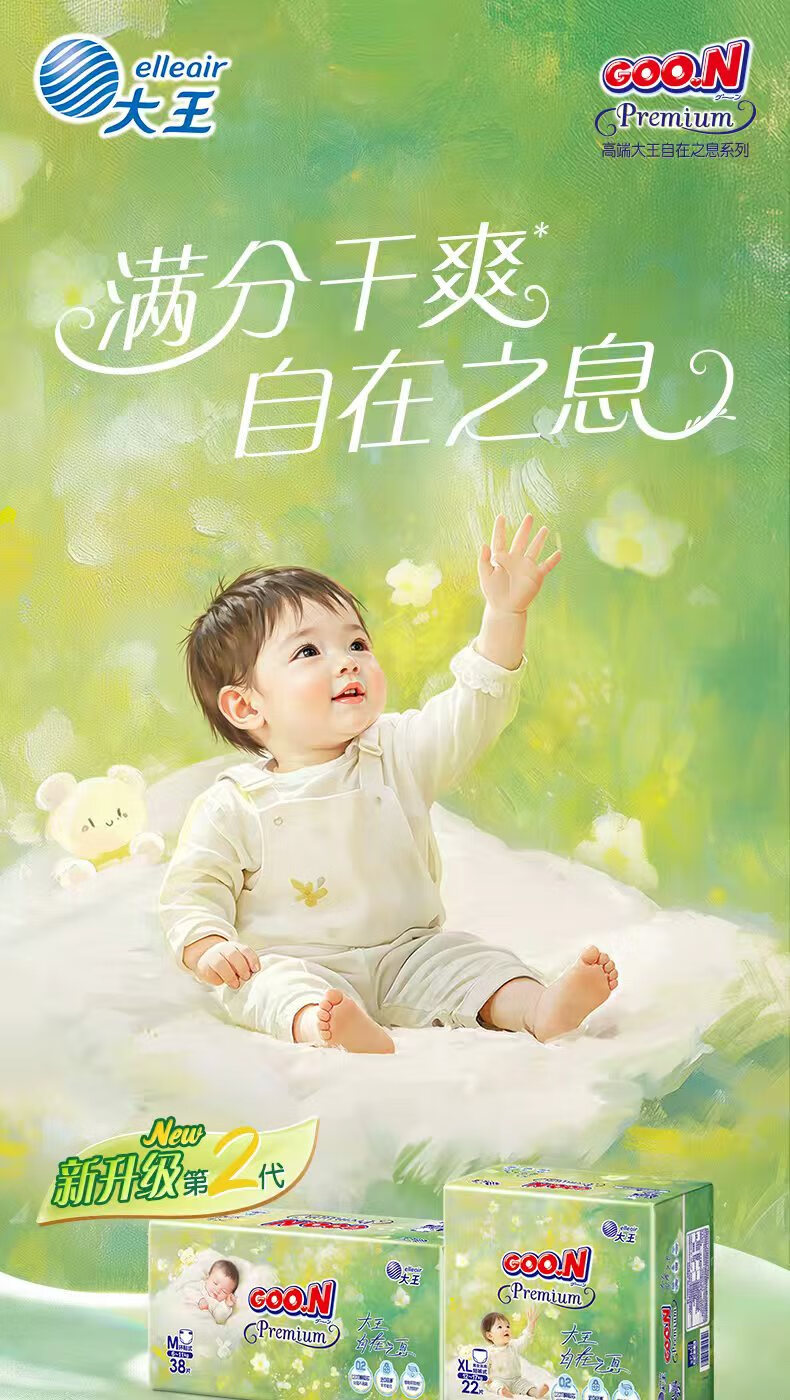 大王(GOO.N)自在之息纸尿裤L32片(9-14kg)尿不湿 瞬吸芯体 轻薄干爽