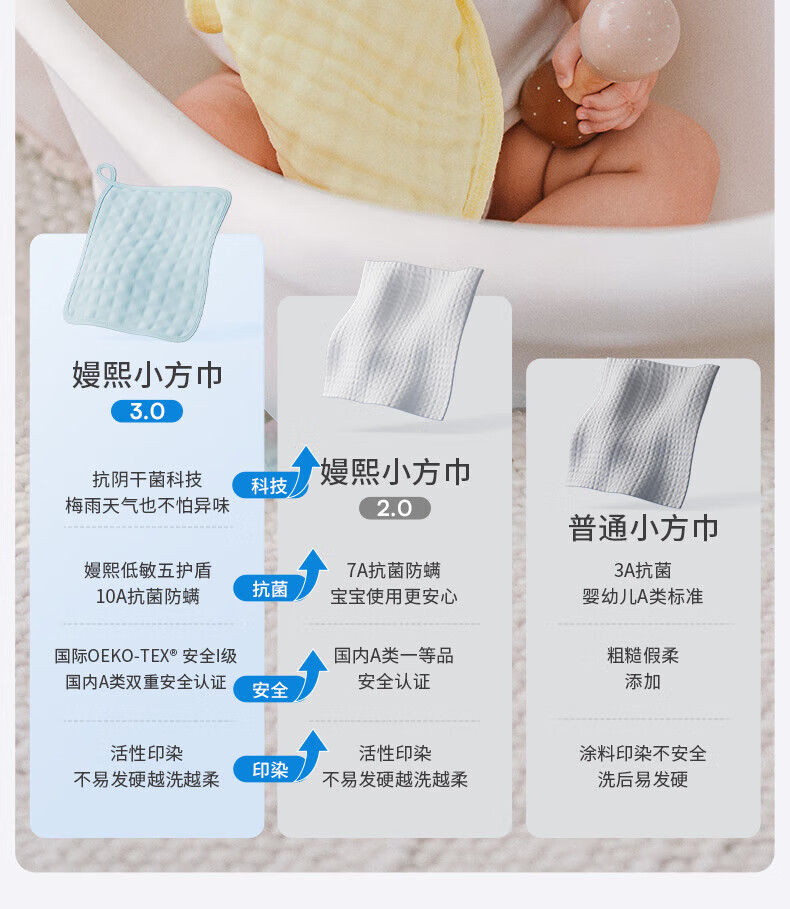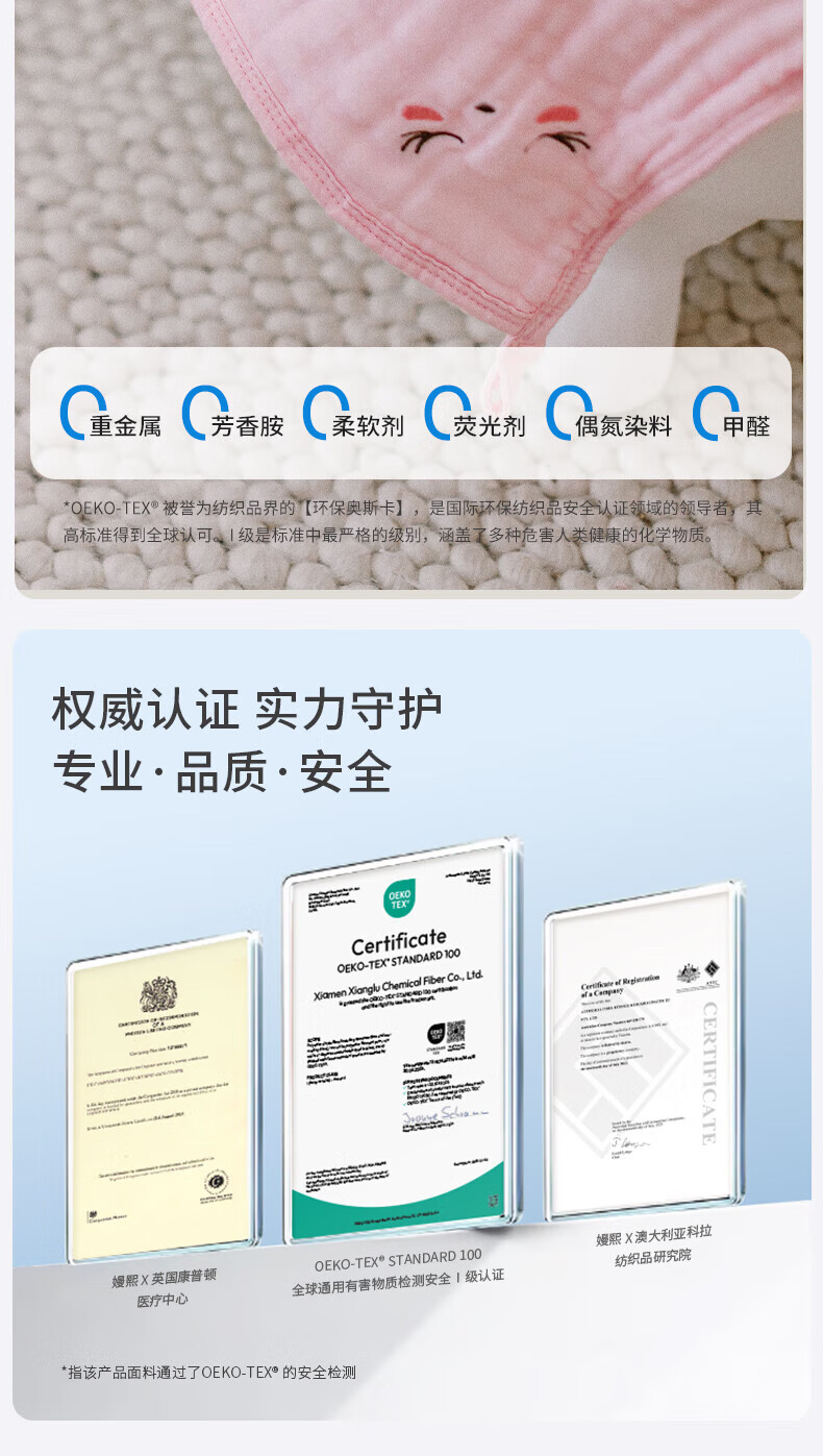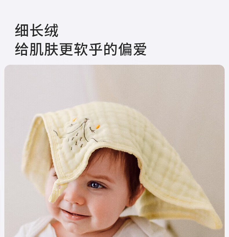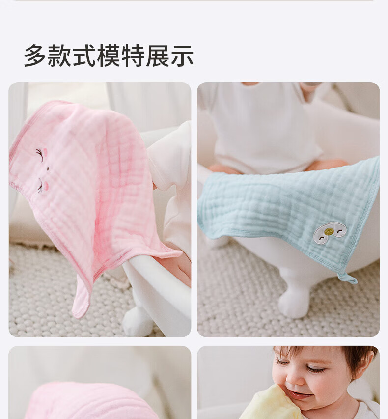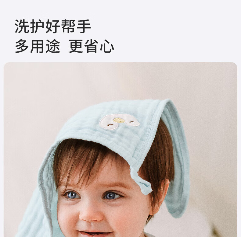 嫚熙(EMXEE)婴儿方巾婴童六层泡泡纱小方巾(四条装) 小狐狸+小兔子+小企鹅+小企鹅