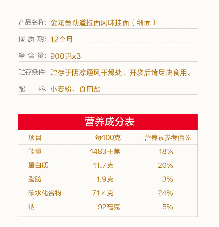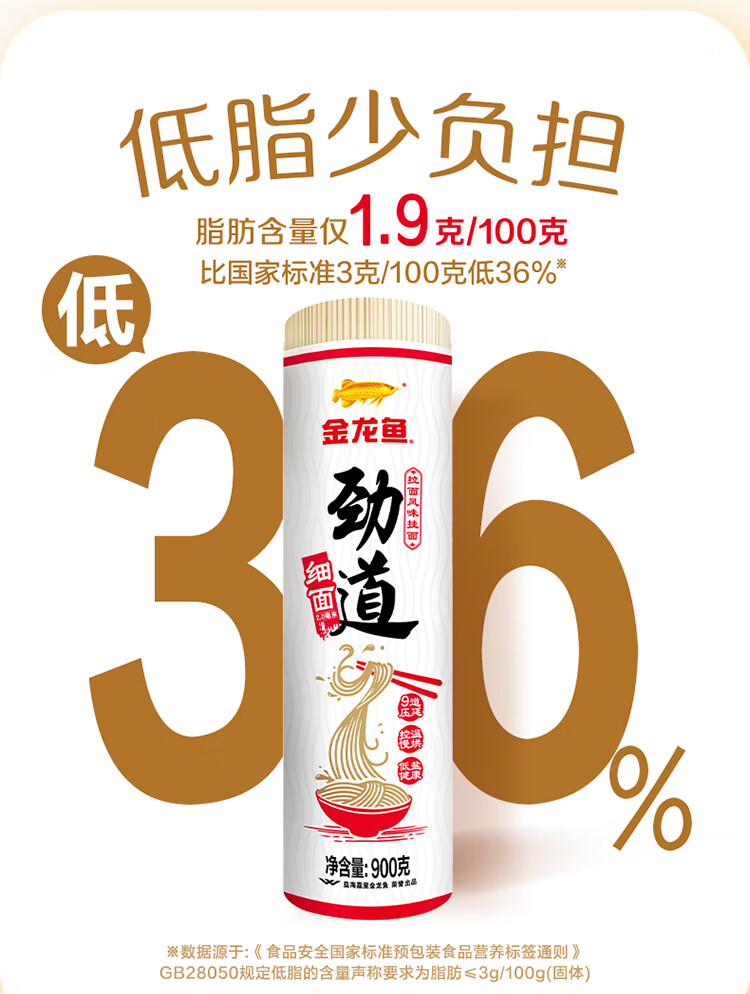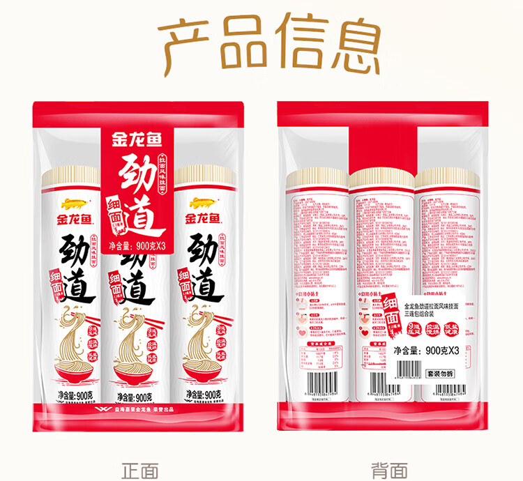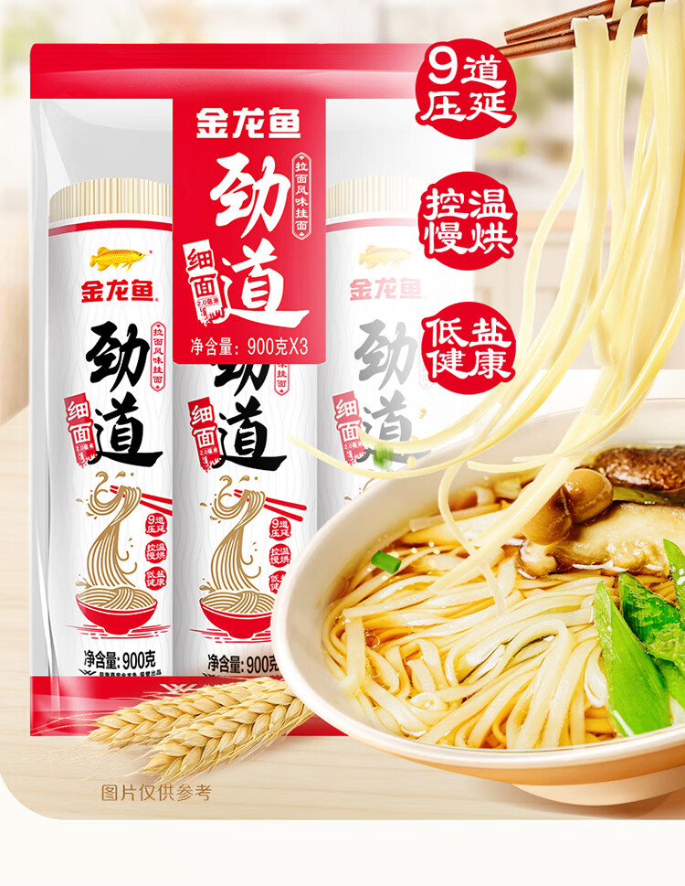 金龙鱼劲道拉面风味挂面纸包2毫米圆挂面900g*3 拉面汤面素面早餐面 900g*3连包
