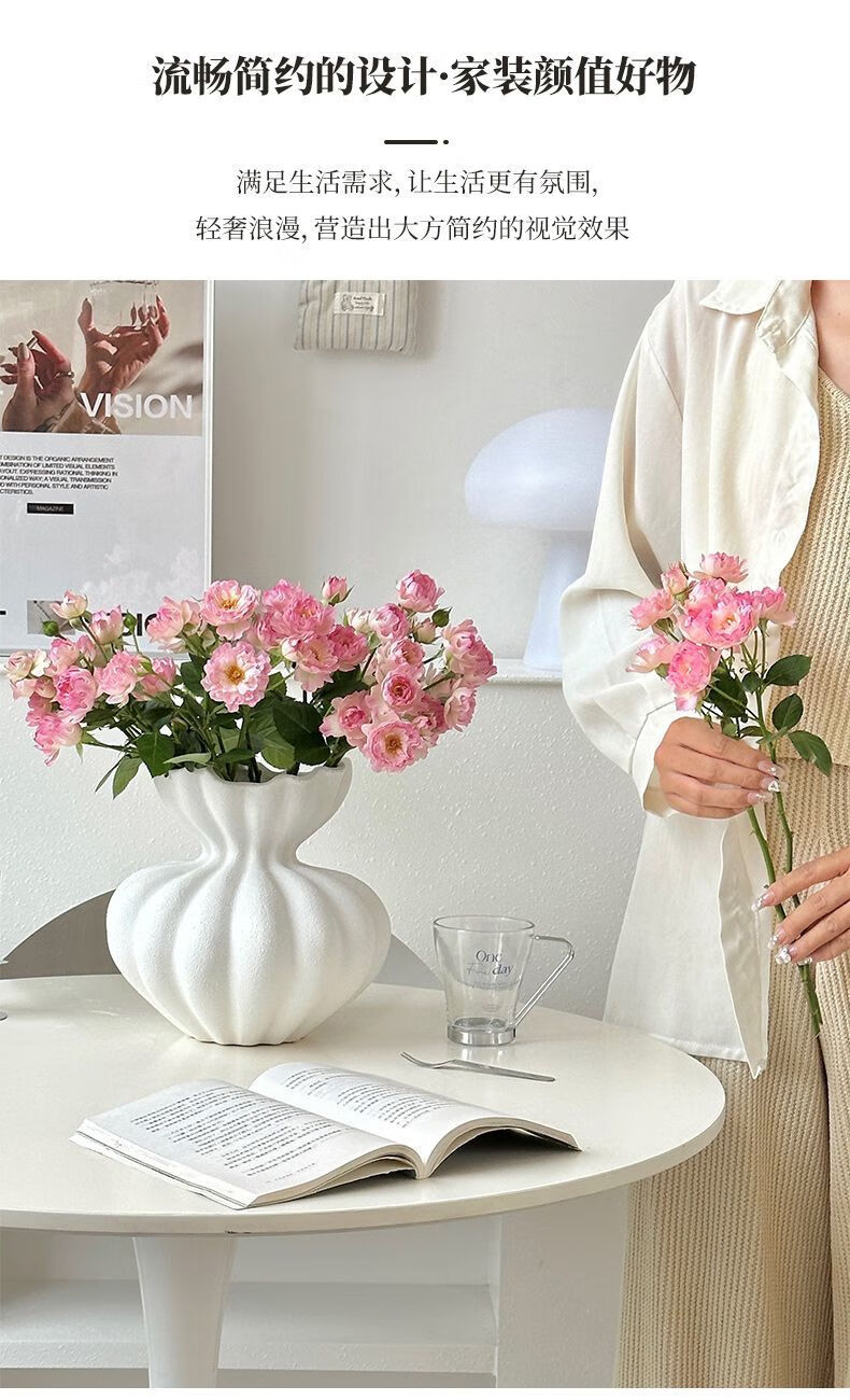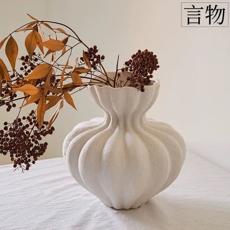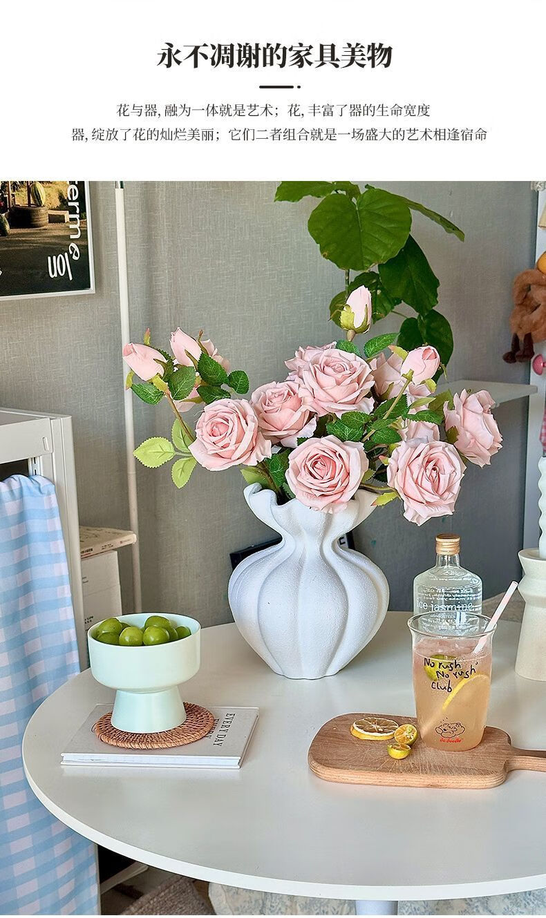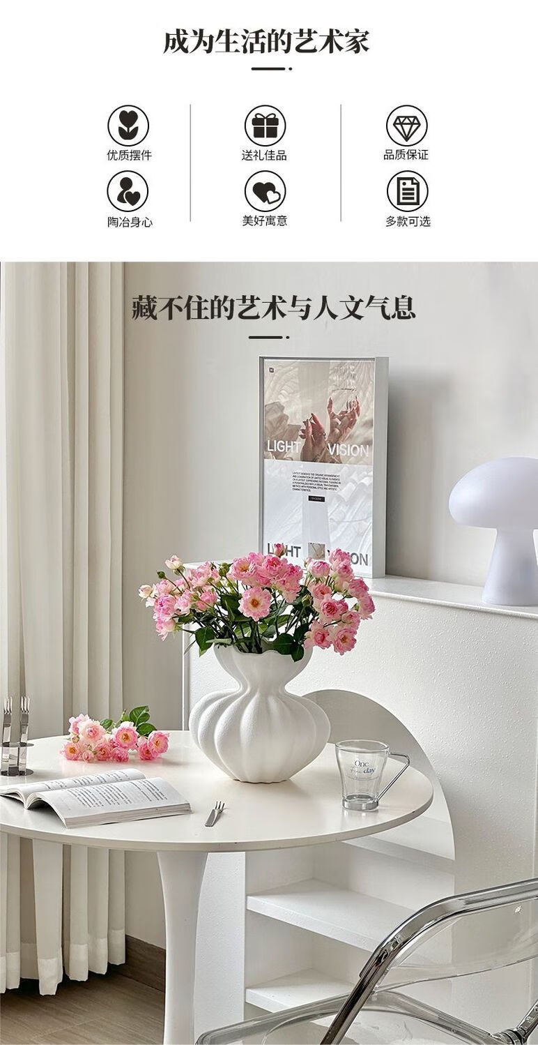 OYKTN侘寂风法式大花瓶白色感摆件餐桌客厅家居中古风复古艺术花器 大号诧寂瓶(不可装水)