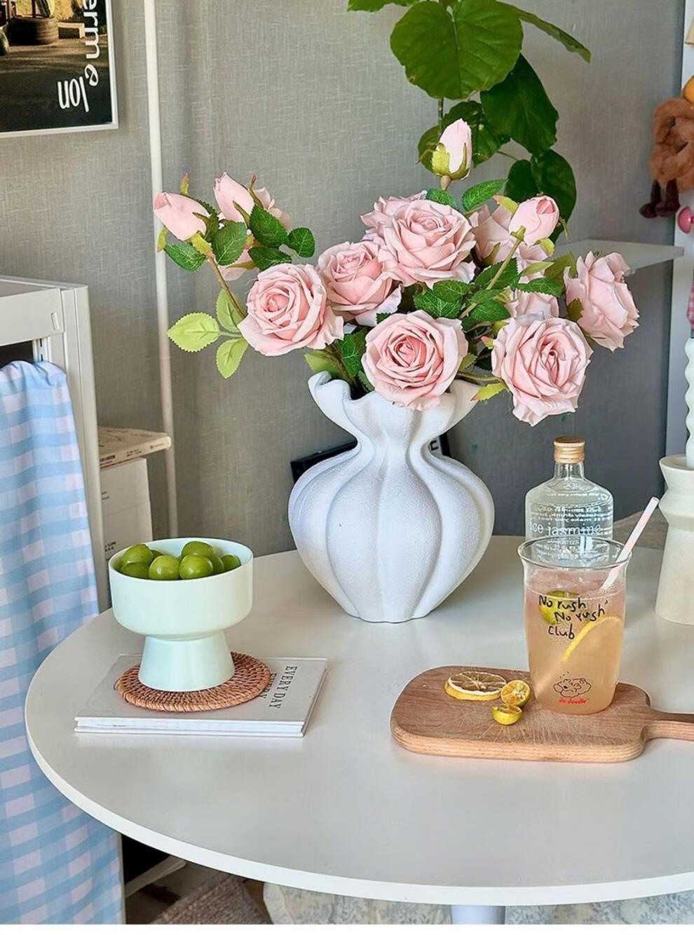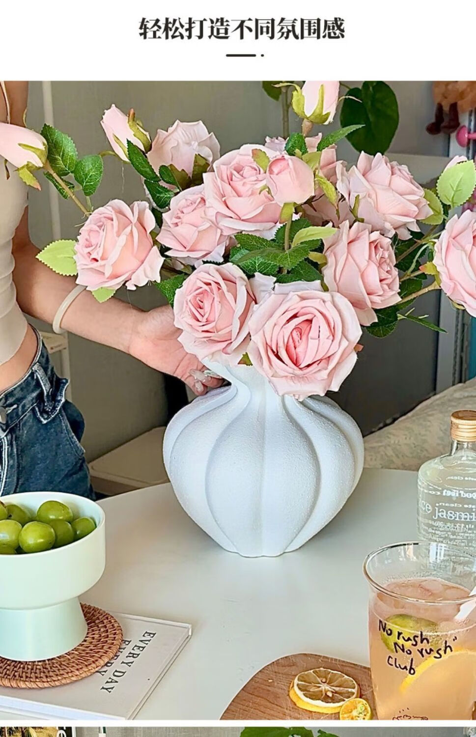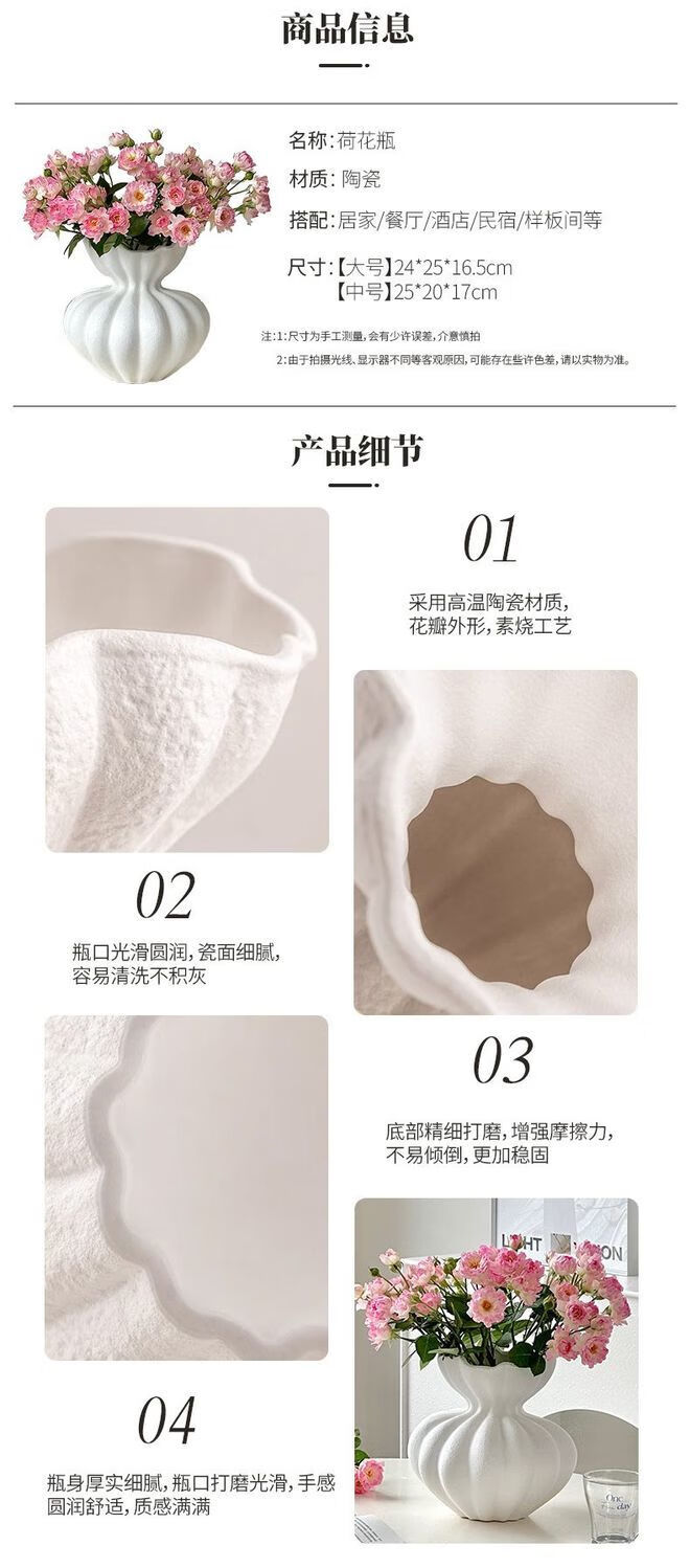 OYKTN侘寂风法式大花瓶白色感摆件餐桌客厅家居中古风复古艺术花器 大号诧寂瓶(不可装水)