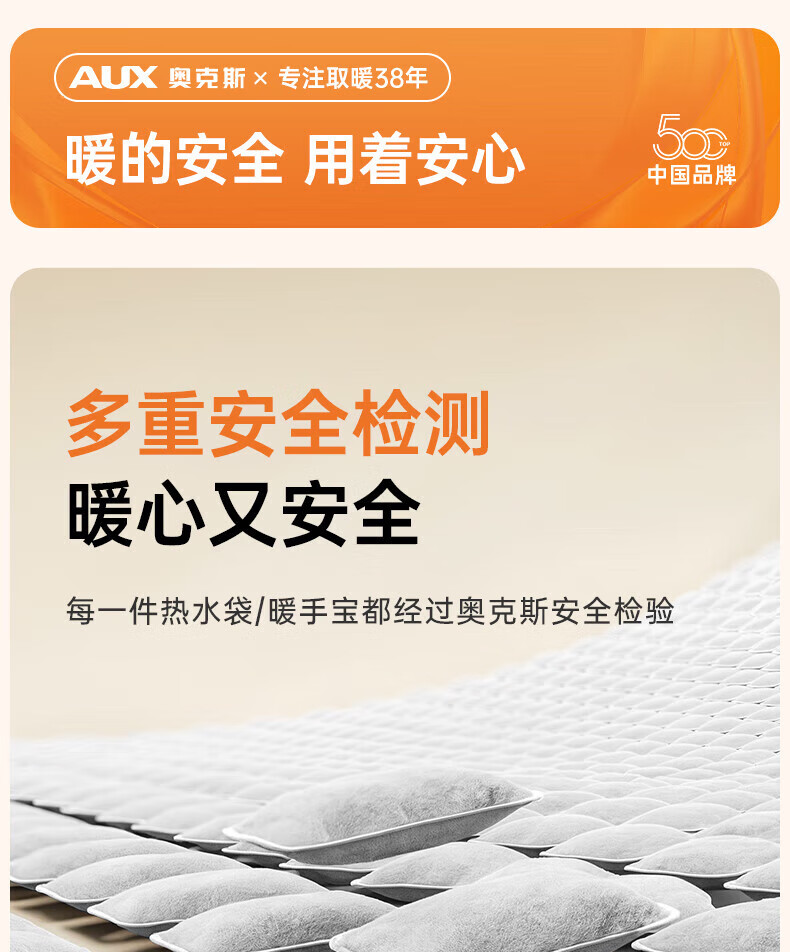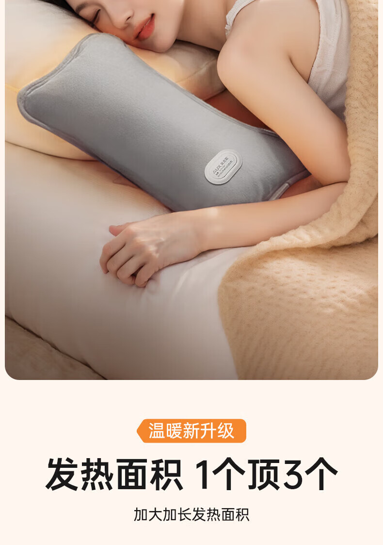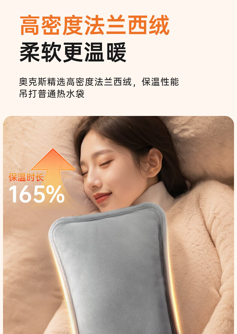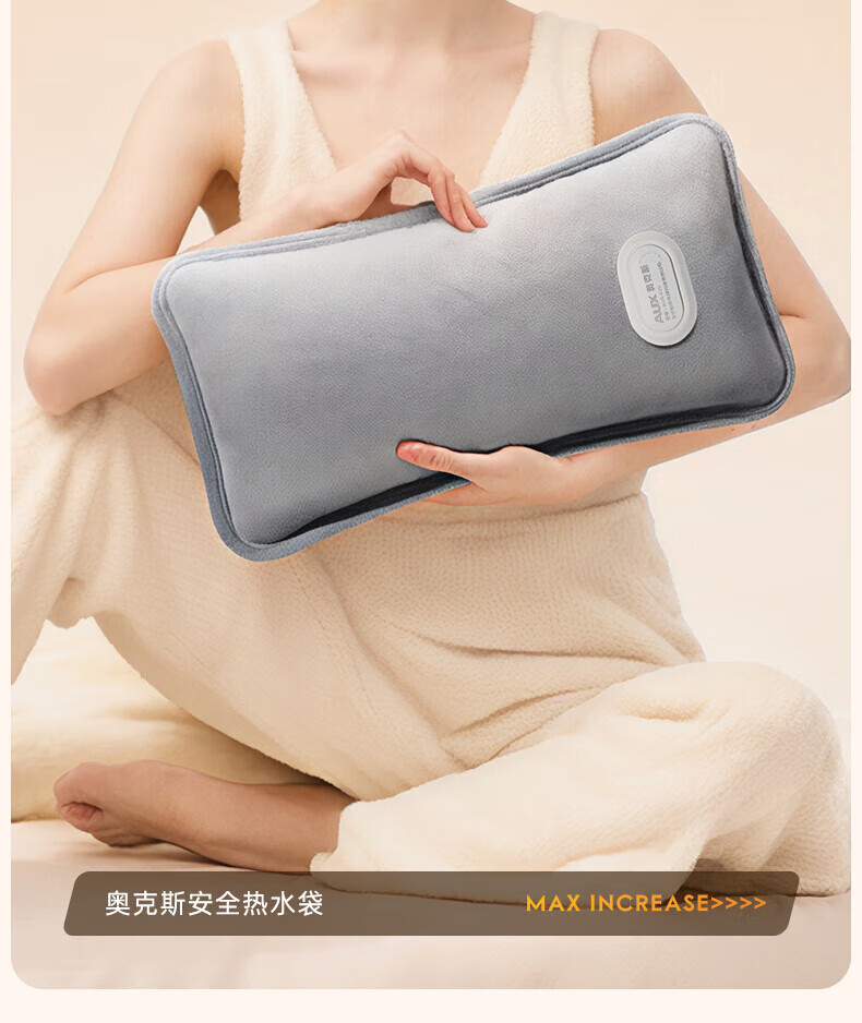 奥克斯(AUX)【大号被窝用】长条热水袋充电暖手宝暖水袋暖宝宝防爆被窝用神器 可拆洗双插手【某营同款】星空灰+国标3C认证