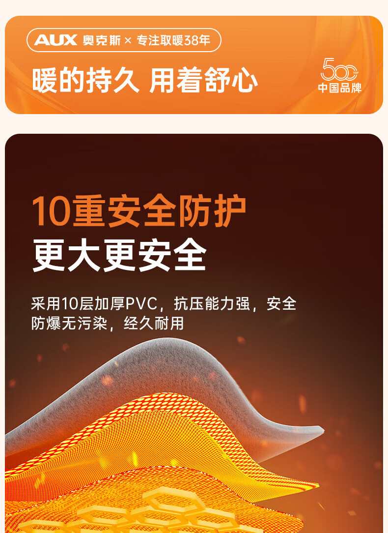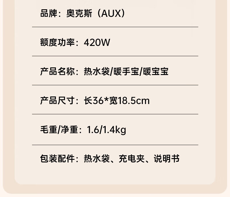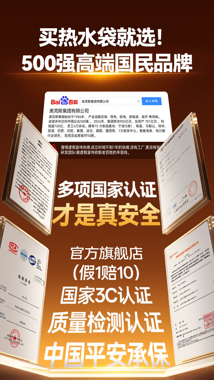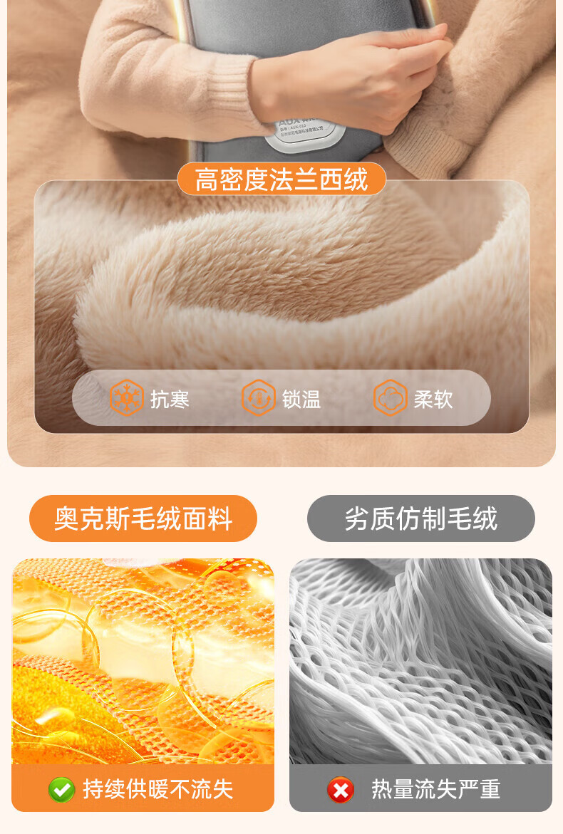 奥克斯(AUX)【大号被窝用】长条热水袋充电暖手宝暖水袋暖宝宝防爆被窝用神器 可拆洗双插手【某营同款】星空灰+国标3C认证