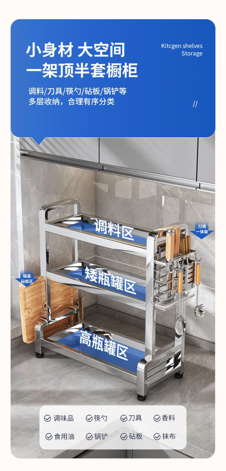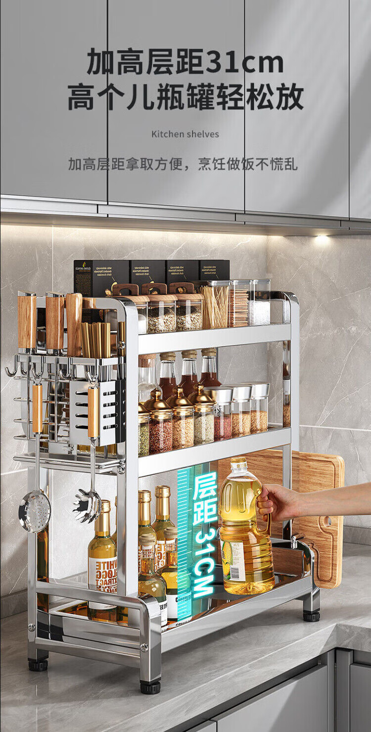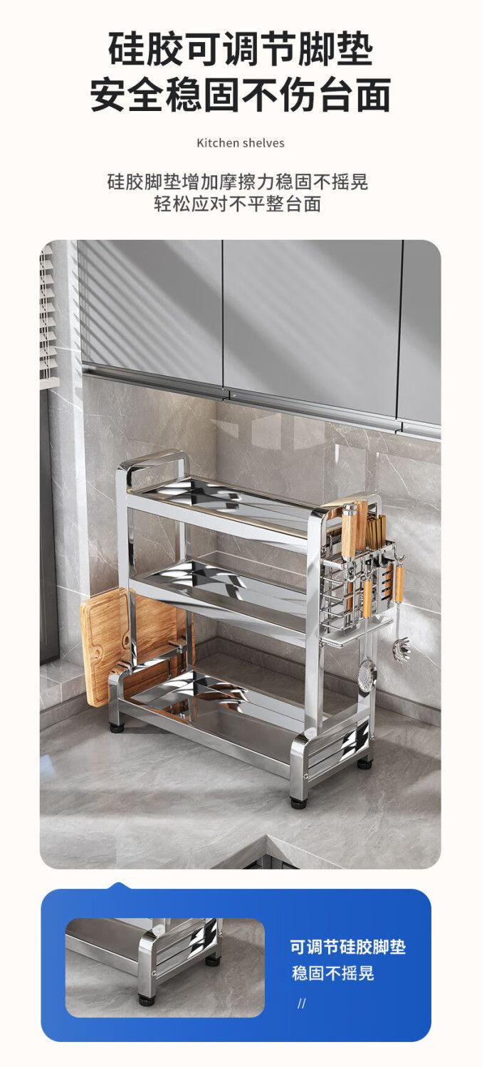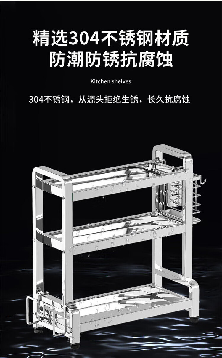 简漾304不锈钢厨房调料置物架台面调味品收纳架家用多功能多层储物架 特厚不锈钢材质 2层长33cm丨单主架