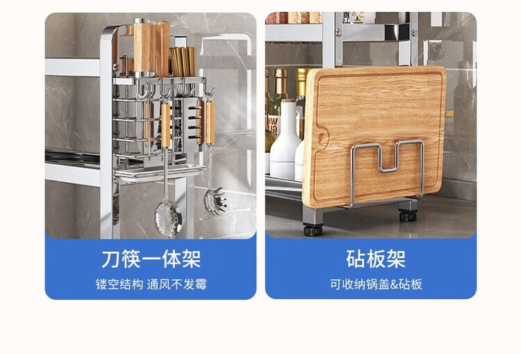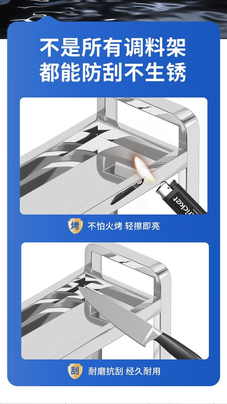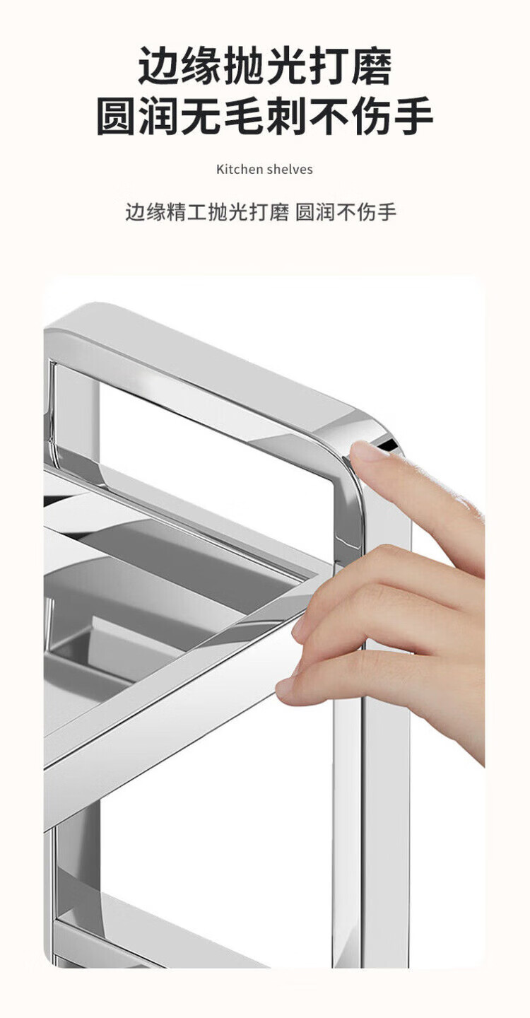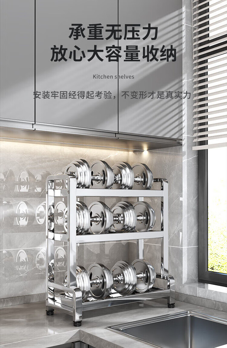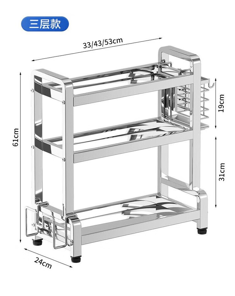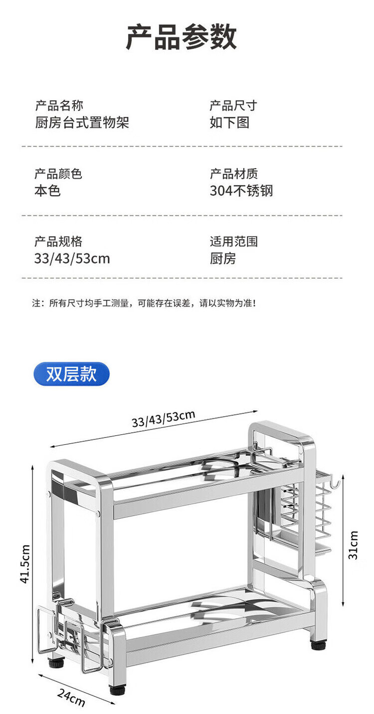 简漾304不锈钢厨房调料置物架台面调味品收纳架家用多功能多层储物架 特厚不锈钢材质 2层长33cm丨单主架