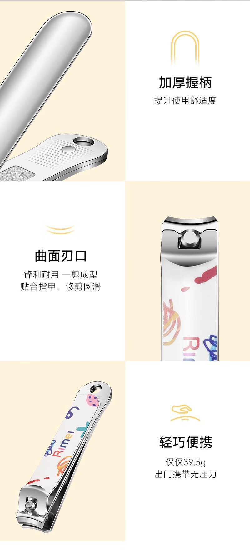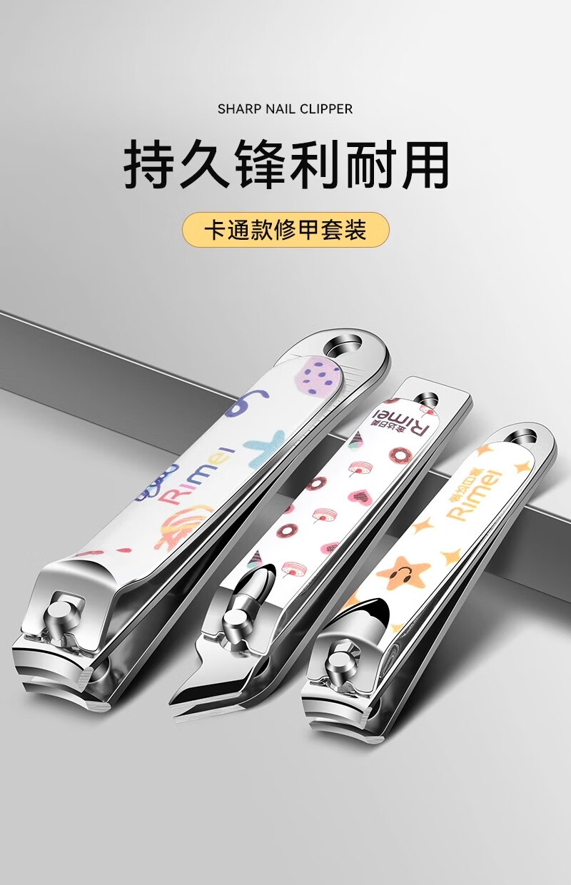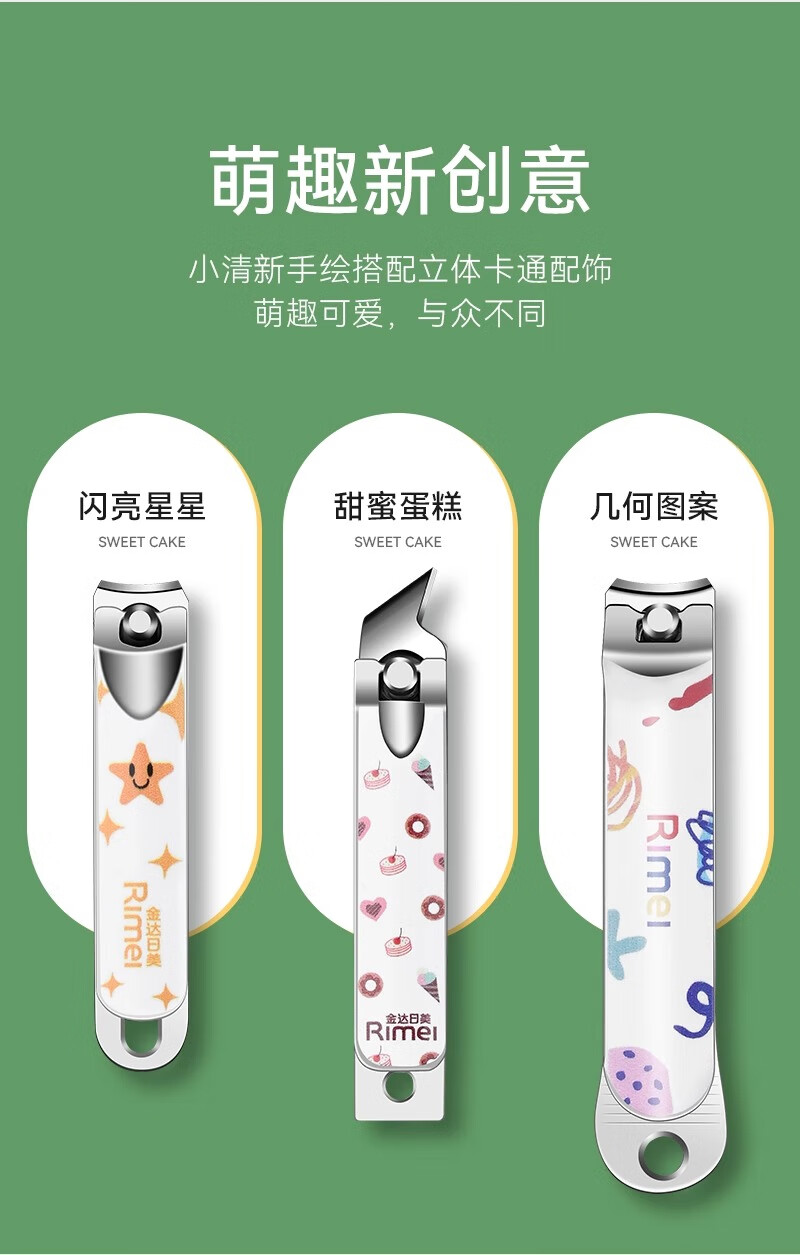 金达日美指甲刀套装家用指甲工具套装大号指甲剪小米白平口指甲钳 萌趣绘画款-平口指甲钳【送挖耳勺】