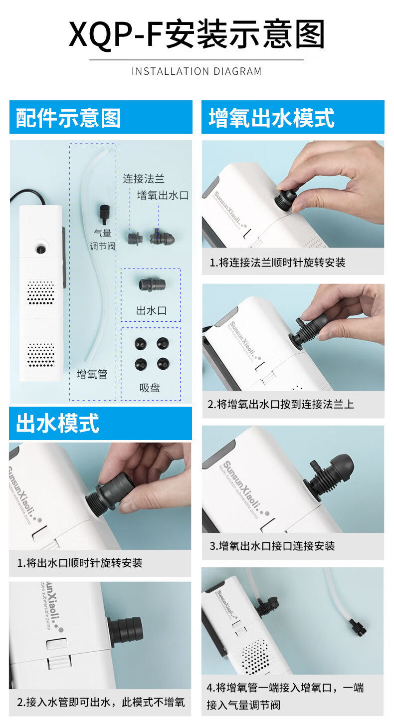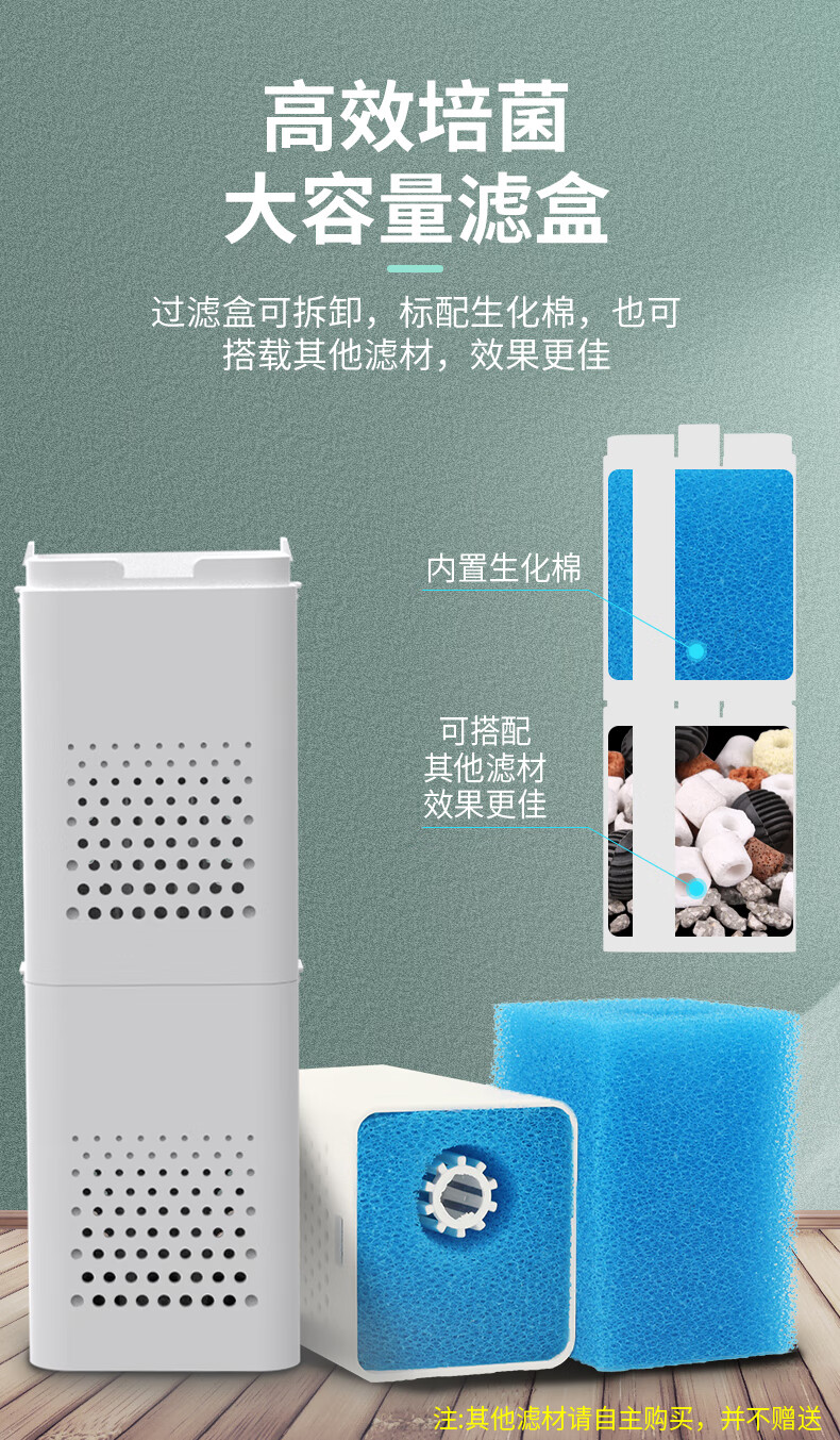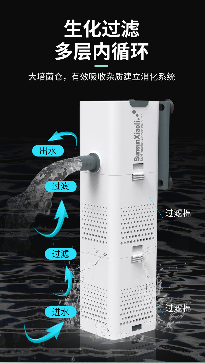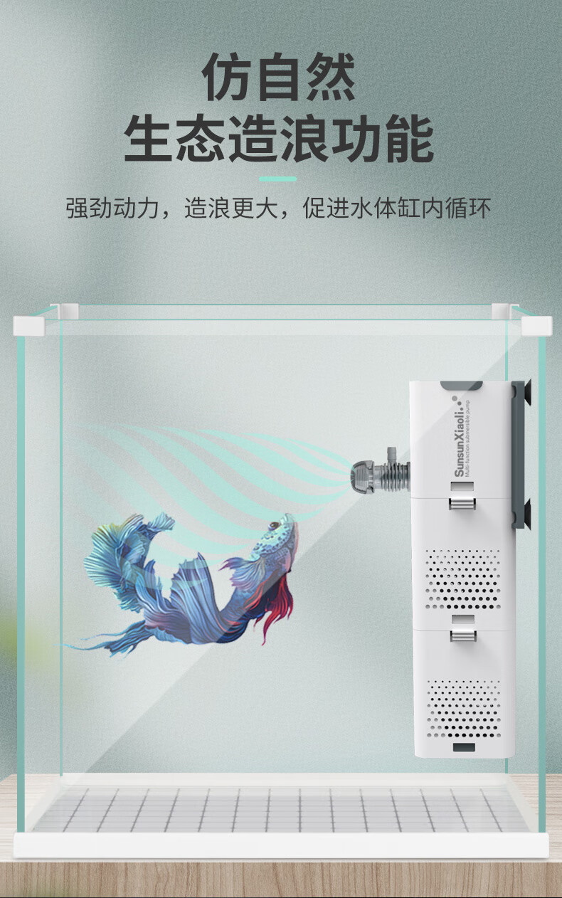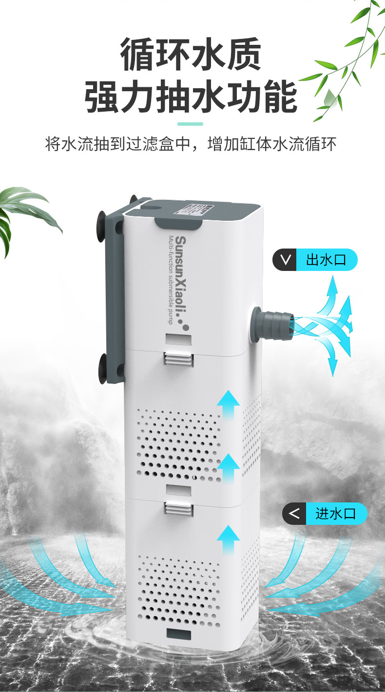 森森 小鲤鱼缸过滤器净水循环三合一内置水族箱过滤系统XQP-500F 6W