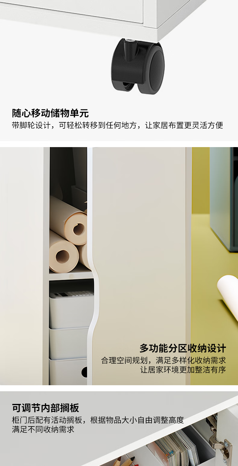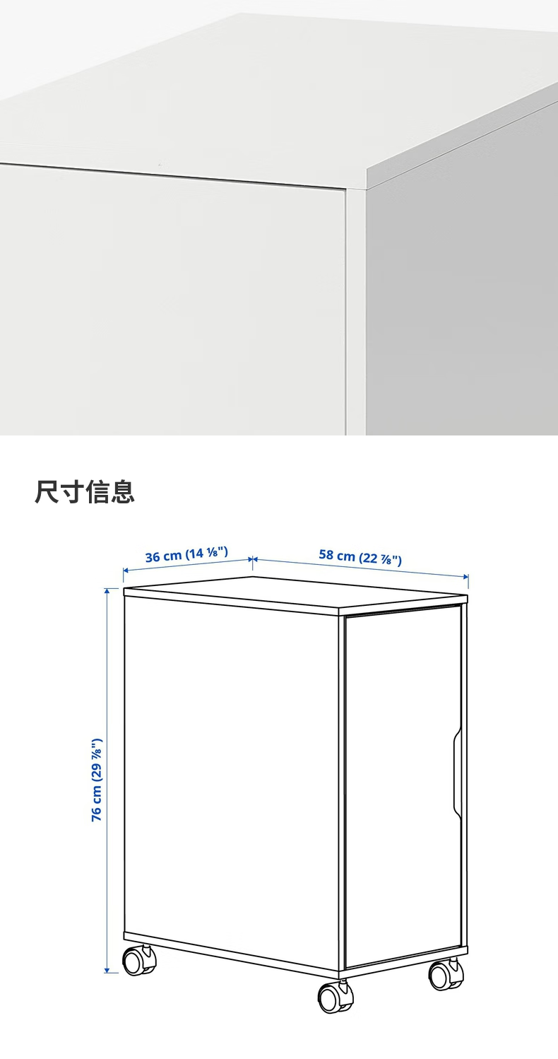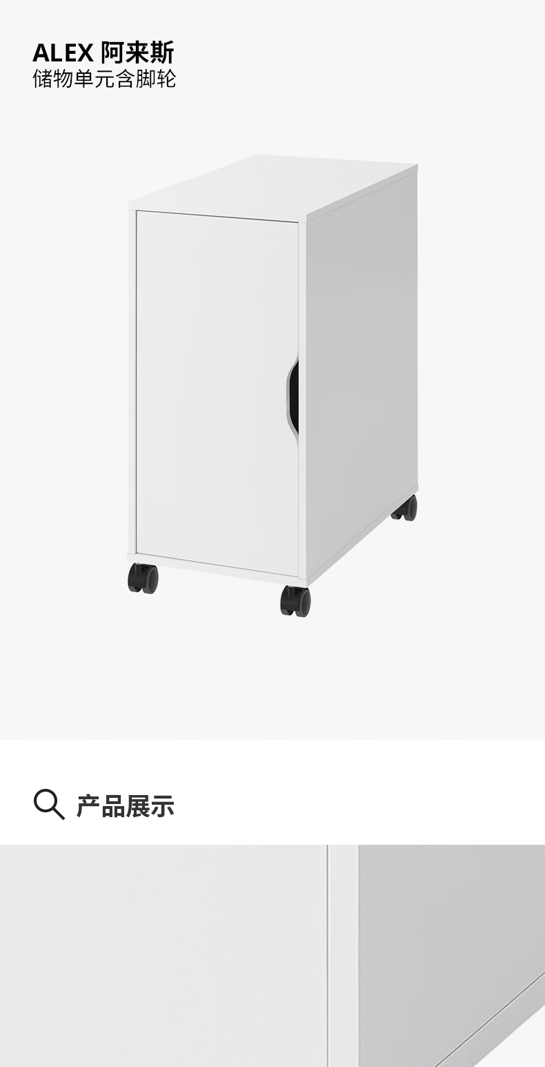 宜家(IKEA)【新品】ALEX阿来斯储物单元含脚轮小柜子储物柜家用 白色带黑色脚轮