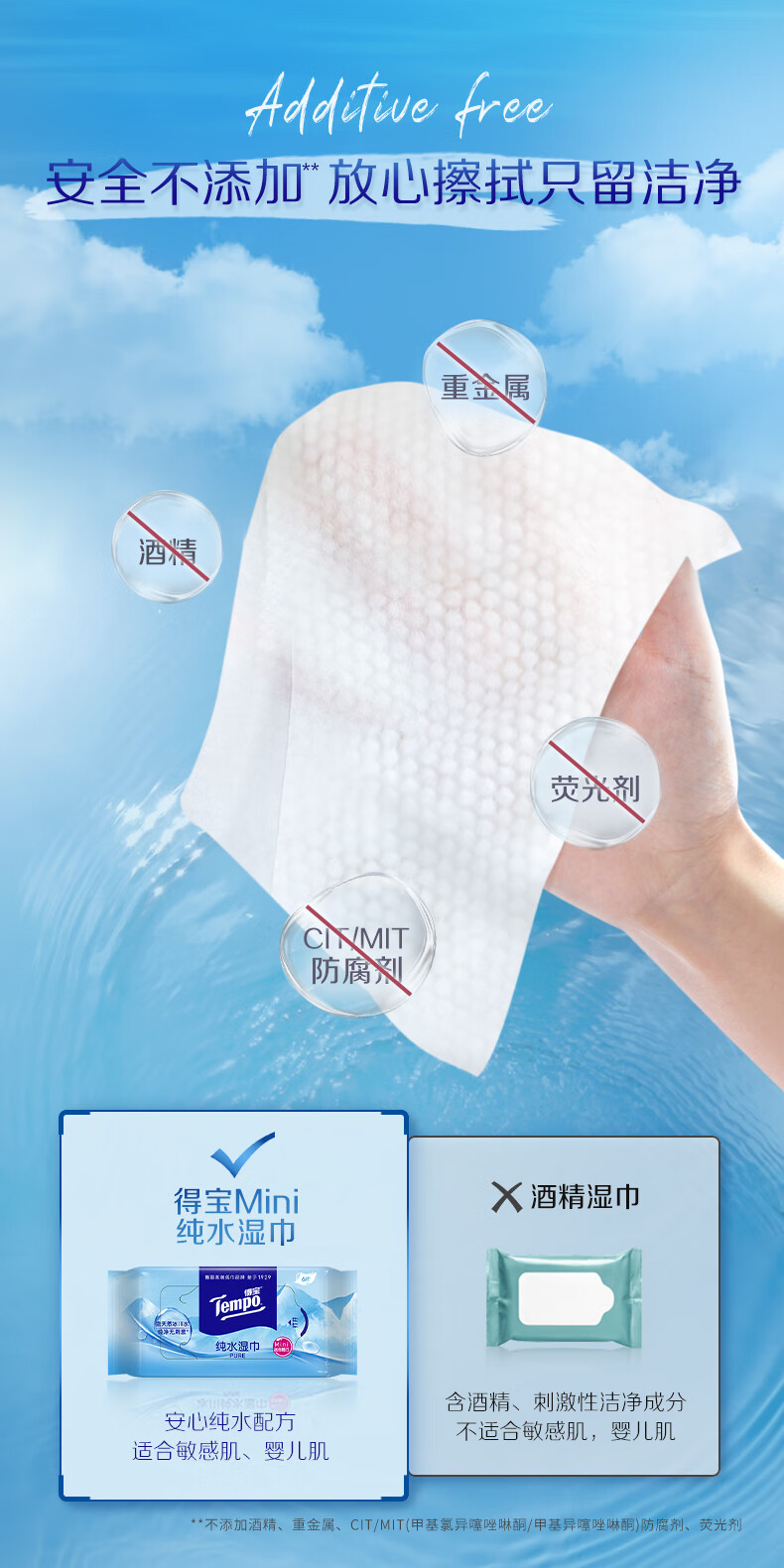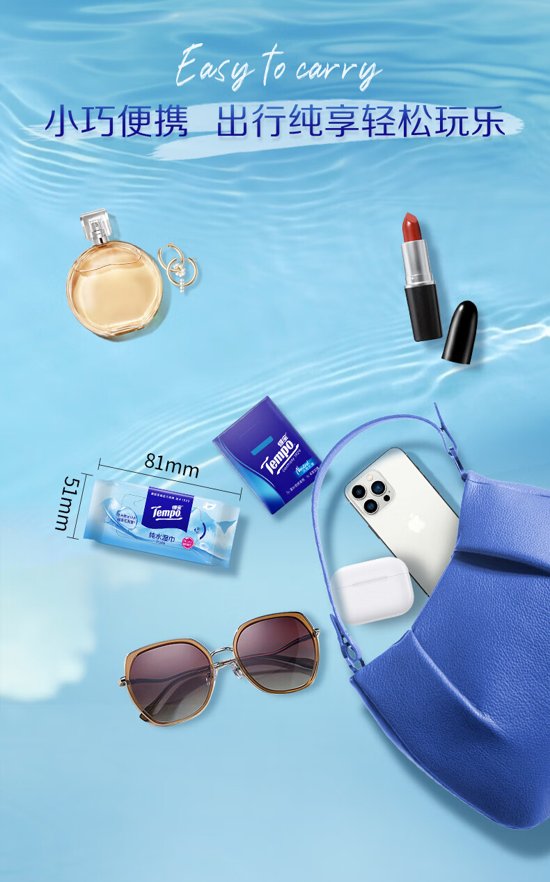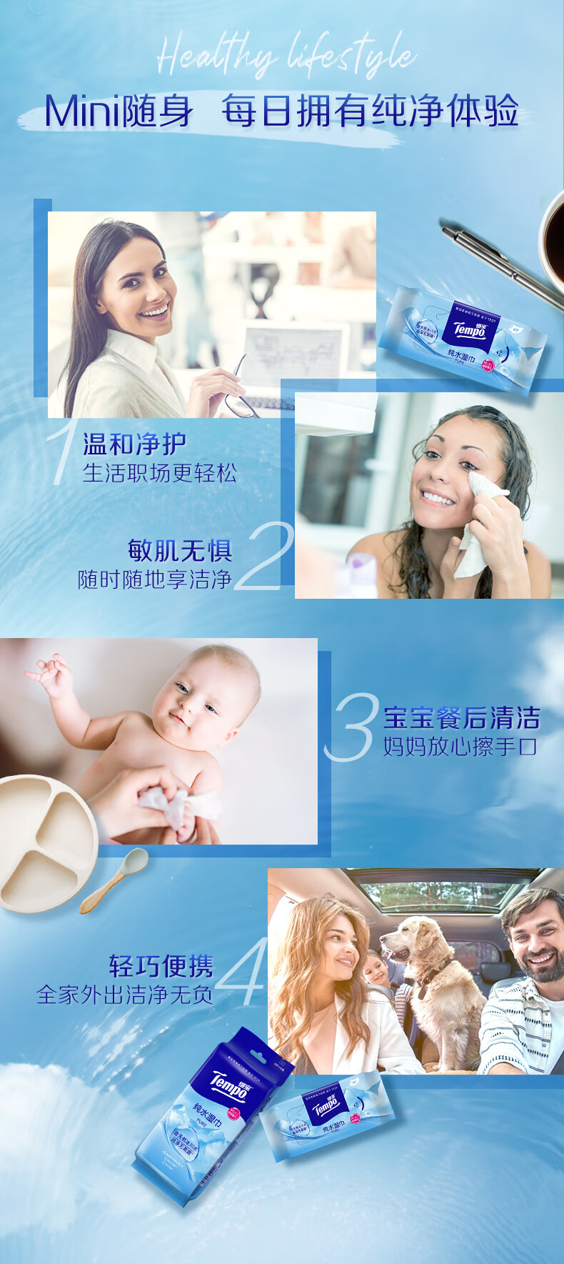 得宝(TEMPO)湿巾 Mini冰川纯水6片*6包 便携装 婴儿湿巾 湿纸巾 湿巾小包