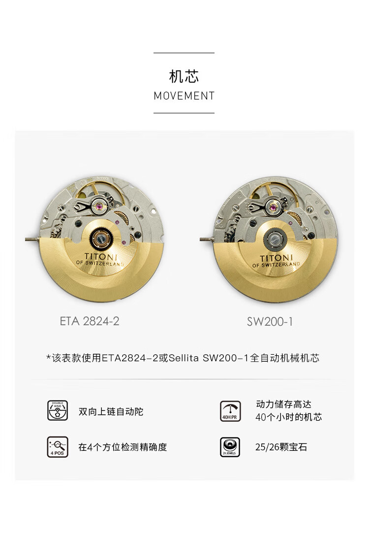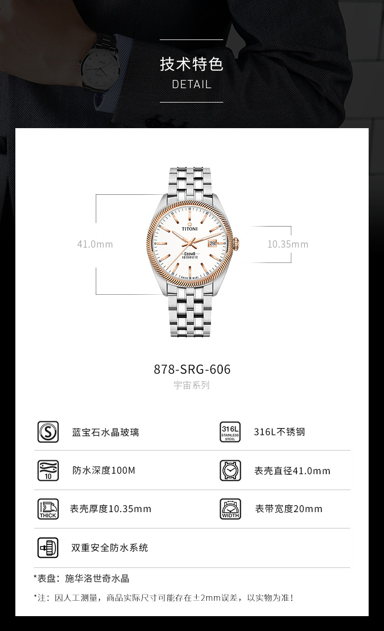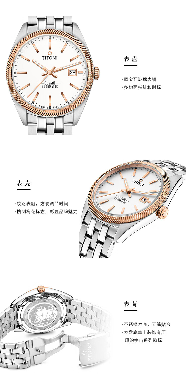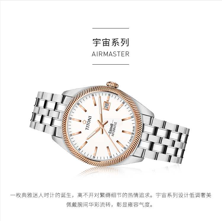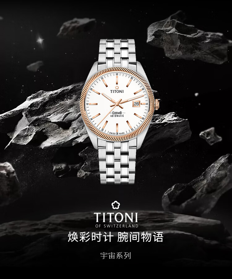 梅花(Titoni)瑞士手表 宇宙系列 机械钢带男士腕表 41mm878-SRG-606送男友礼物