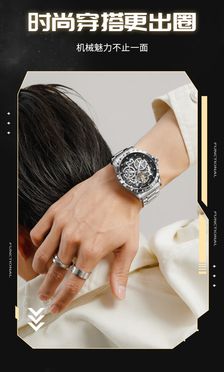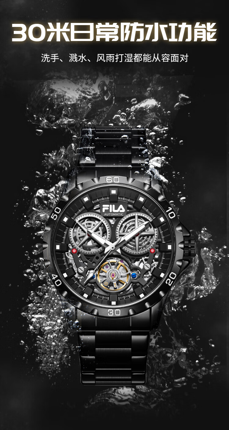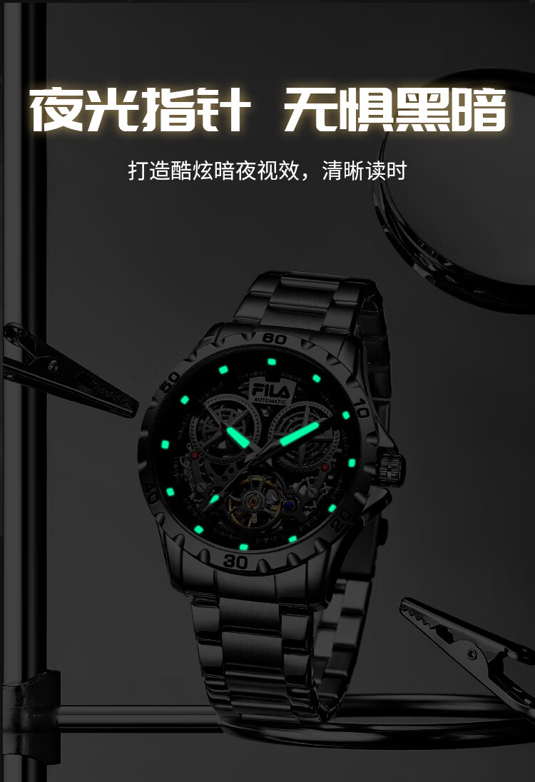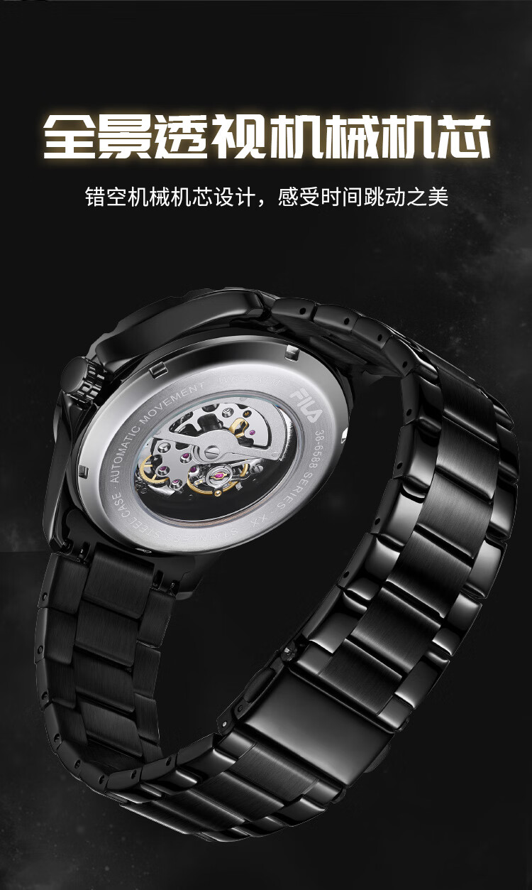 斐乐(FILA)机械手表男士男学生潮流时尚简约礼物送男友镂空夜光防水6587-002