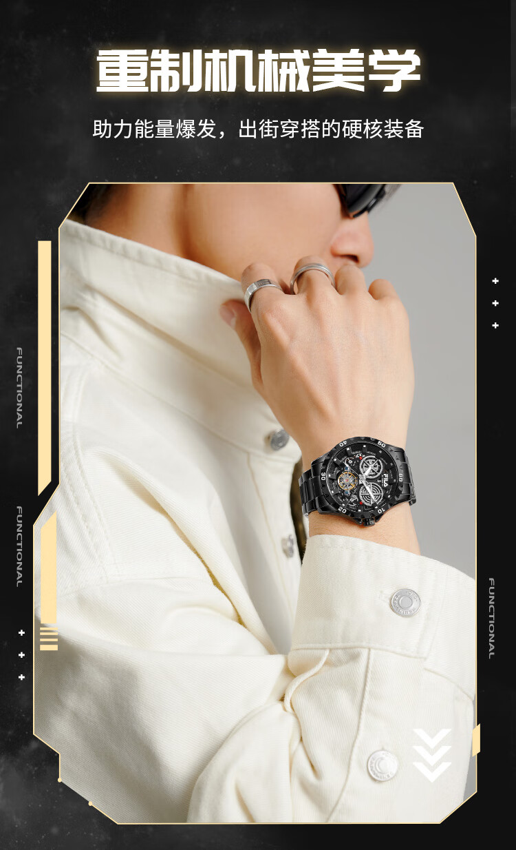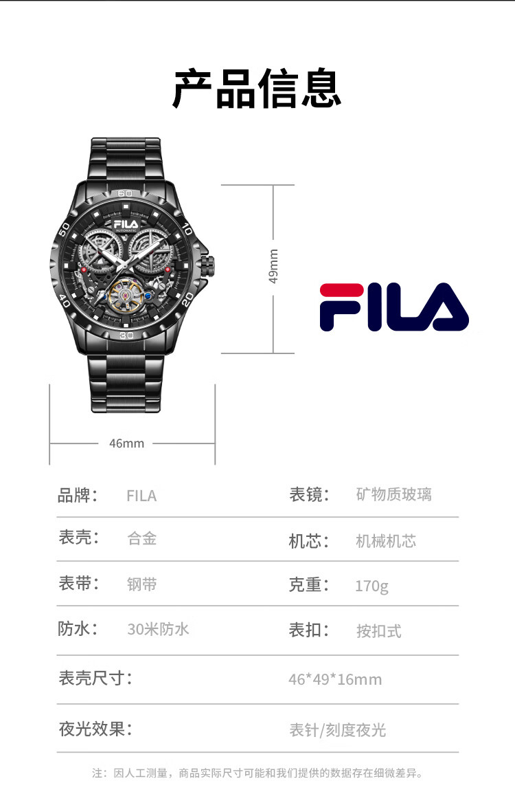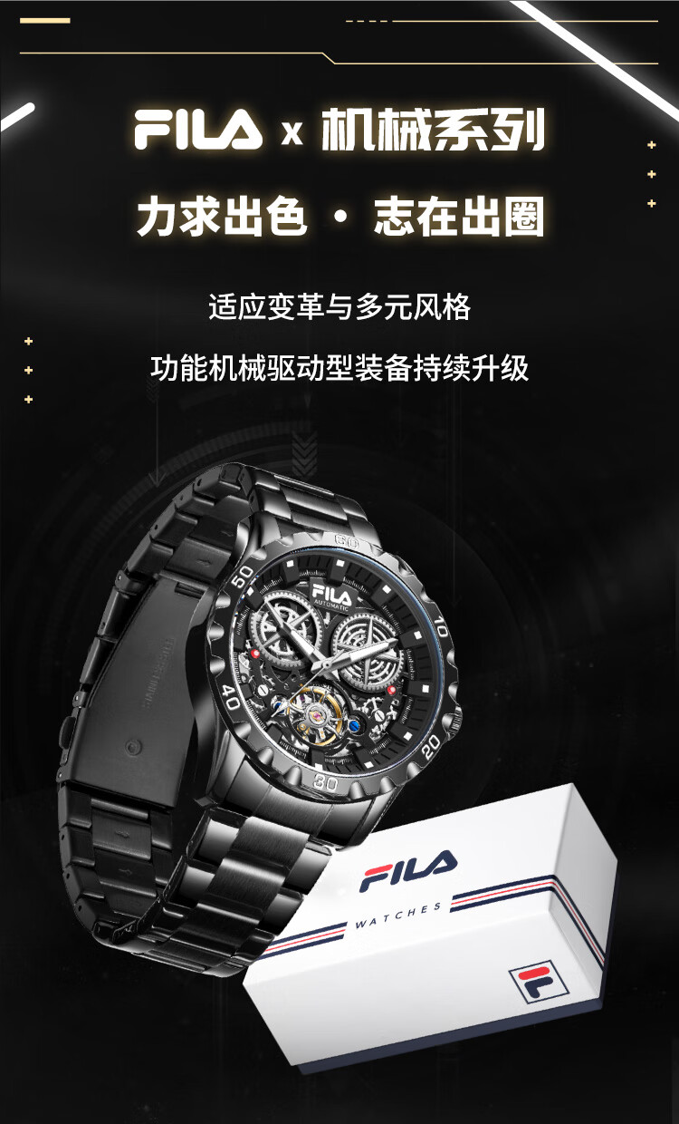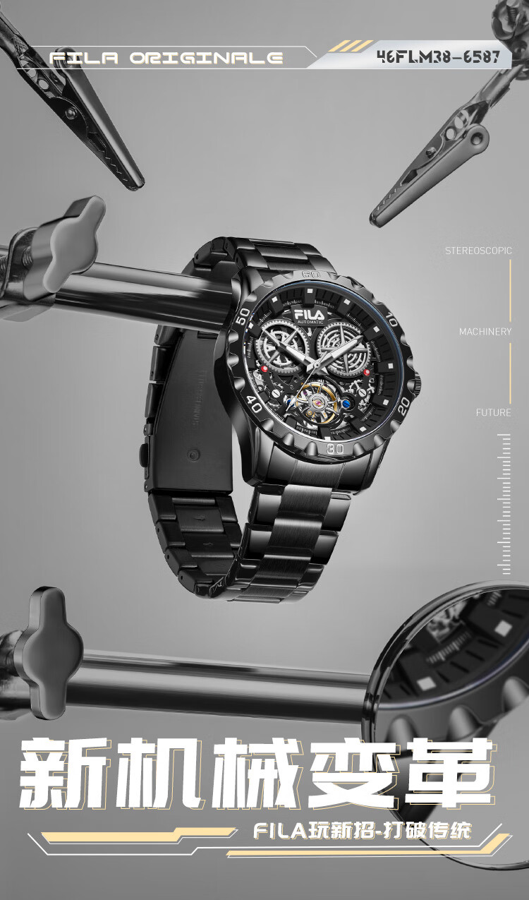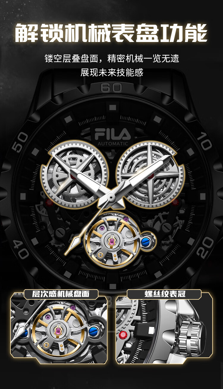 斐乐(FILA)机械手表男士男学生潮流时尚简约礼物送男友镂空夜光防水6587-002