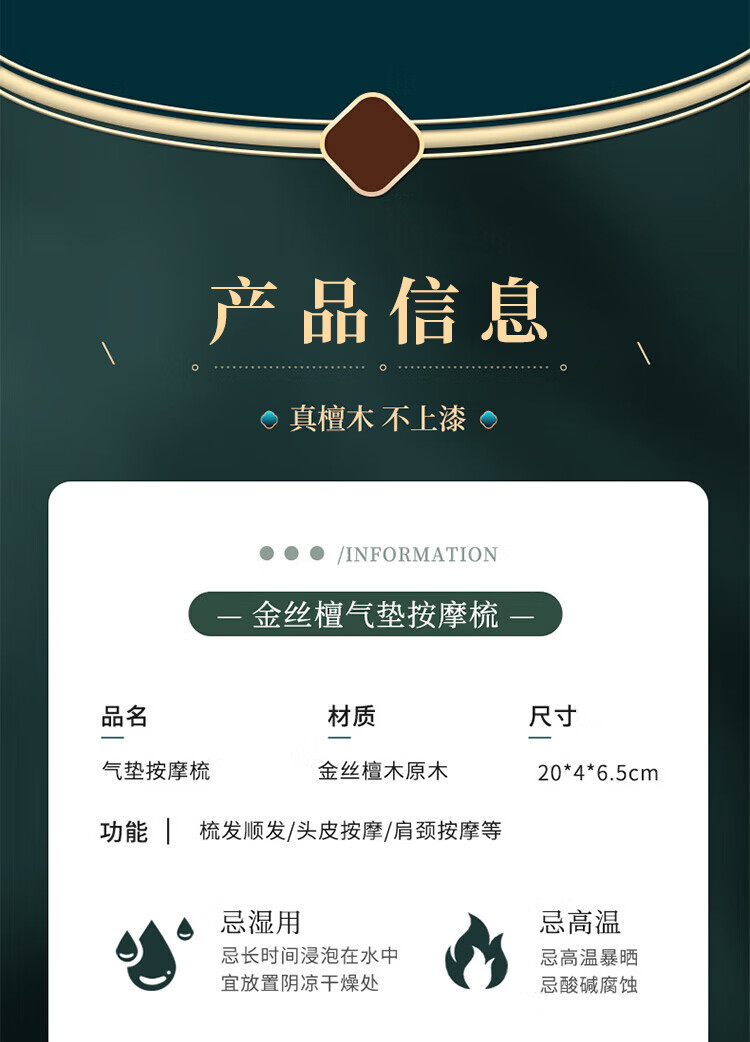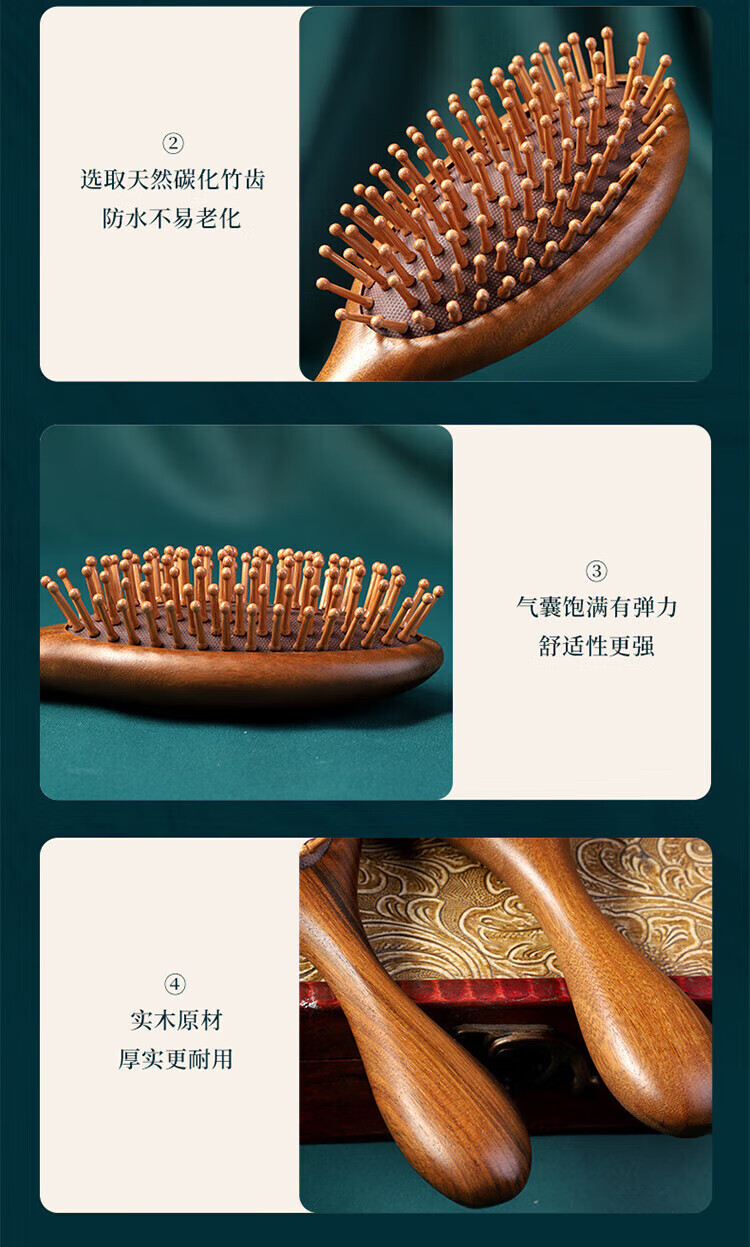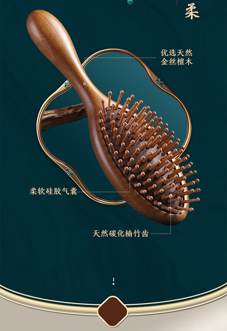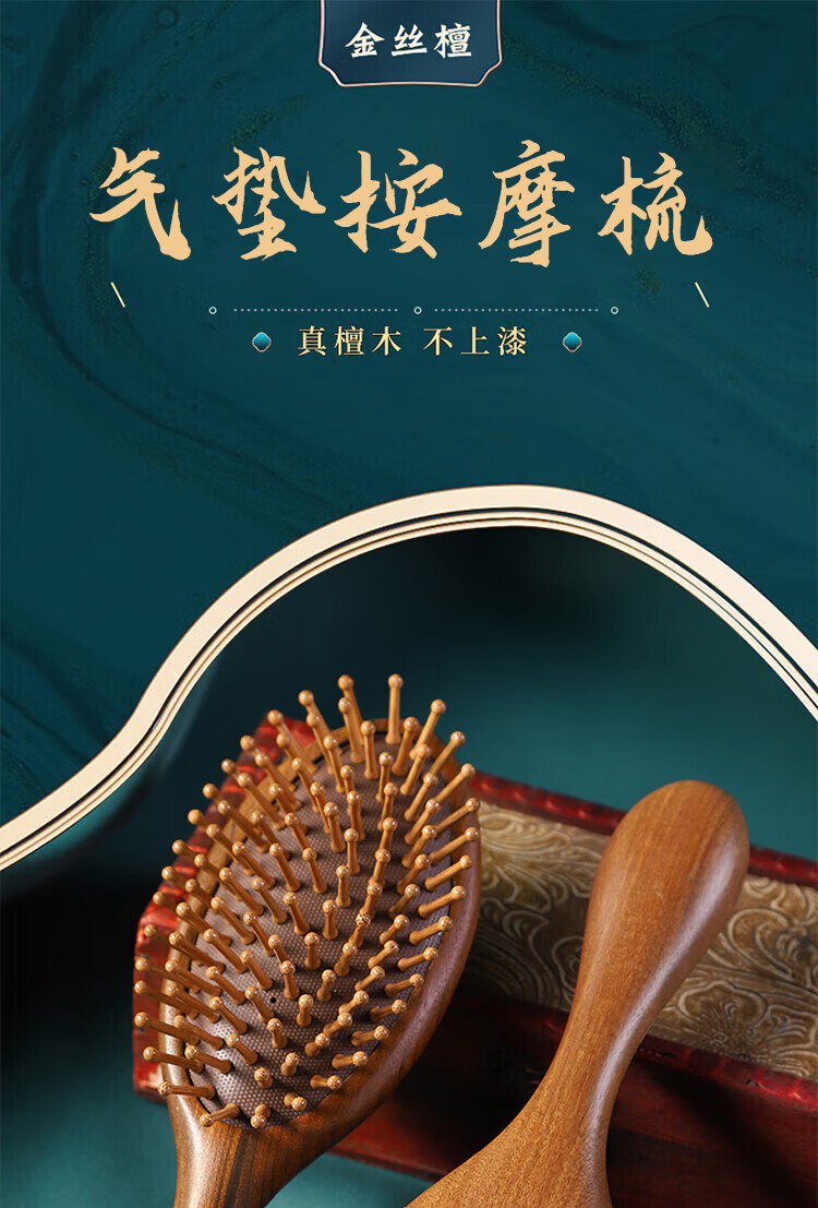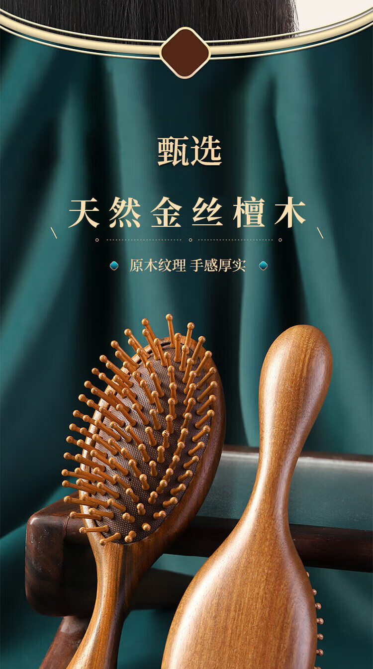 优多莲金丝檀木气垫梳子按摩梳女士气囊梳男头部经络梳蓬松造型养发保健