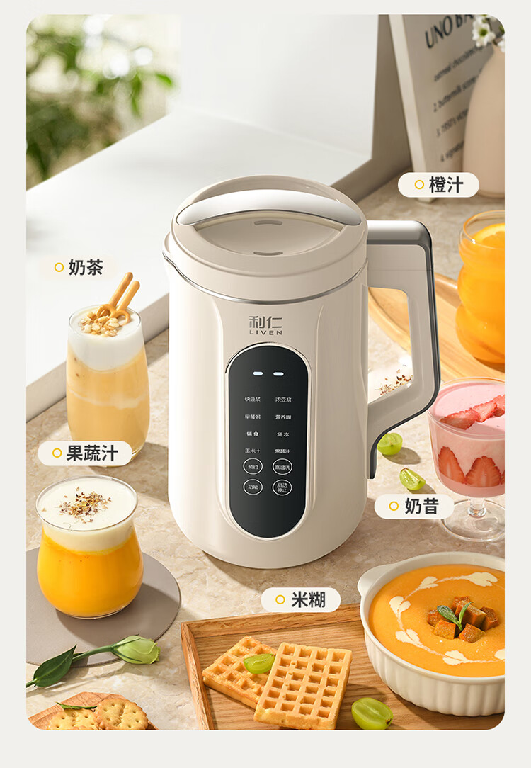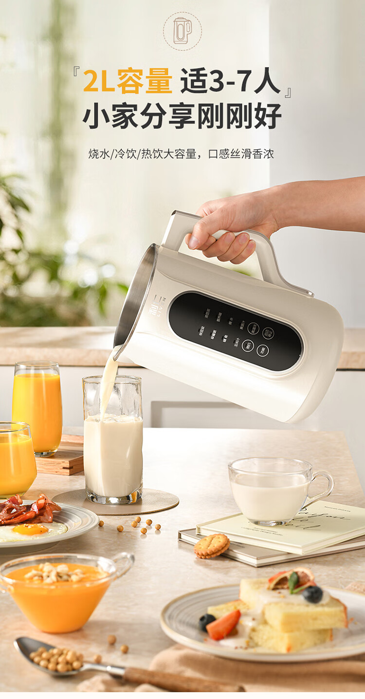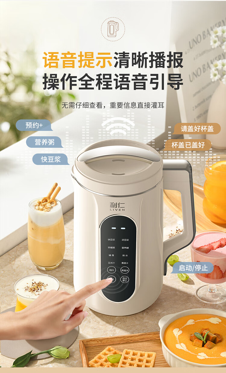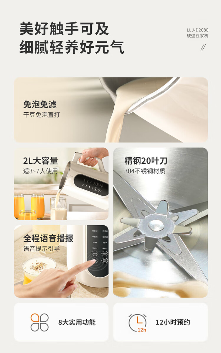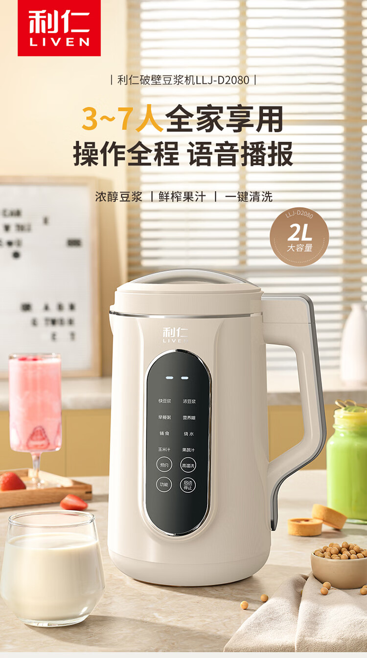 利仁(Liven)豆浆机免过滤破壁机家用 2L语音提示大容量低噪音全自动免煮五谷杂粮米糊机料理机LLJ-D2080