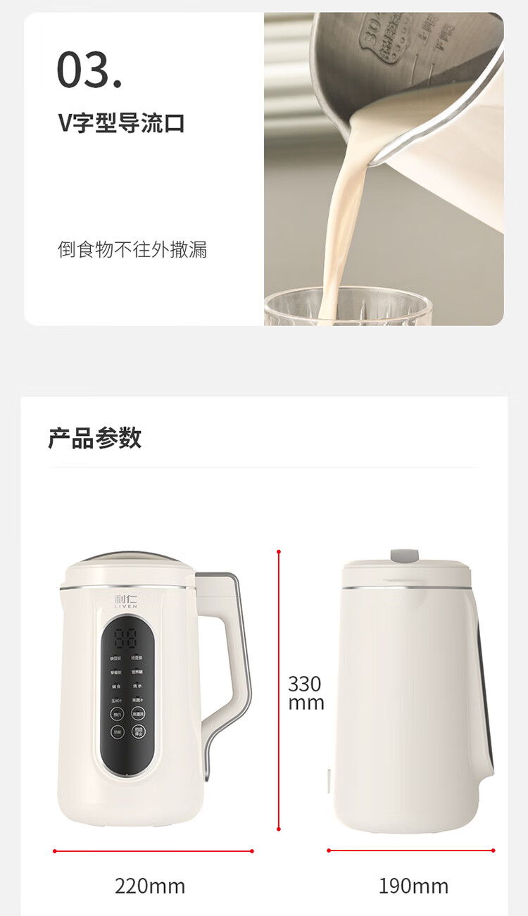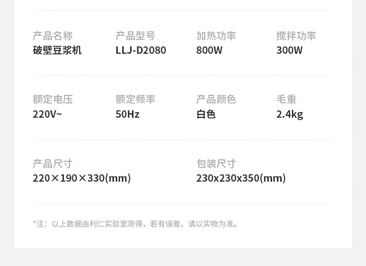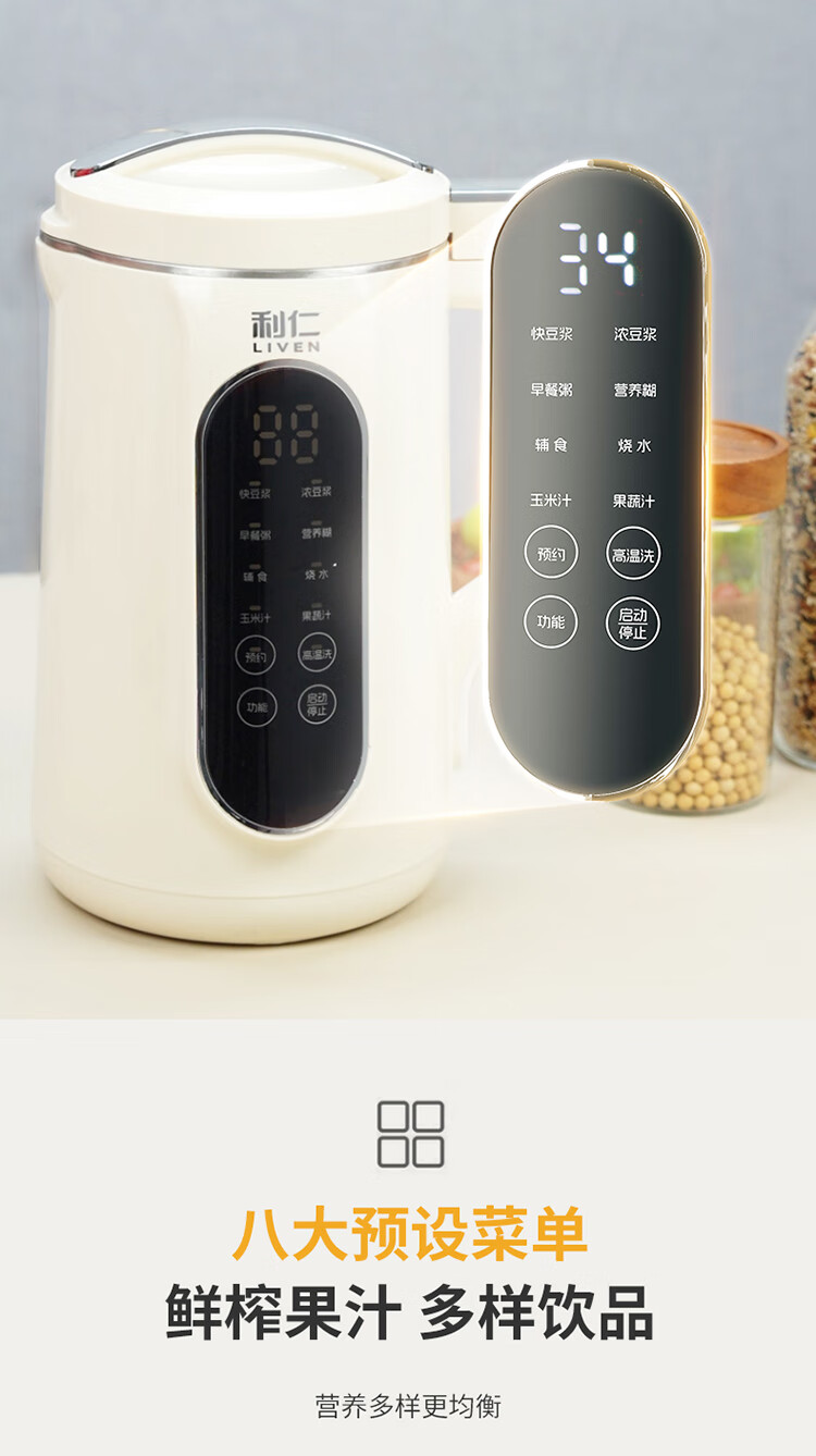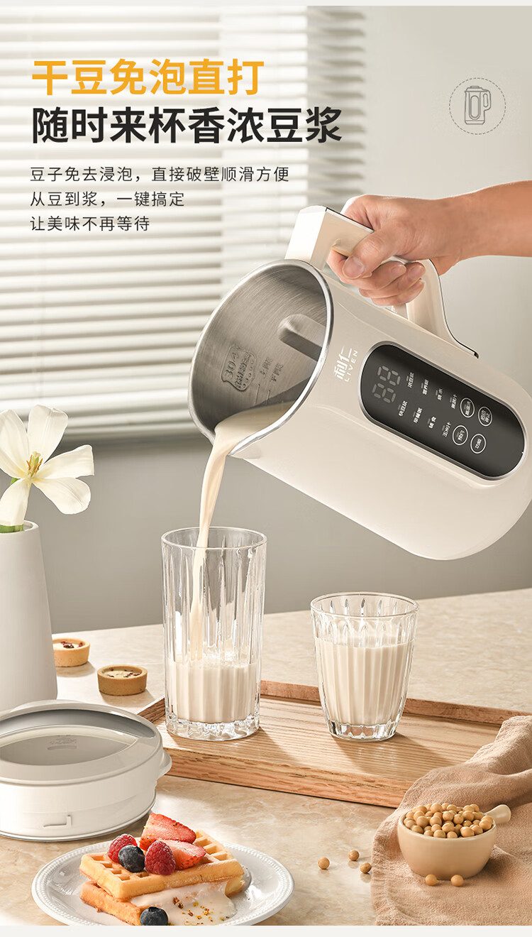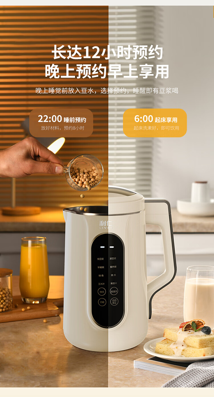 利仁(Liven)豆浆机免过滤破壁机家用 2L语音提示大容量低噪音全自动免煮五谷杂粮米糊机料理机LLJ-D2080