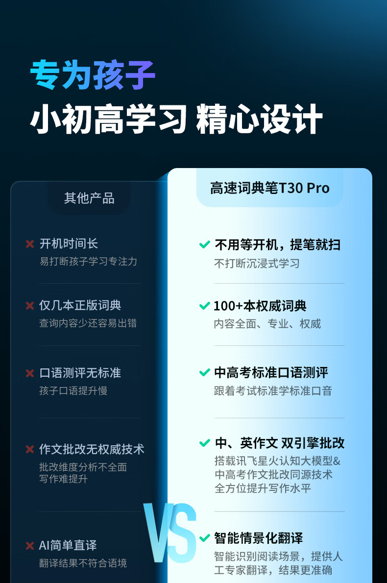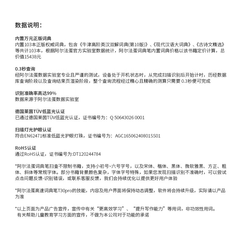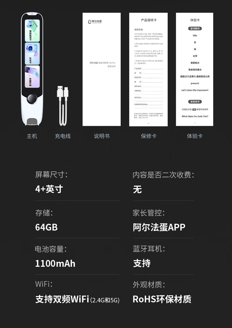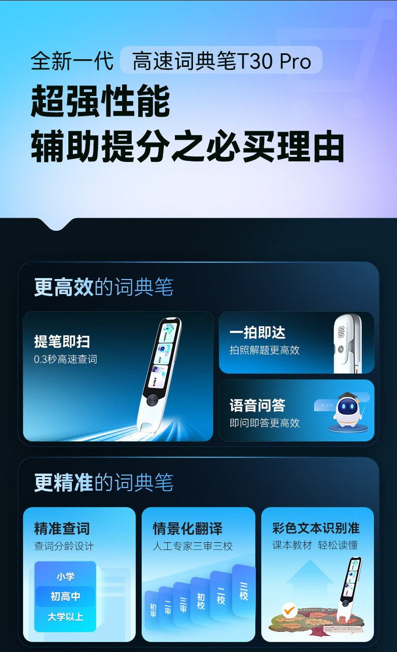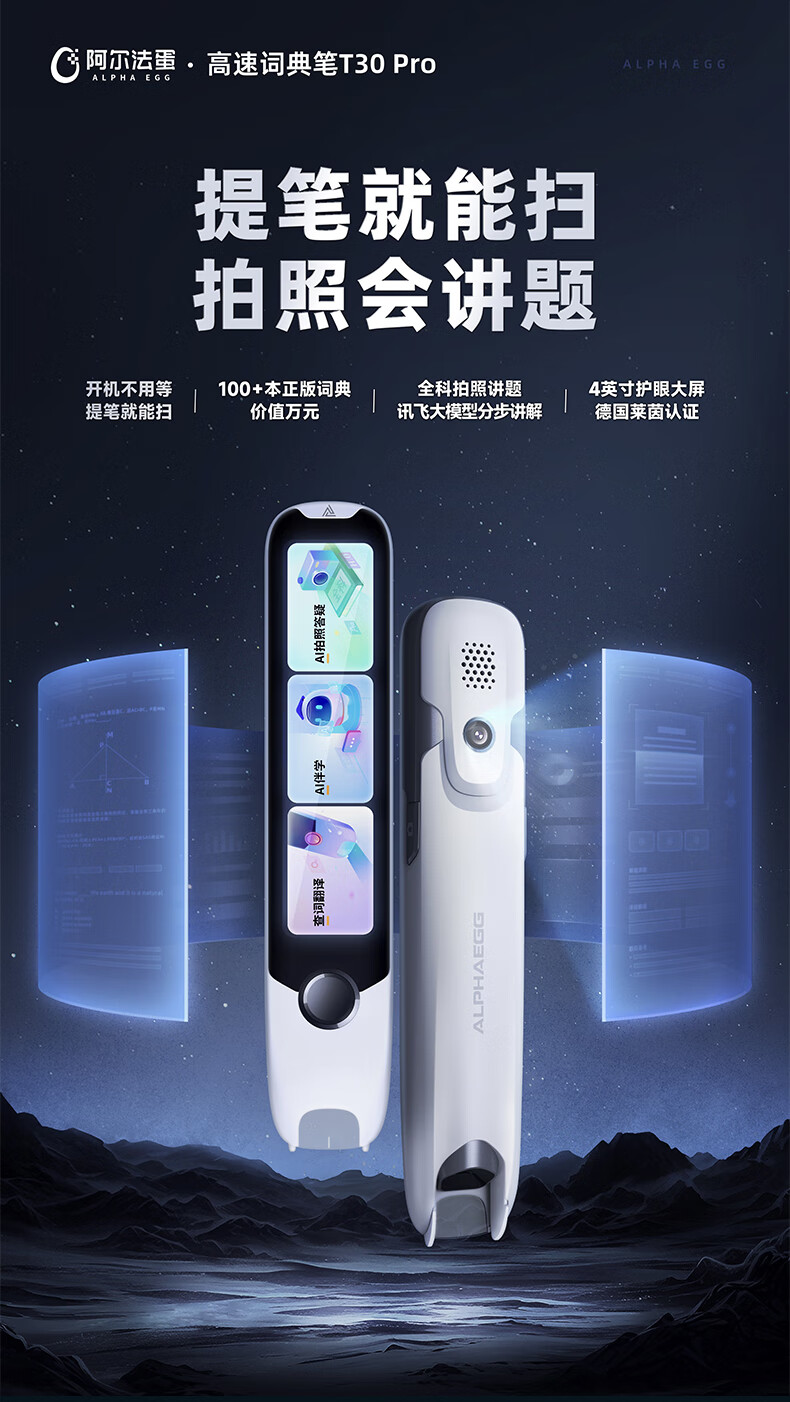 阿尔法蛋高速词典笔T30Pro 点读笔英语翻译笔小初高拍照搜题全科学习电子词典扫描笔学习机英汉点读翻译机 词典笔T30 Pro 64GB 9科辅导