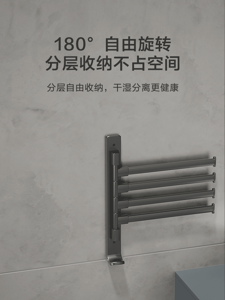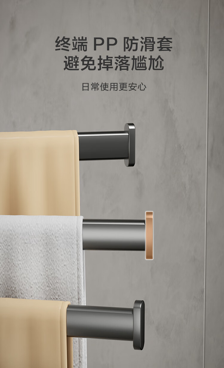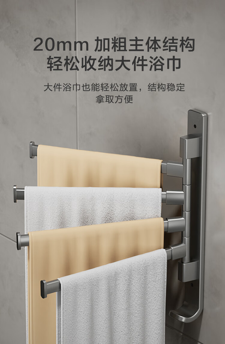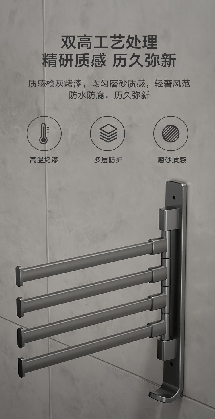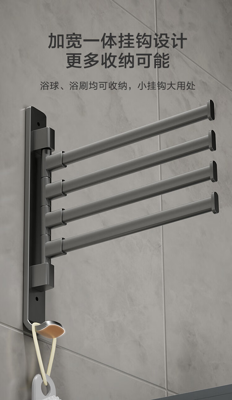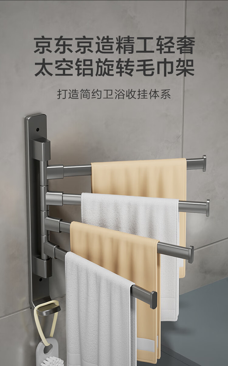 京东京造 反重力系列太空铝旋转毛巾架4杆免打孔晾毛巾洗手间浴室置物架