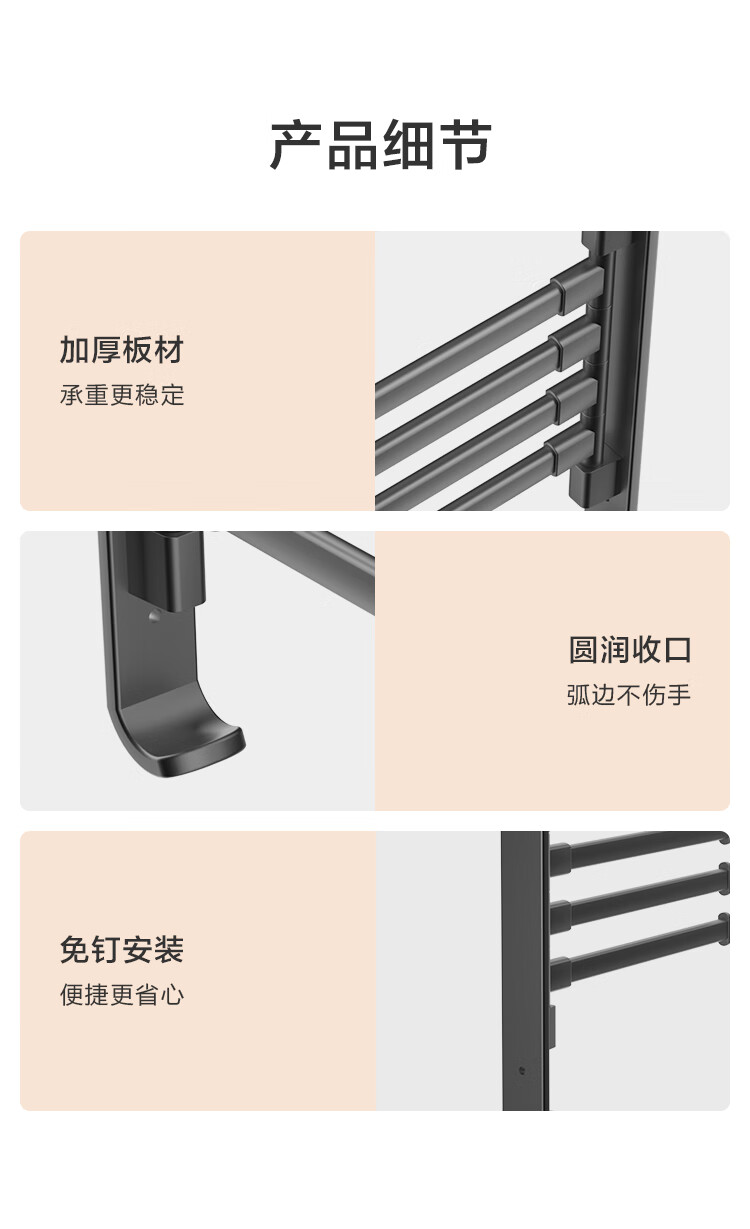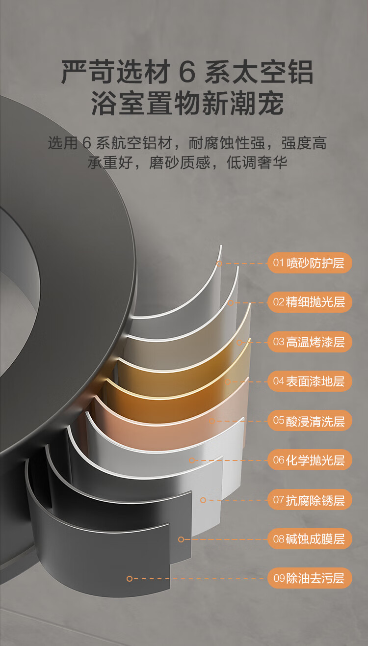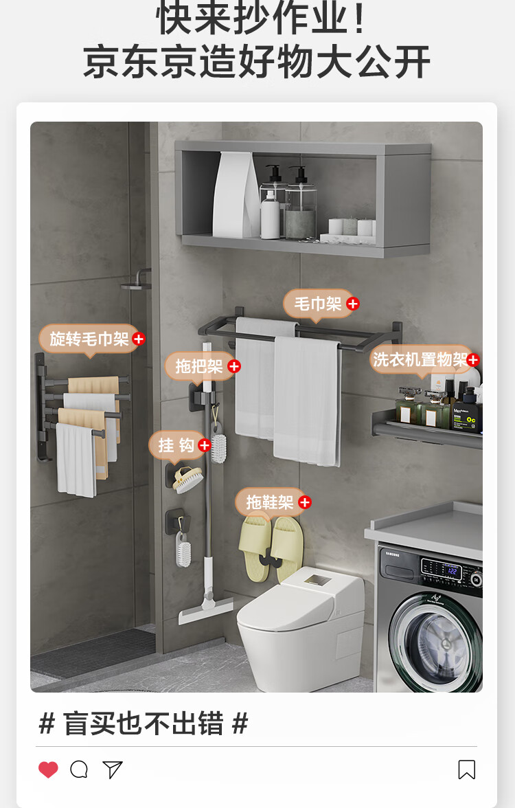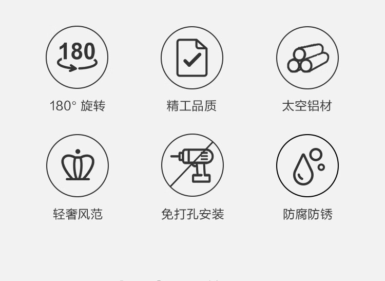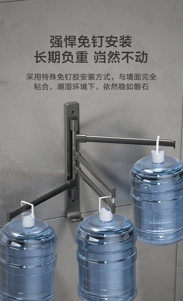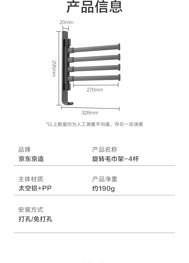 京东京造 反重力系列太空铝旋转毛巾架4杆免打孔晾毛巾洗手间浴室置物架
