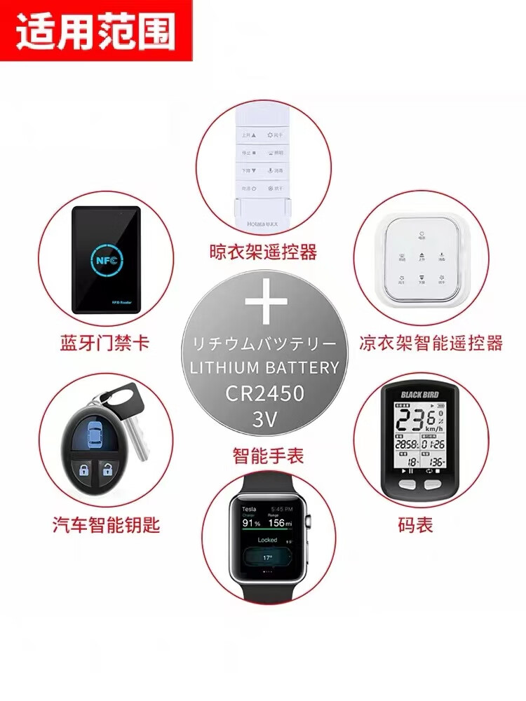 KGATCR2450纽扣电池汽车钥匙好太太升降晾衣架热水器浴霸遥控器3V电池