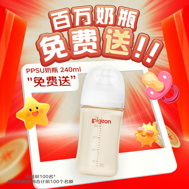 贝亲(Pigeon)婴儿新生儿奶瓶 防胀气奶瓶 PPSU第3代宽口径 自带奶嘴M号240ml