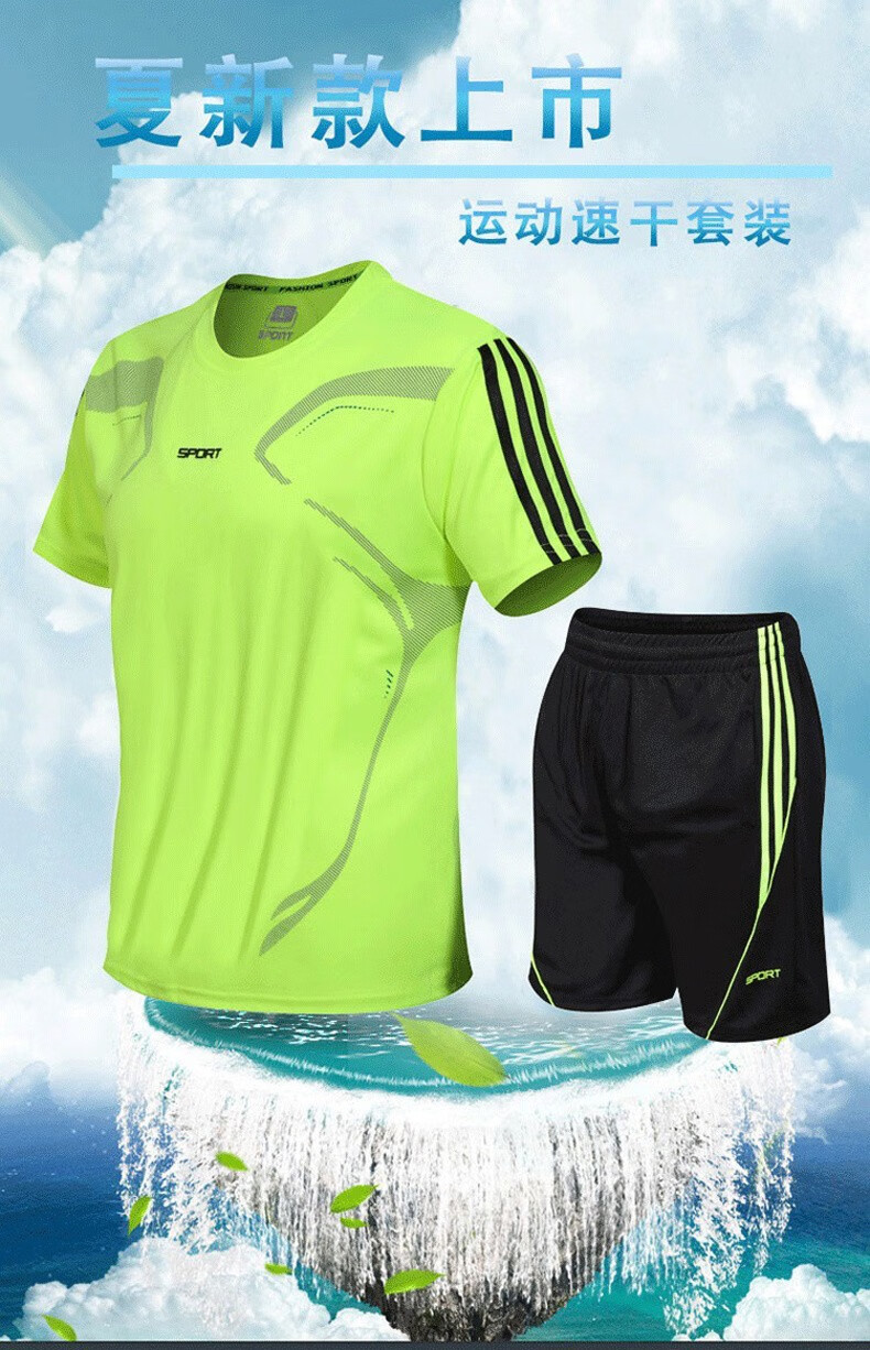 真维斯户外运动运动套装男春夏季速干衣休闲足球跑步训练运动服装短袖短裤两件套 902白色 3XL
