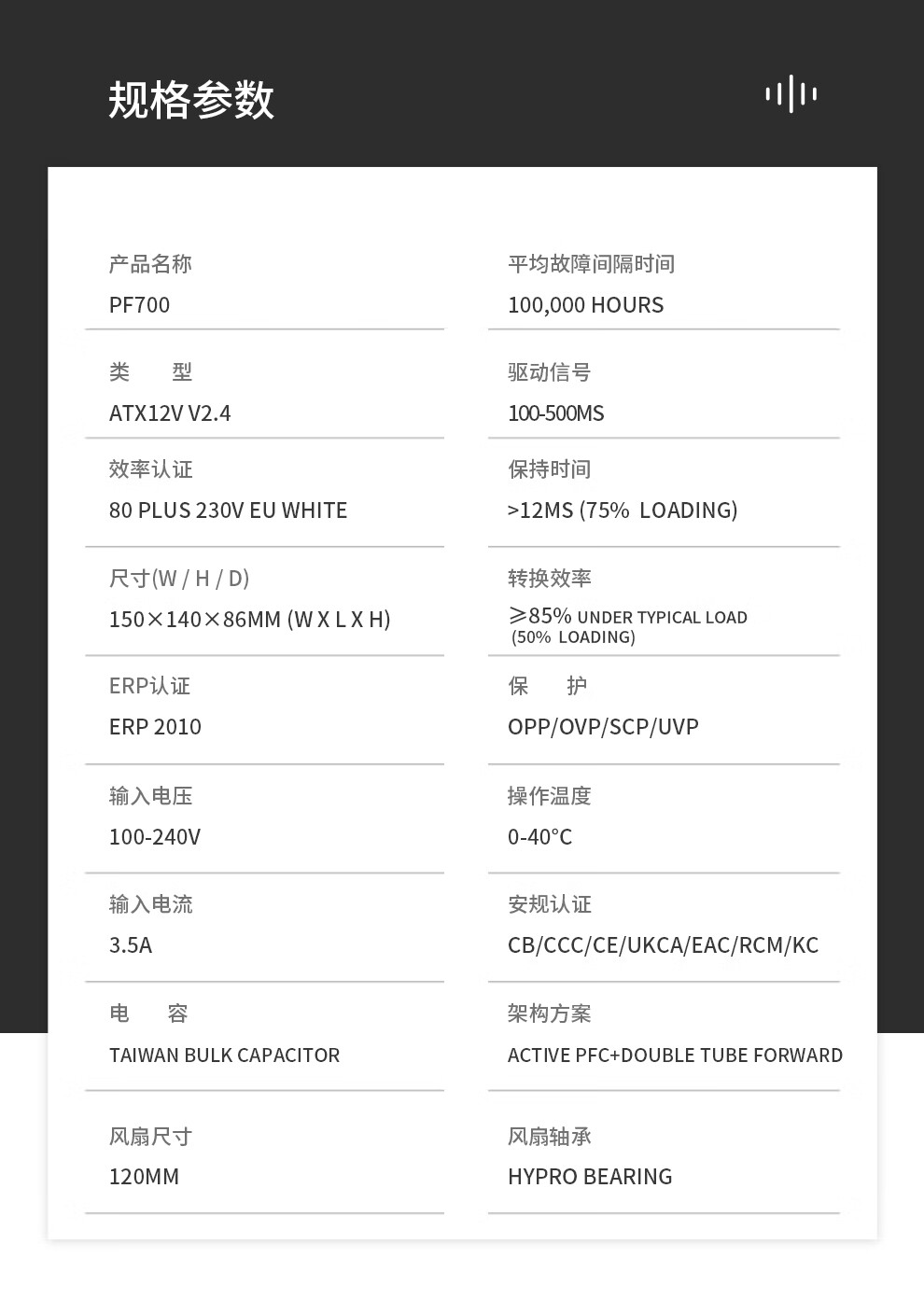 九州风神(DEEPCOOL)PF700D直出电源额定700W台式机主机电源80PLUS白牌PF700D-HA