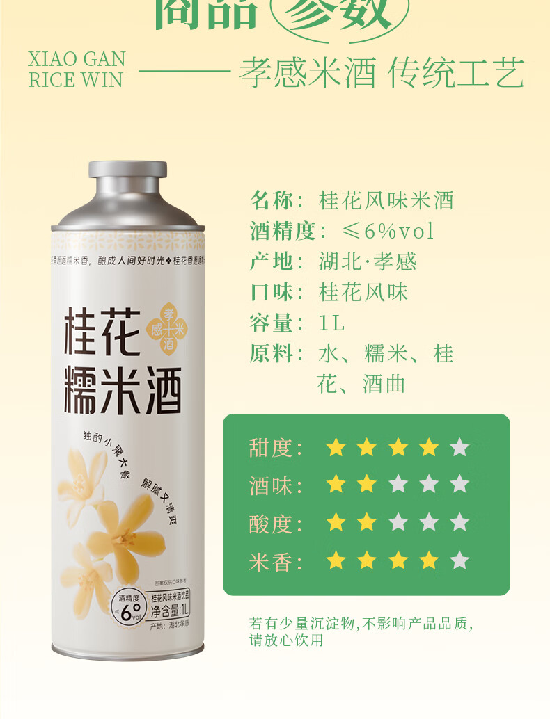 旺福龙桂花米酒孝感米酒花果酒糯米甜酒酒酿低度微醺醪糟汁